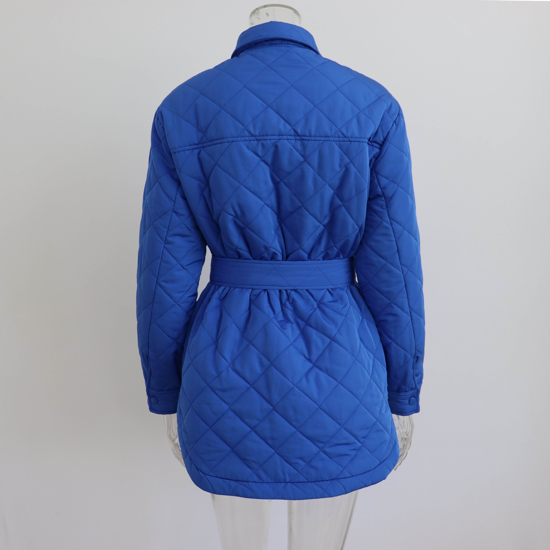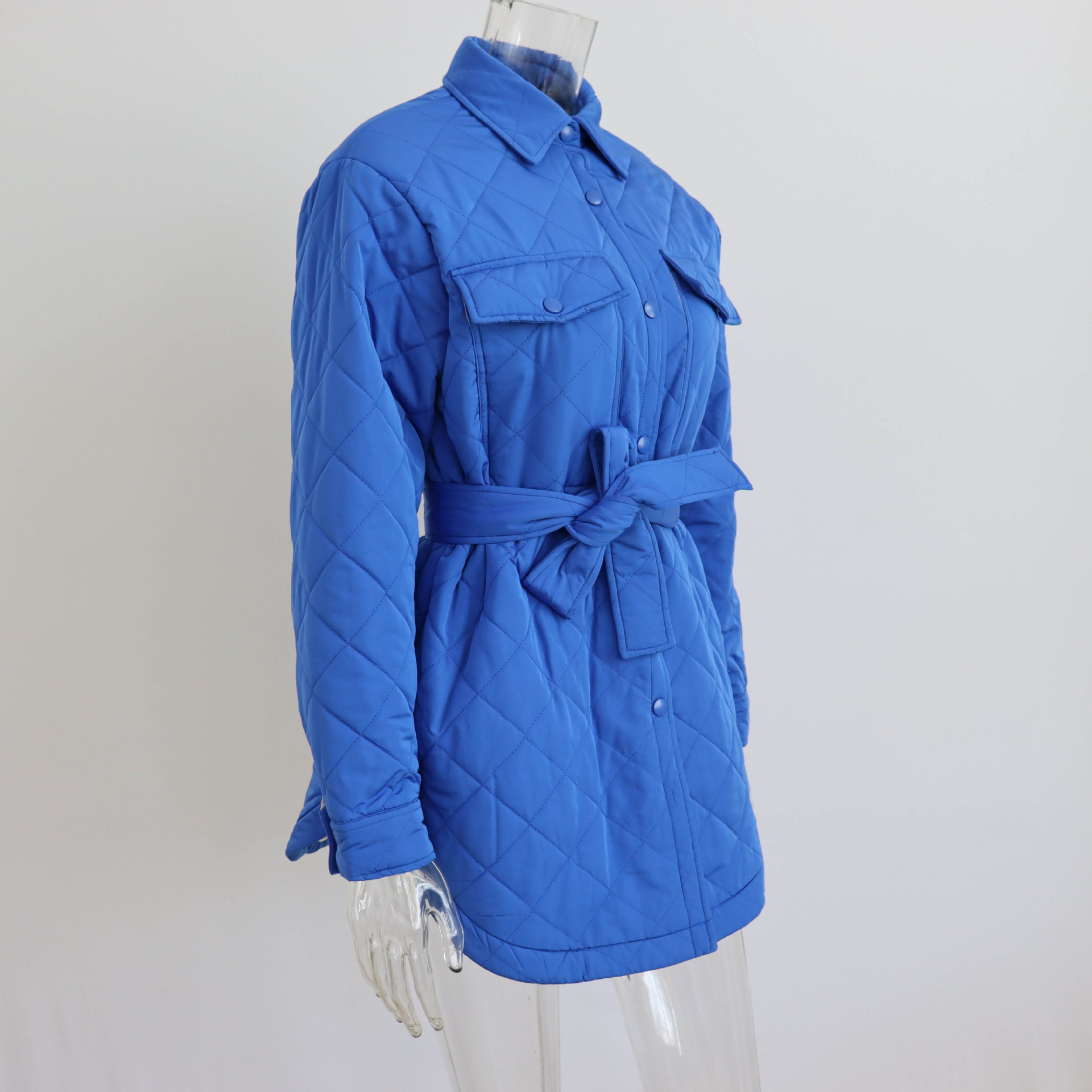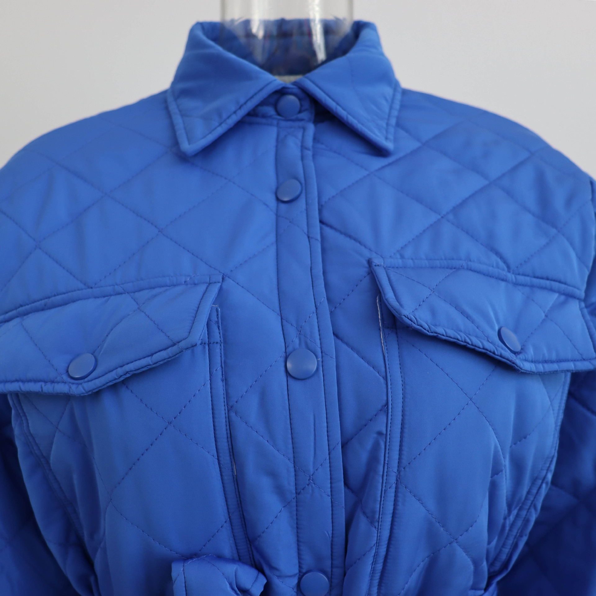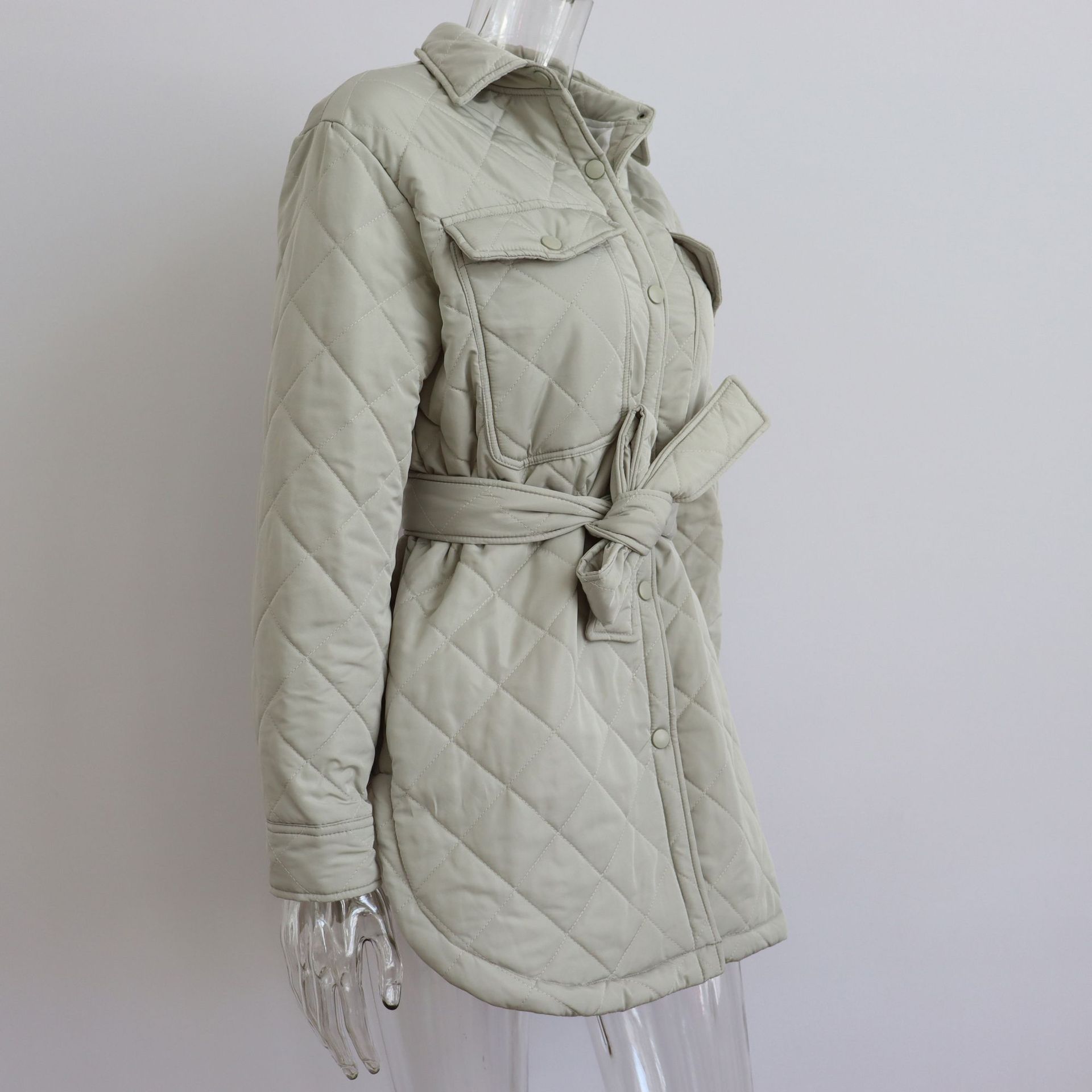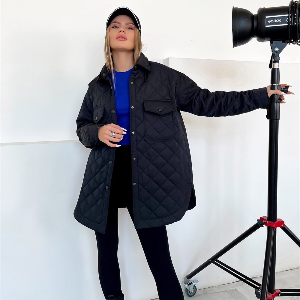 长款排扣翻领宽松保暖菱格棉服新款2022秋冬百搭加厚棉衣女欧美