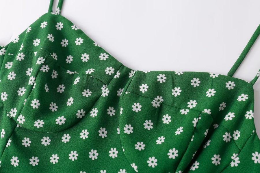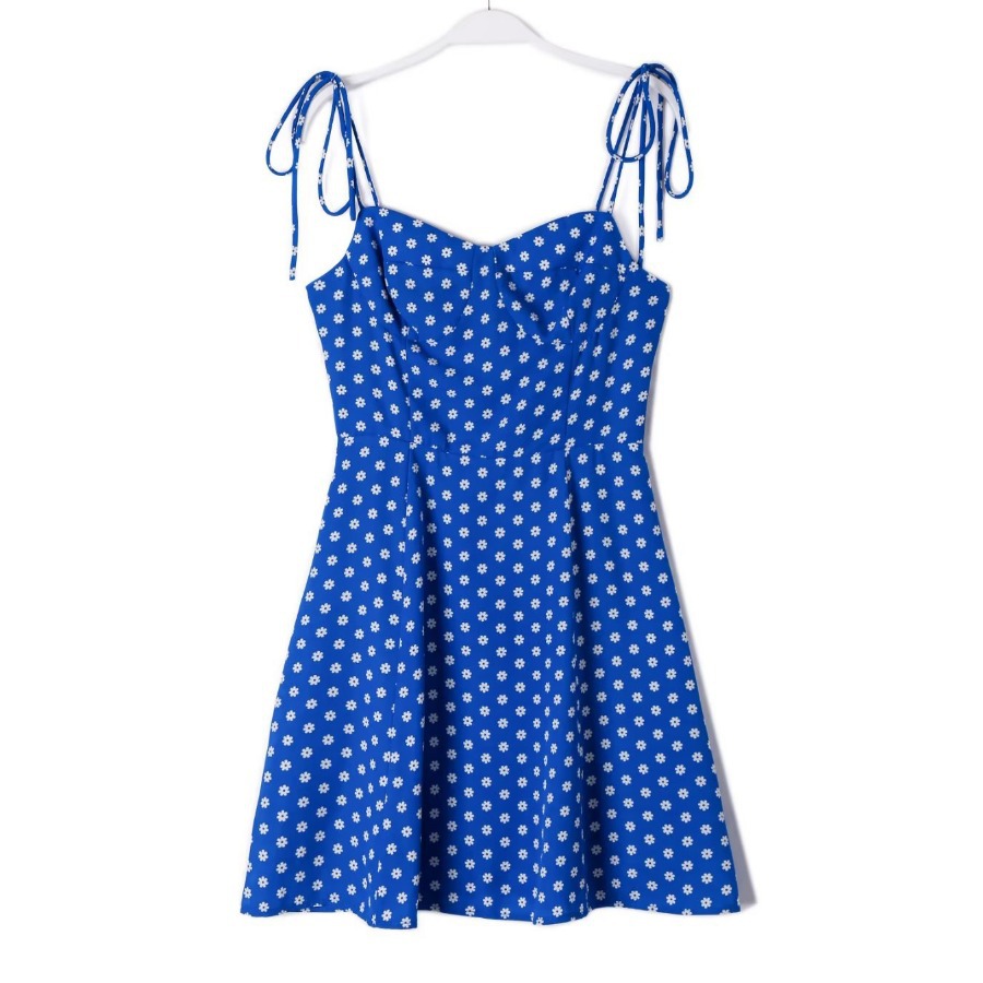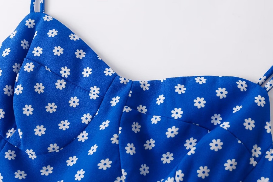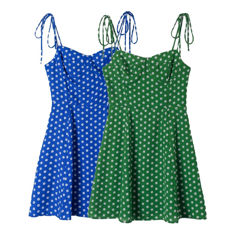 2023夏季新款碎花小花印花吊带系带A字裙高腰连衣裙短裙批发