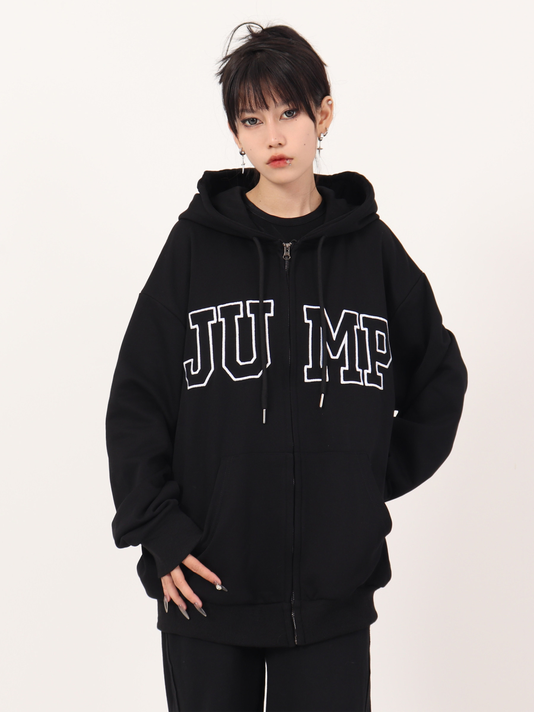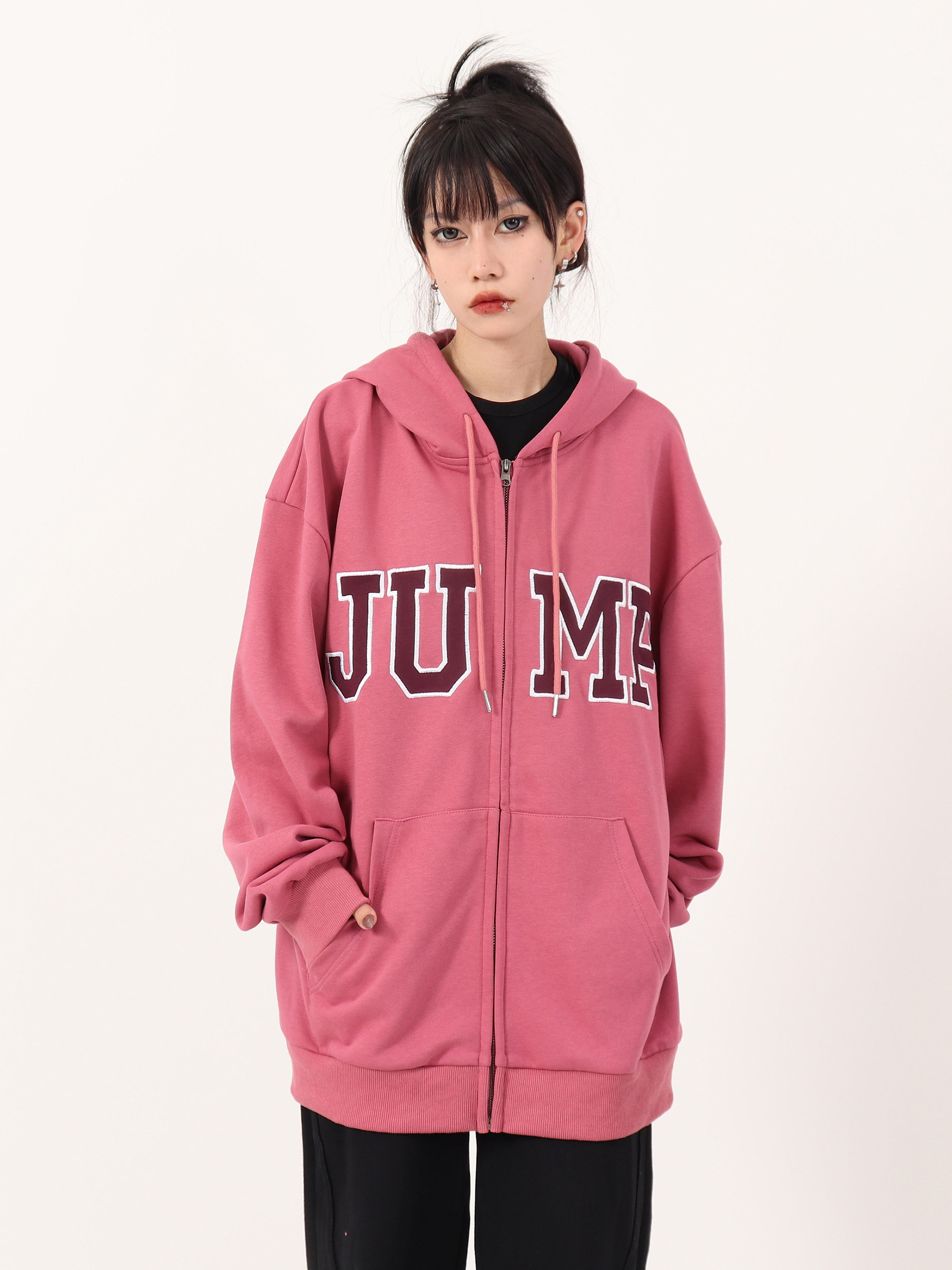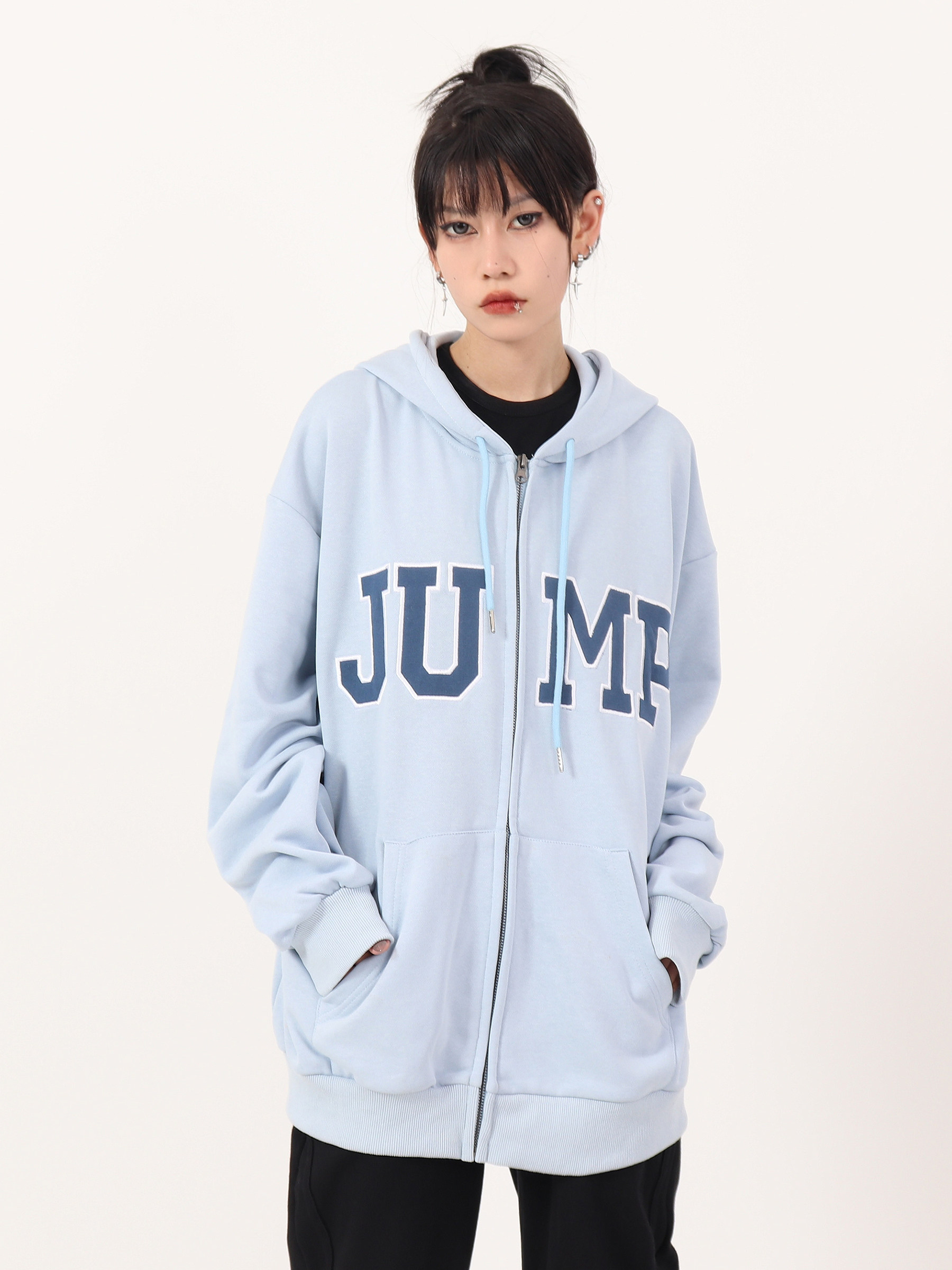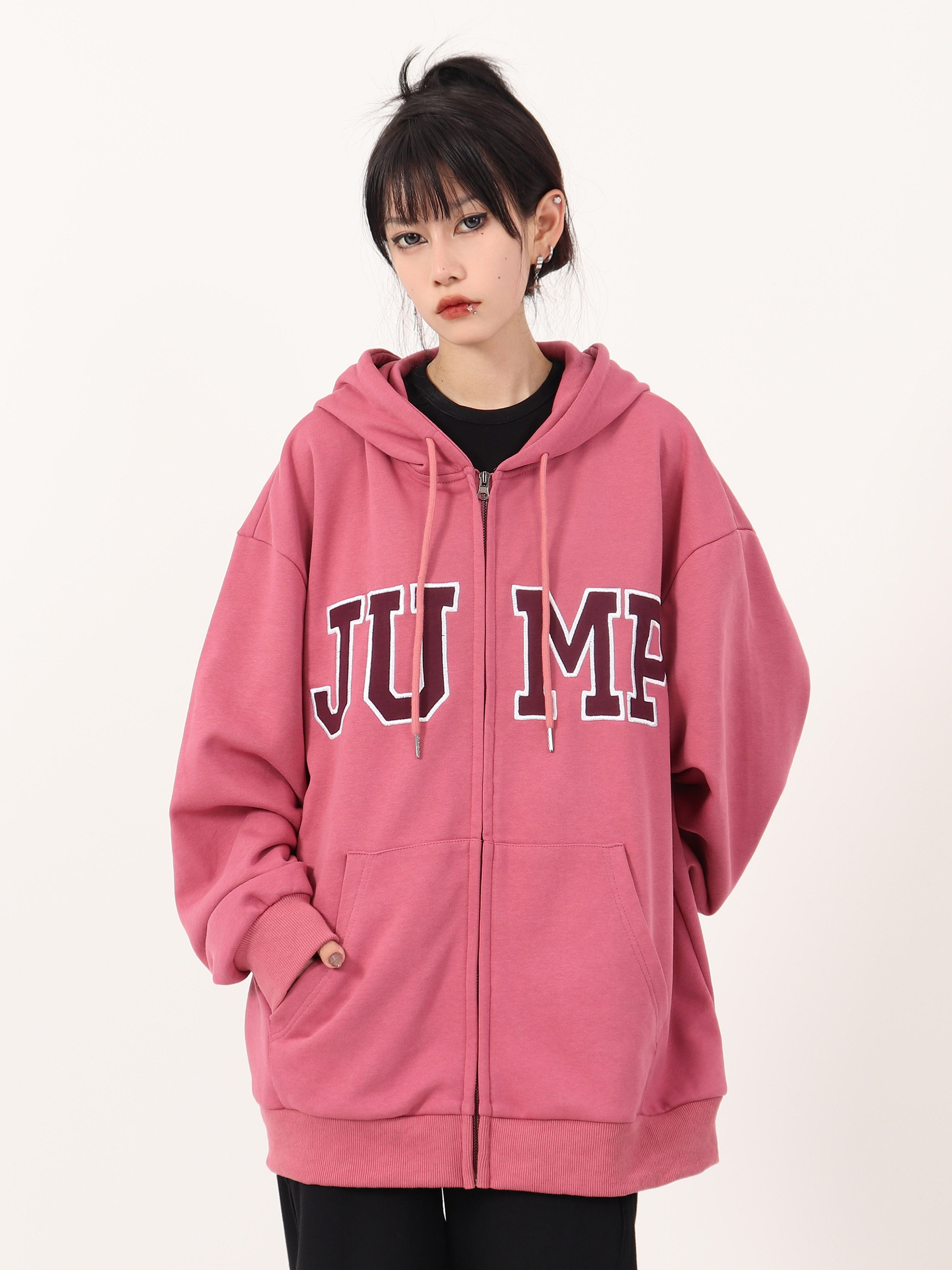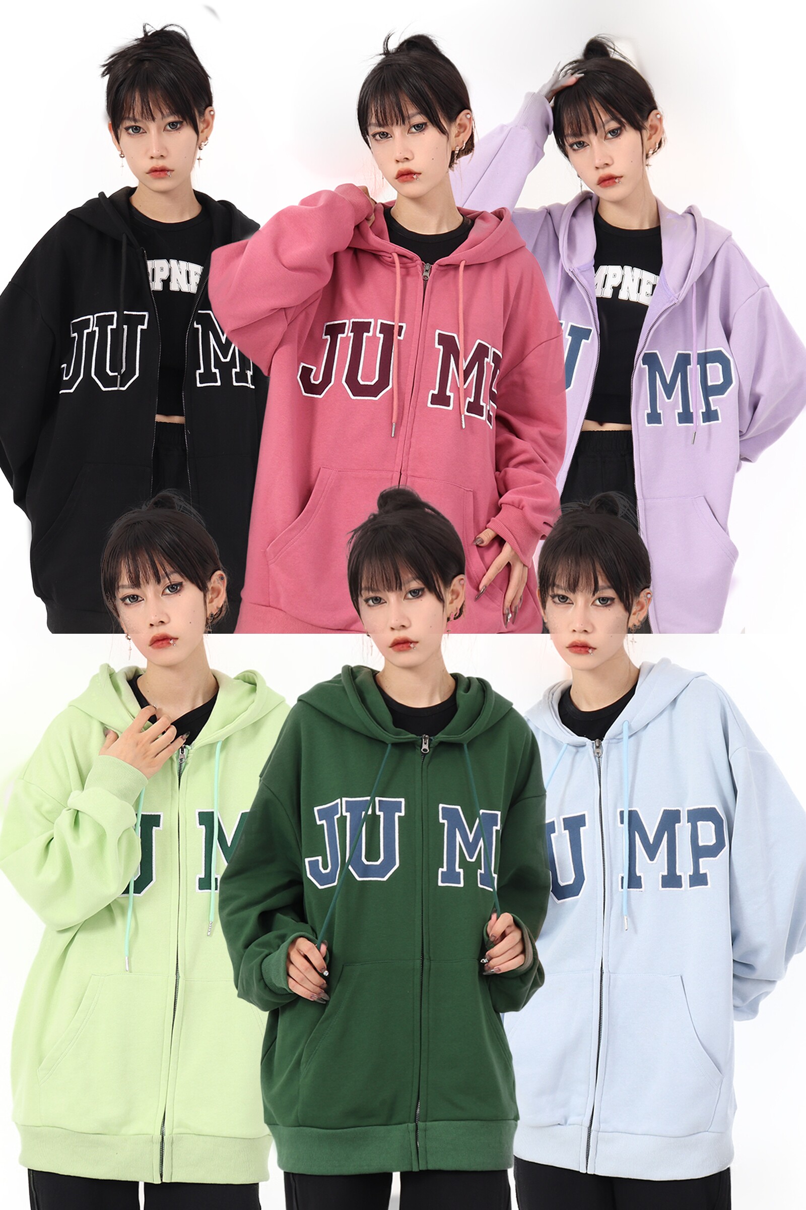 JUMP NEXT 國潮秋季情侶嘻哈六色大LOGO拉鍊開衫寬鬆休閒連帽運動衫