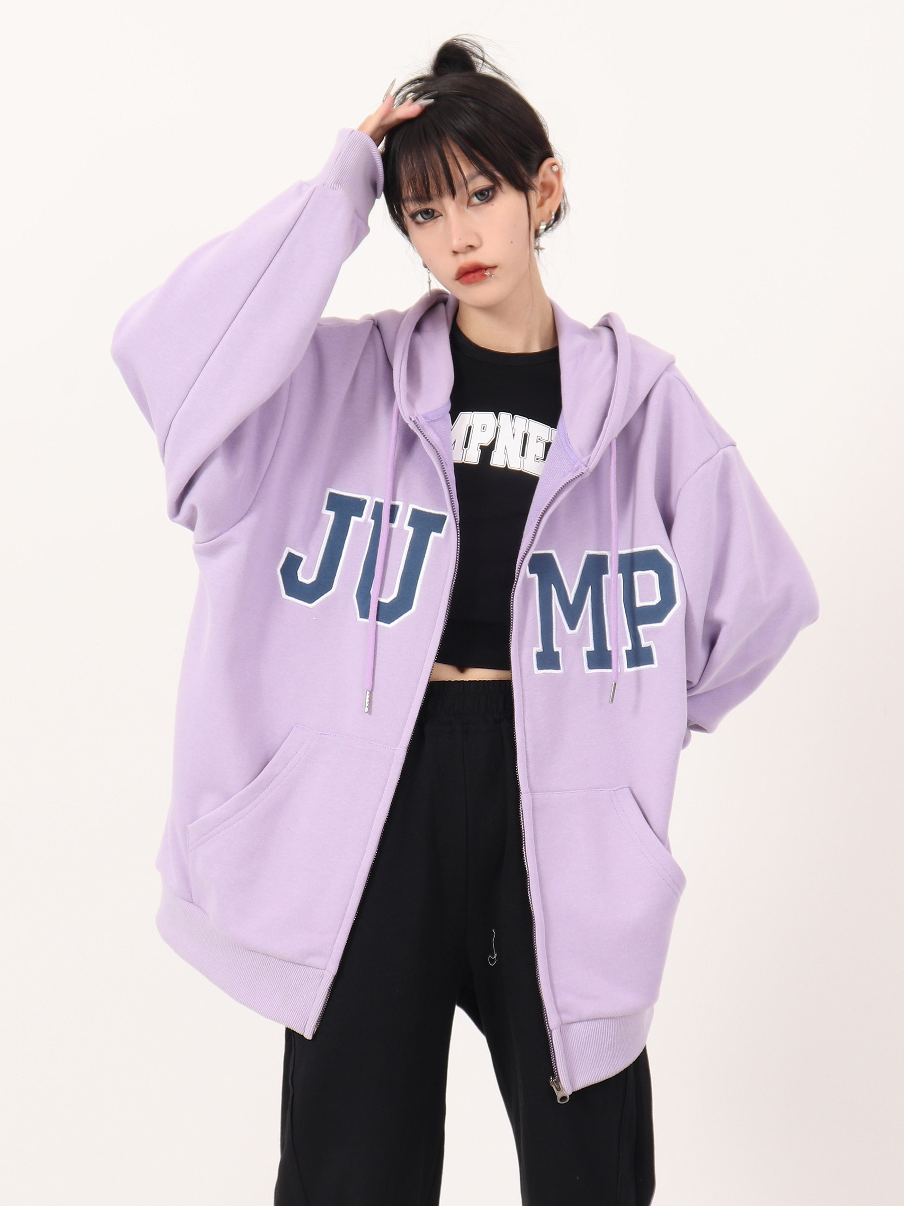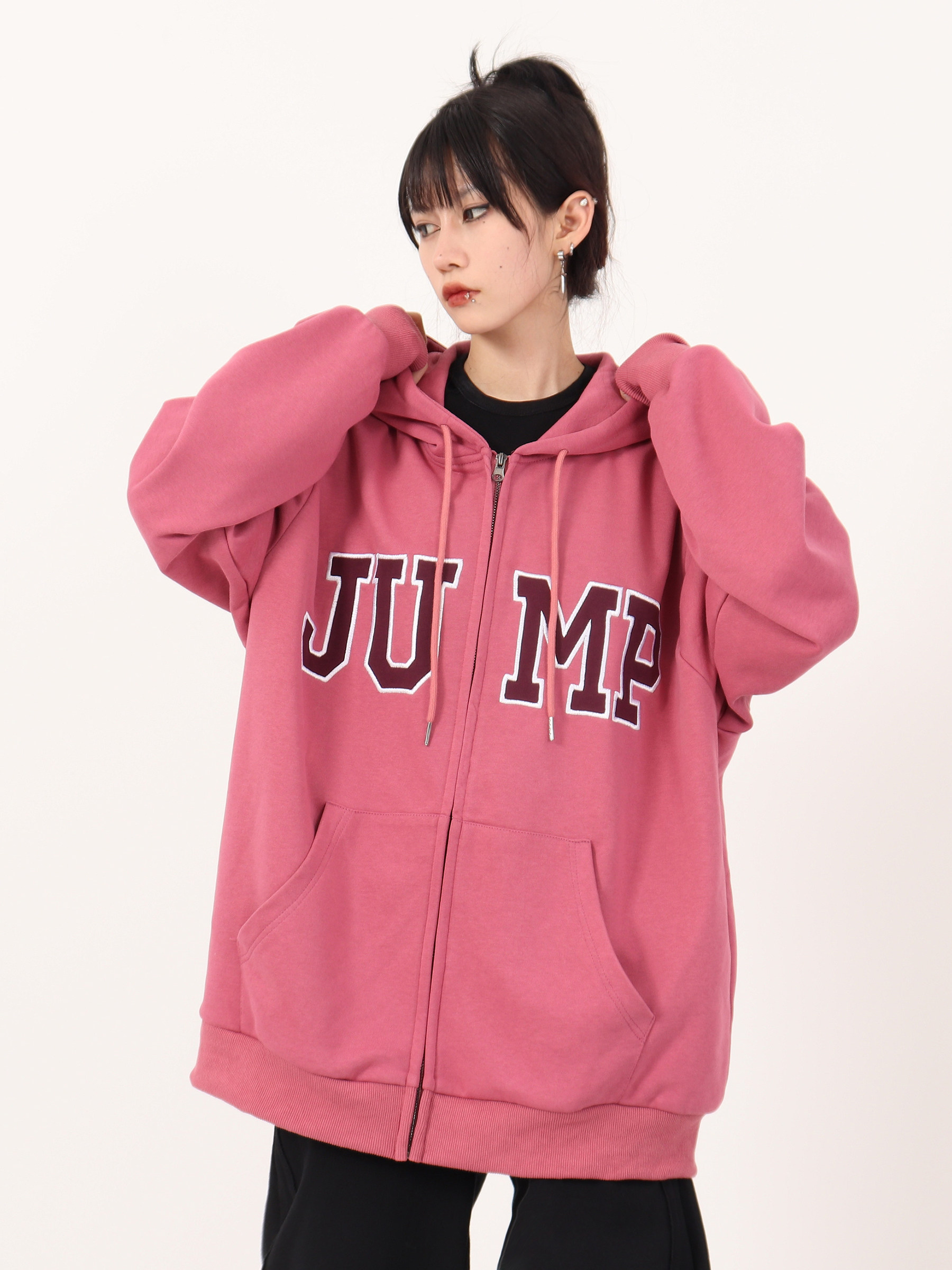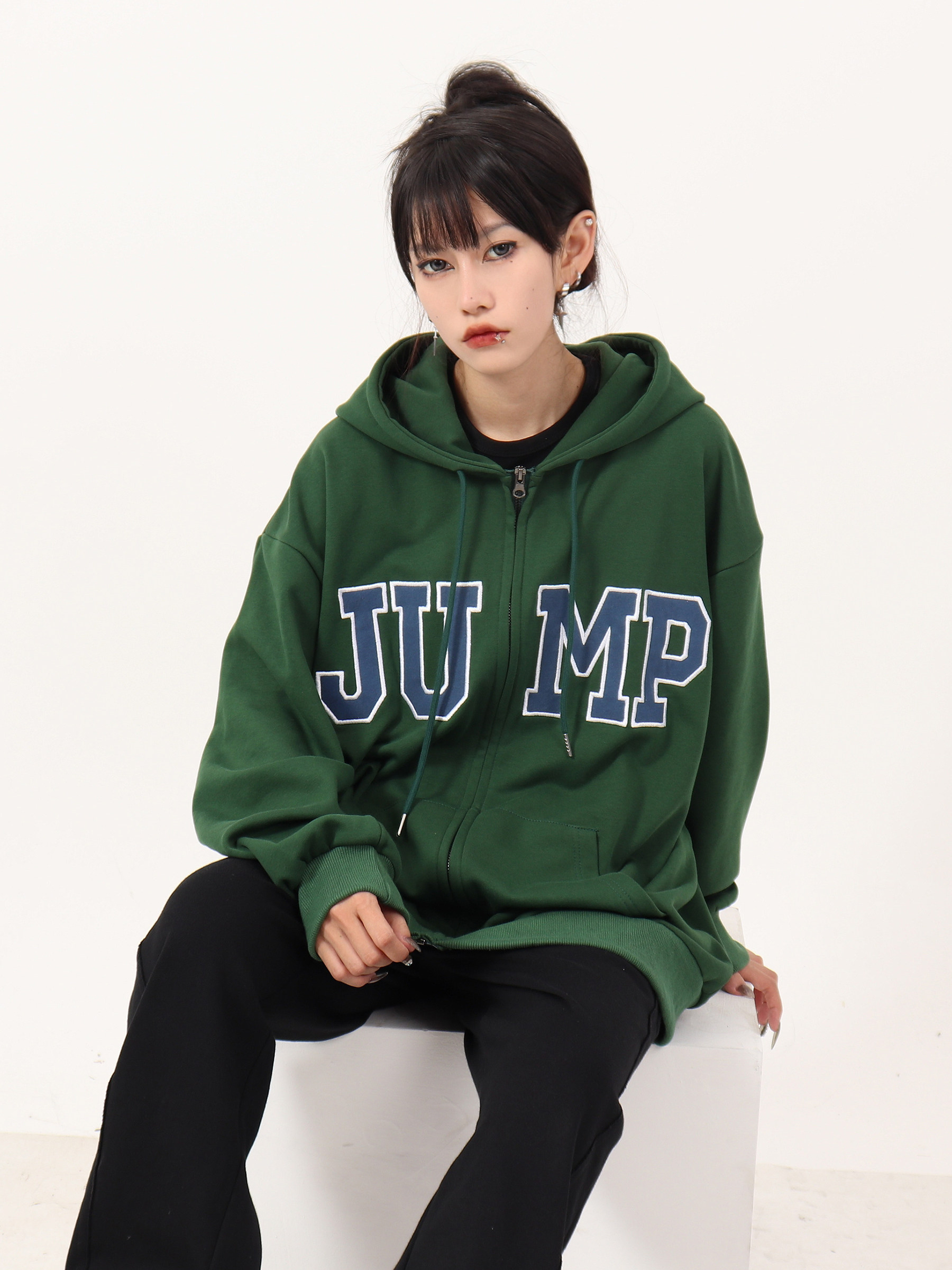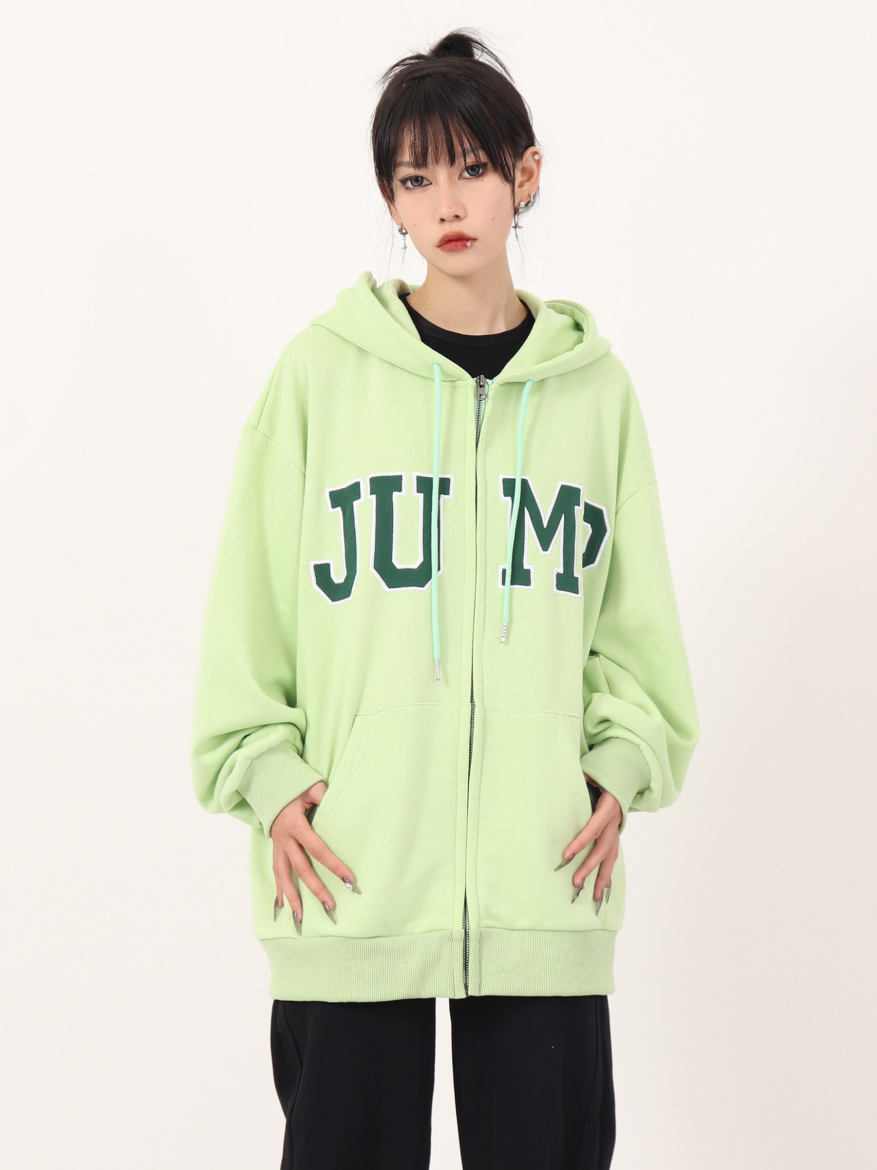 JUMP NEXT 國潮秋季情侶嘻哈六色大LOGO拉鍊開衫寬鬆休閒連帽運動衫