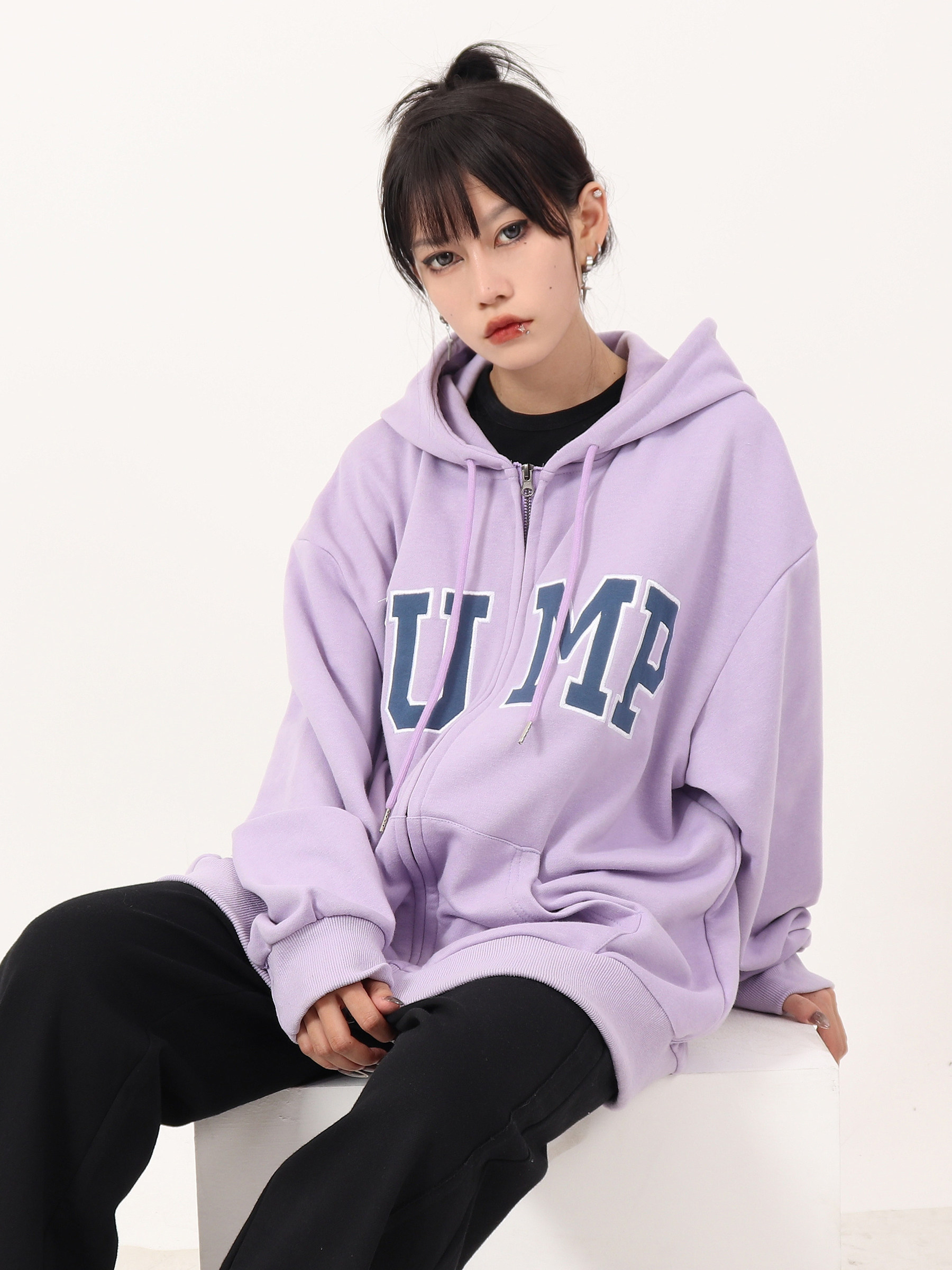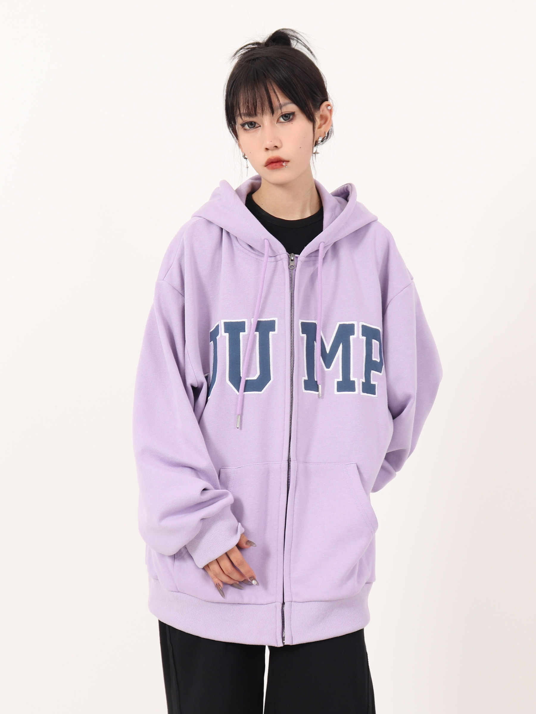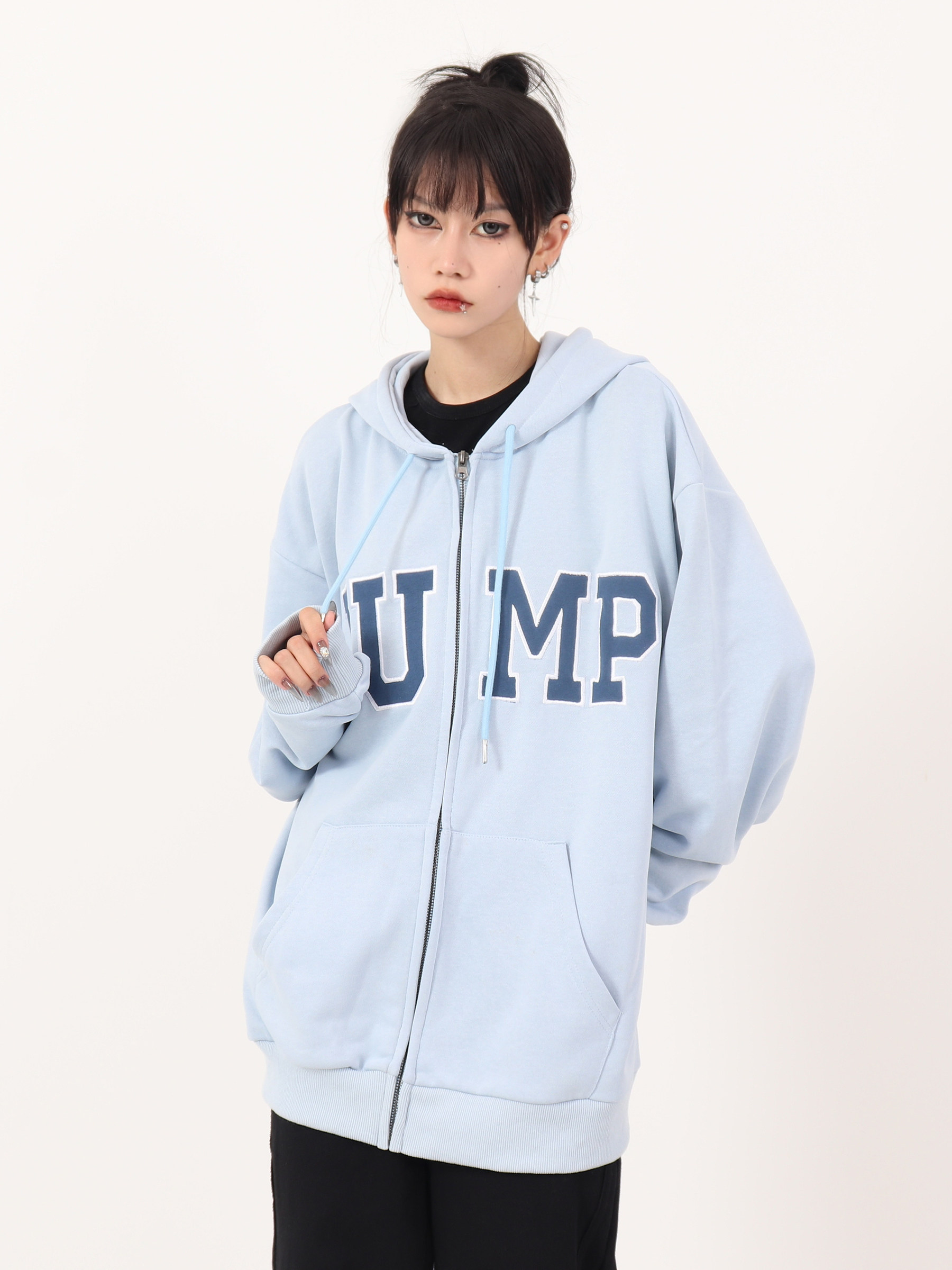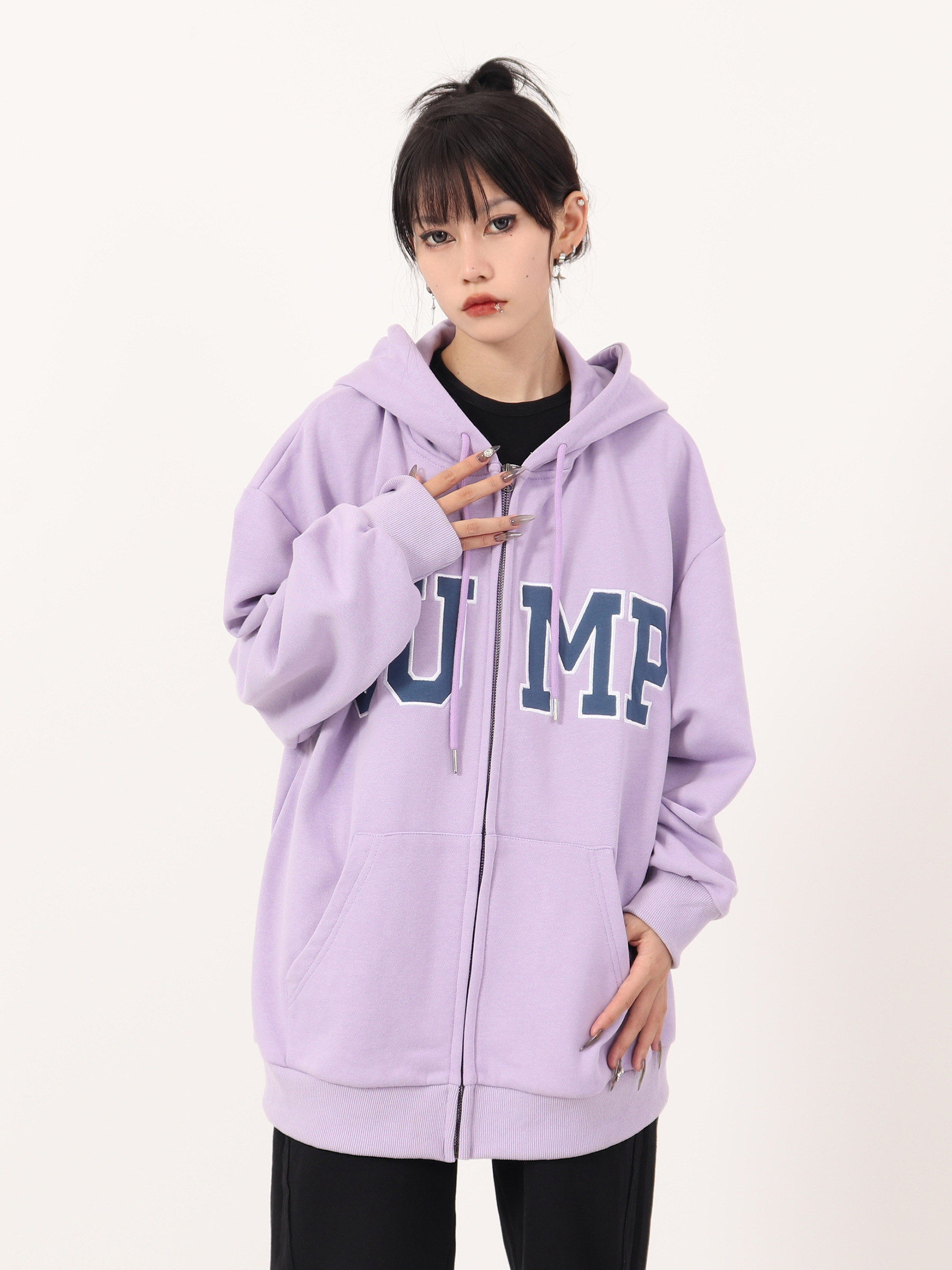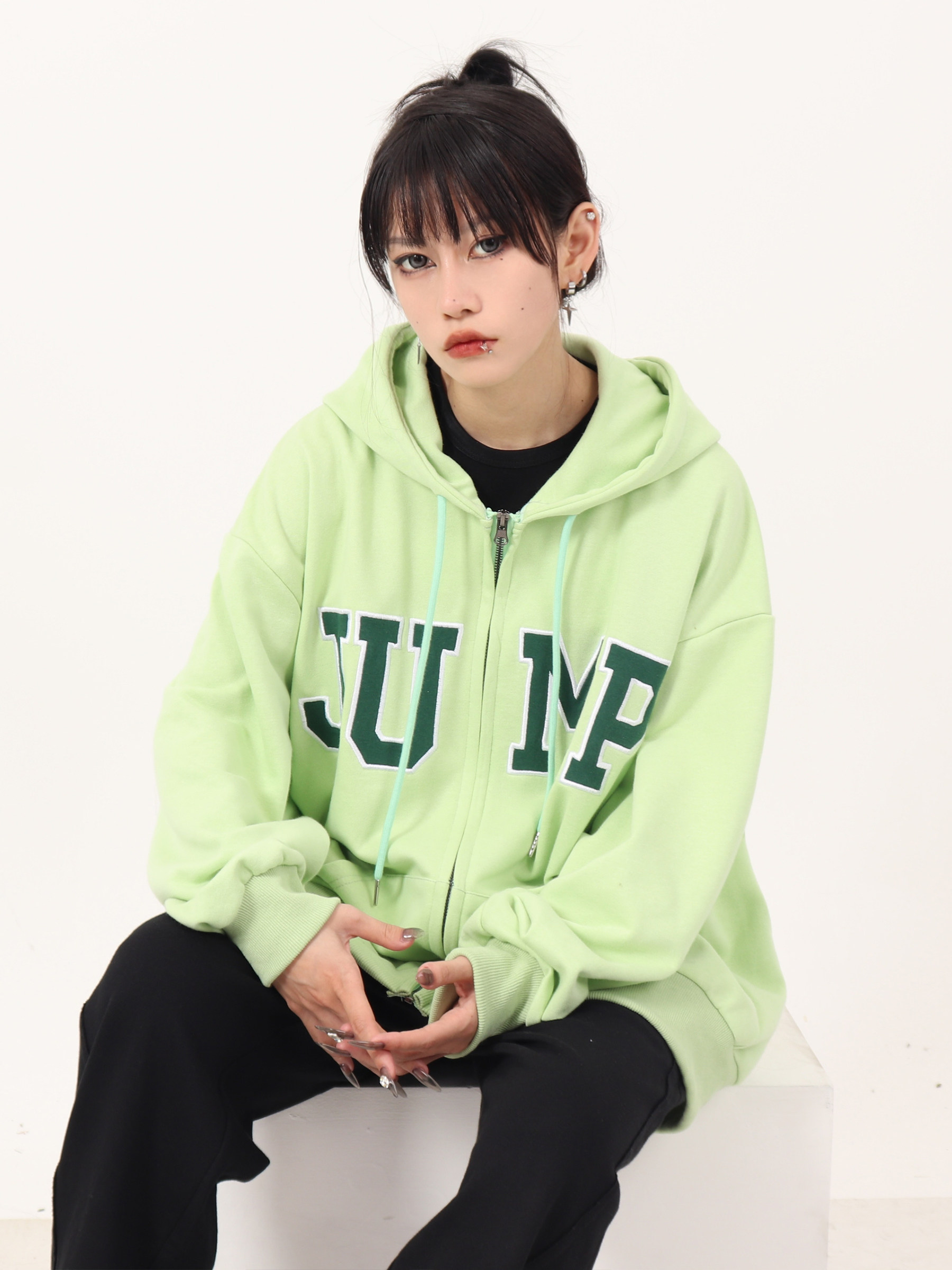 JUMP NEXT 國潮秋季情侶嘻哈六色大LOGO拉鍊開衫寬鬆休閒連帽運動衫
