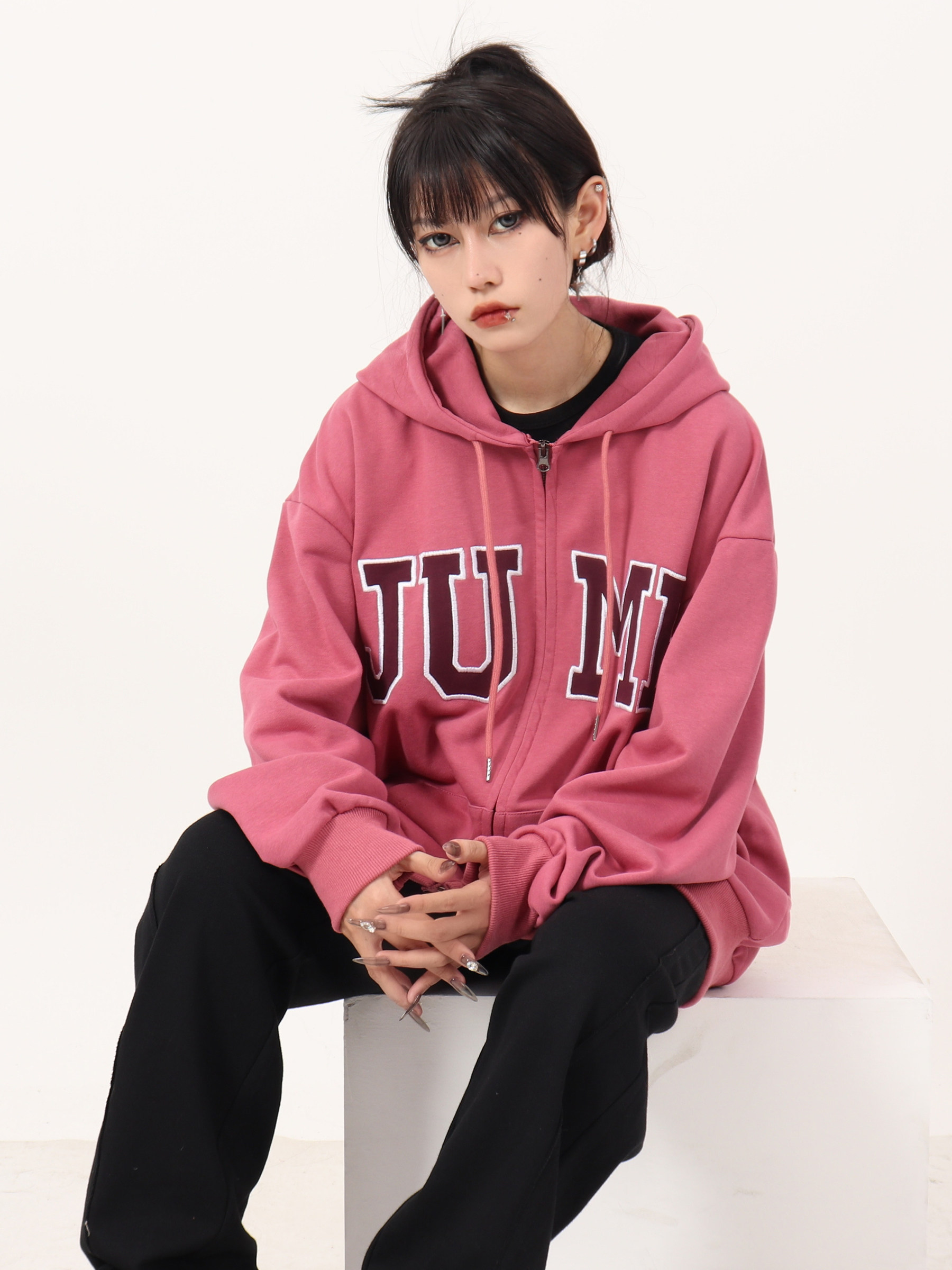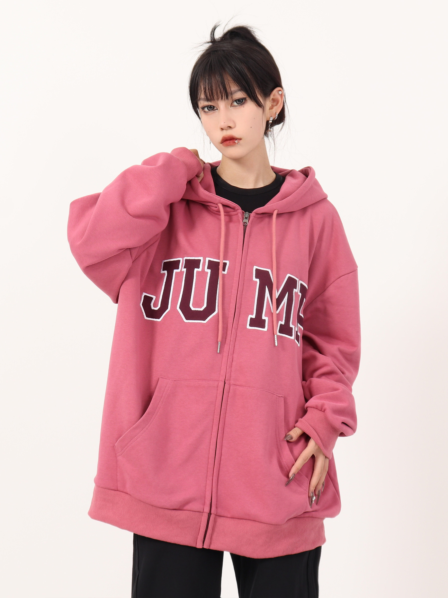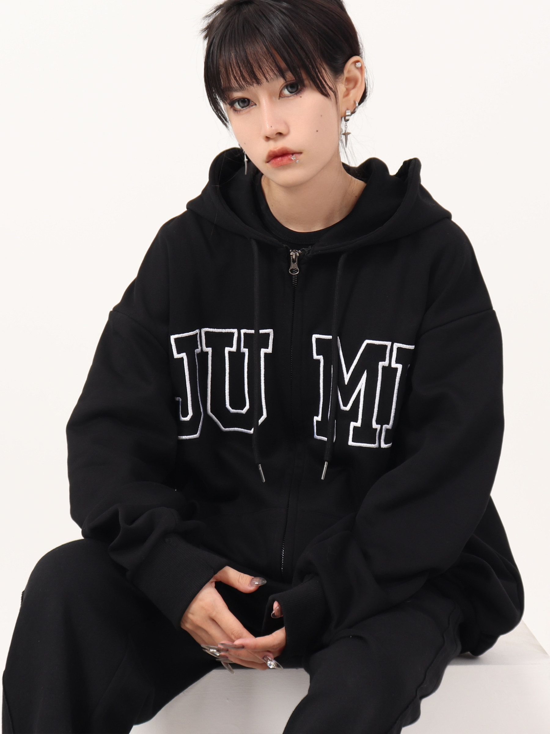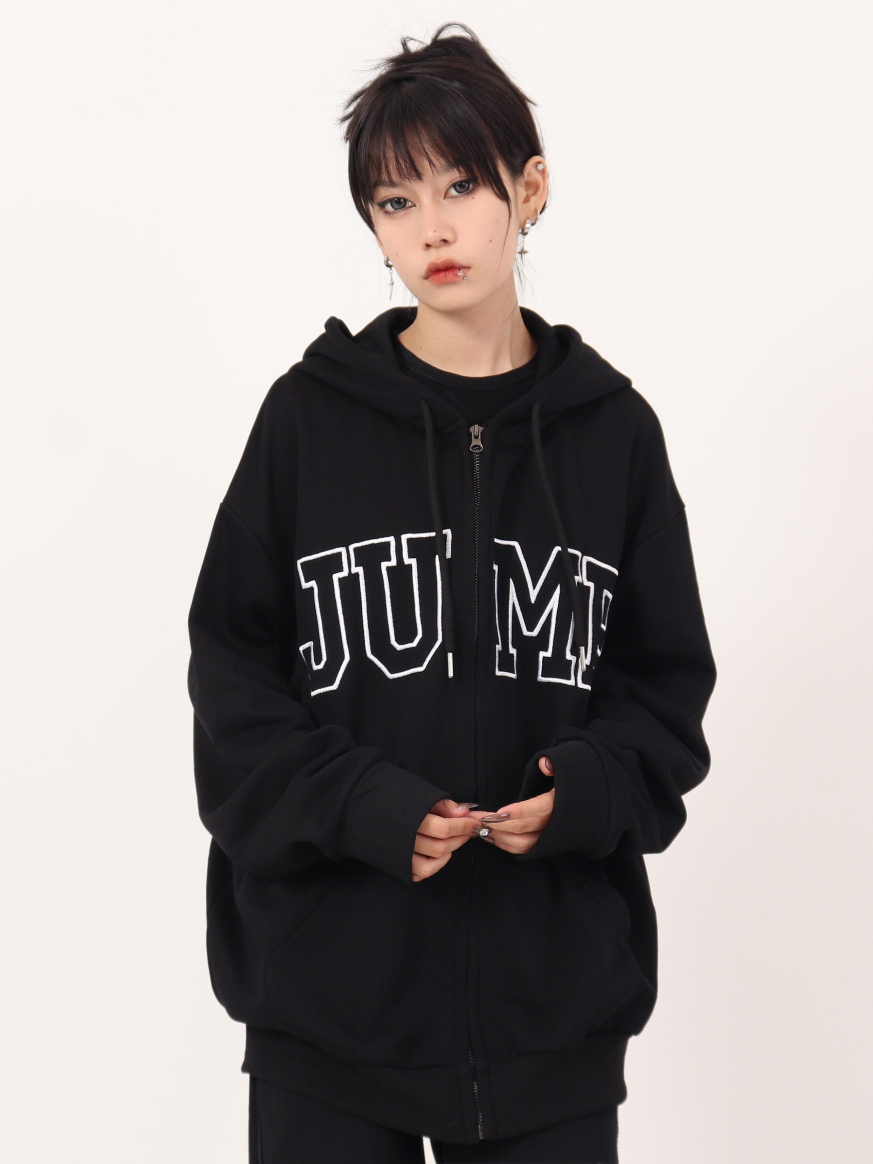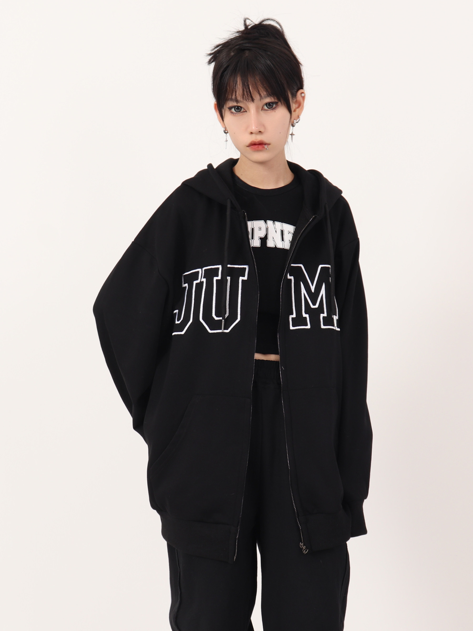 JUMP NEXT 國潮秋季情侶嘻哈六色大LOGO拉鍊開衫寬鬆休閒連帽運動衫