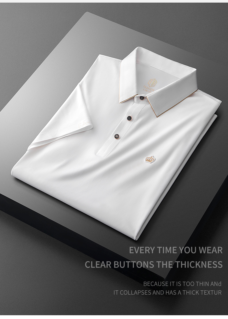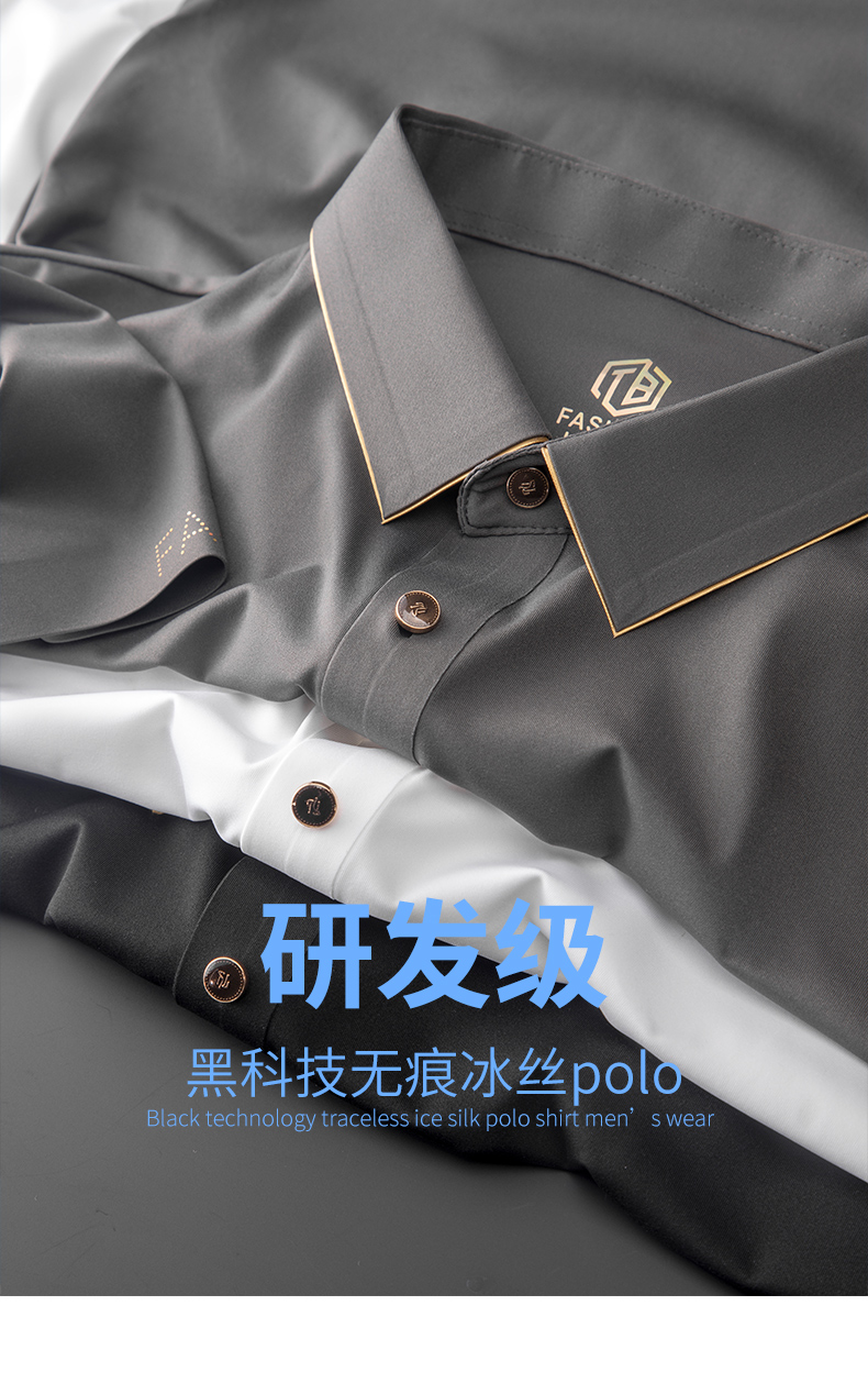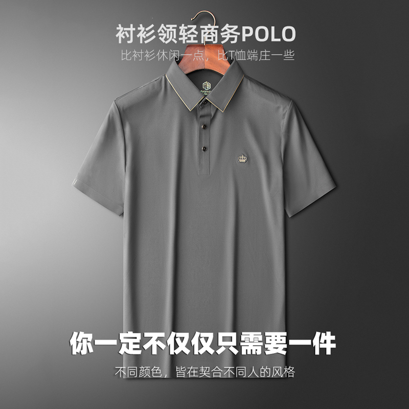 高端polo衫男短袖翻領修身免熨燙輕商務男裝上衣夏季冰絲薄款男T恤