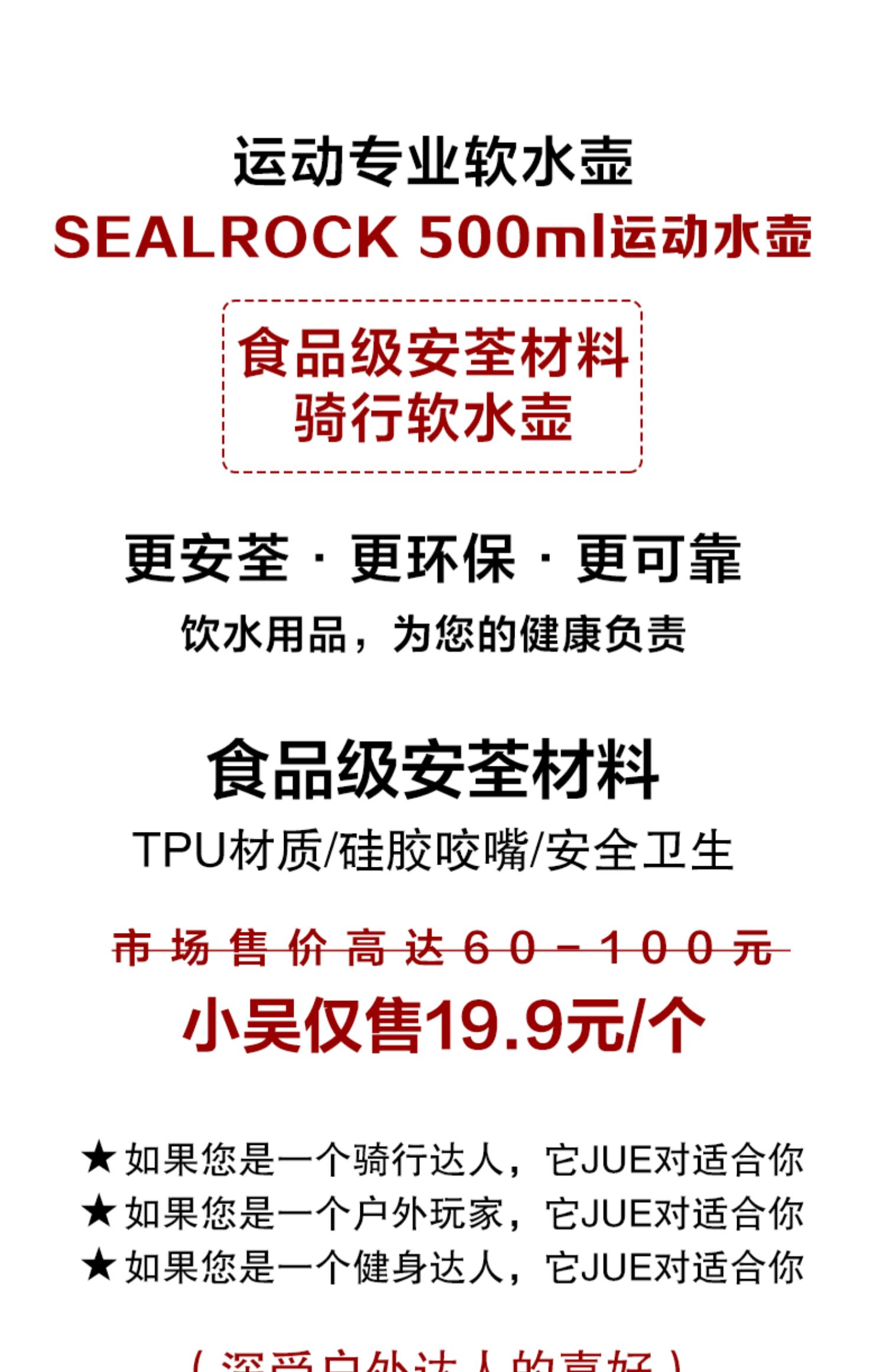 SEALROCK戶外運動騎行可攜式跑步專用水壺摺疊軟水壺水袋馬拉鬆TPU