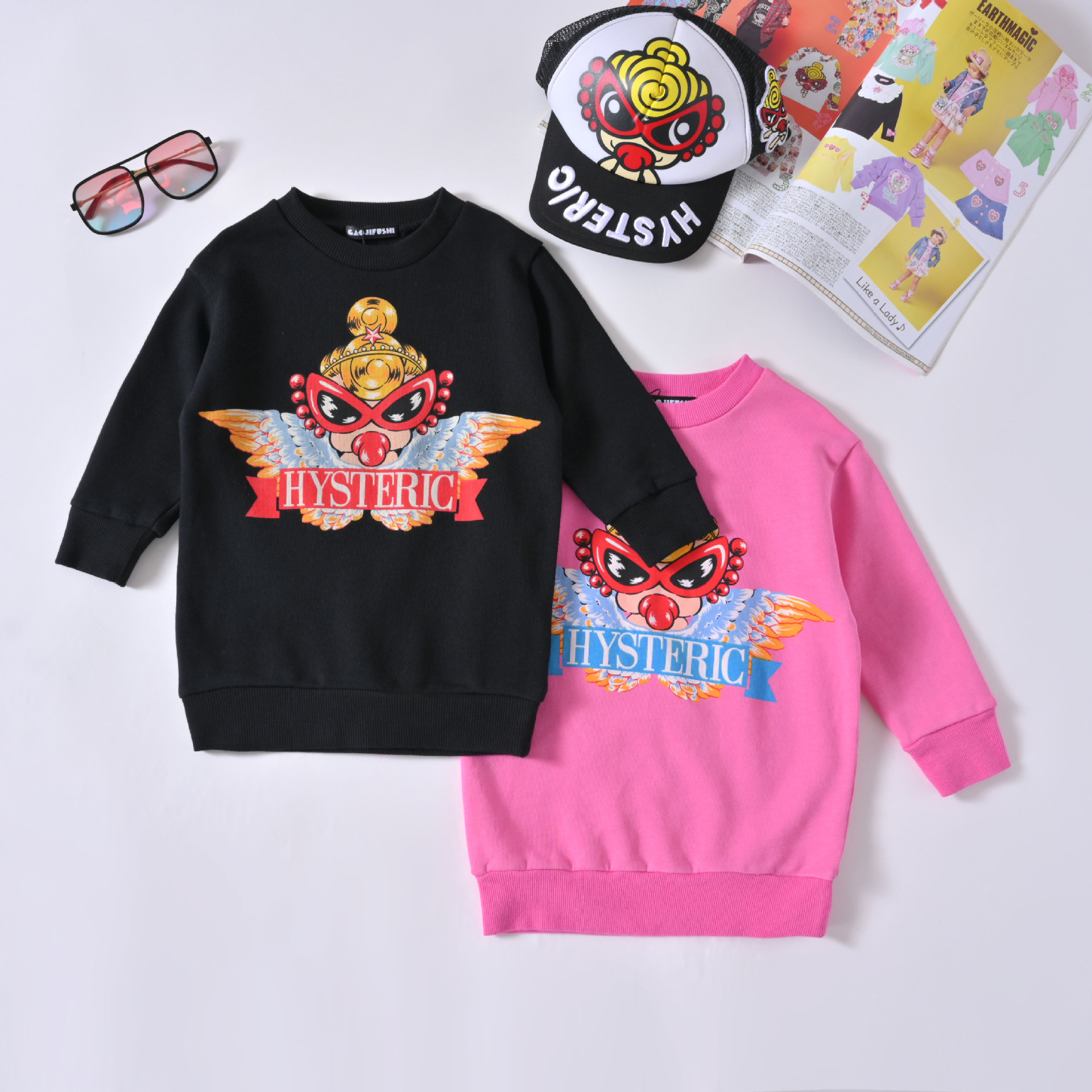 卡通春秋童装长袖棉印花上衣男女童潮范时尚卫衣中长款
