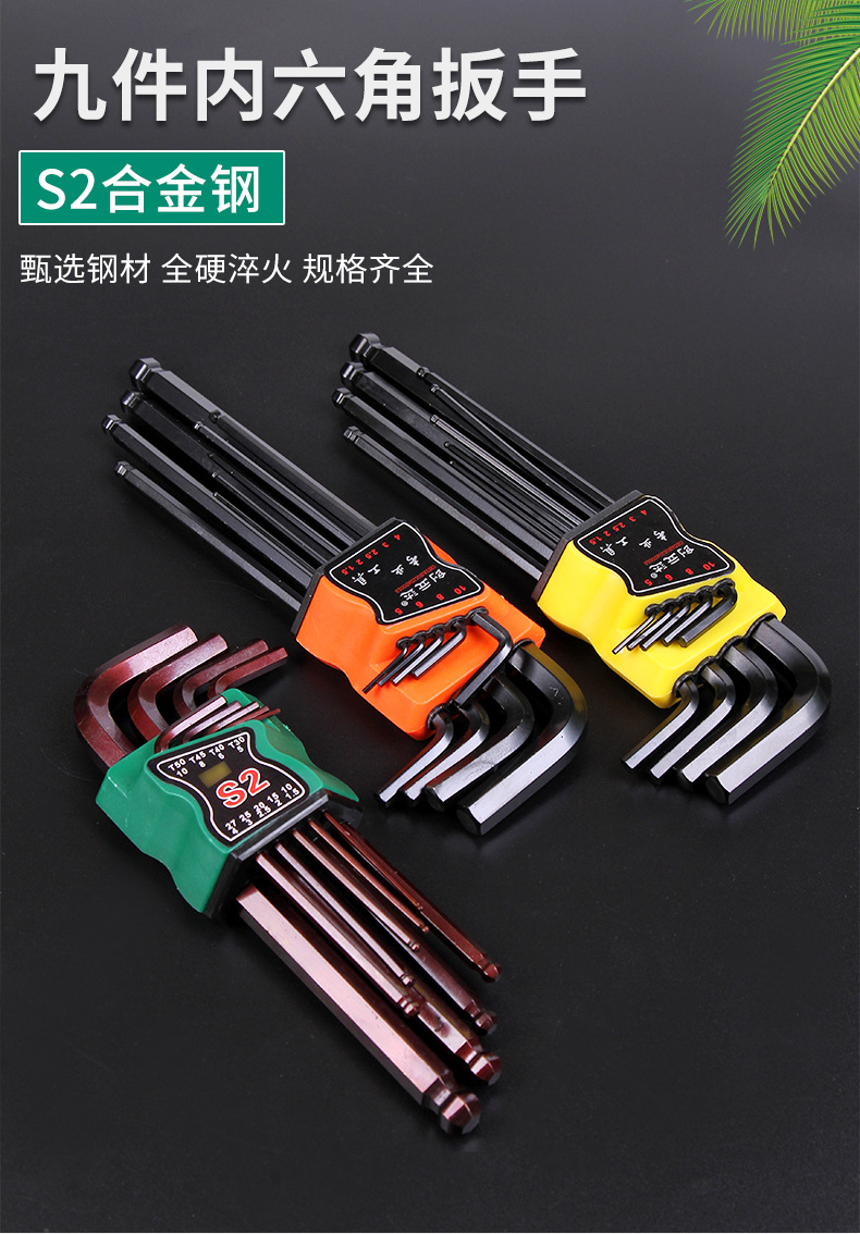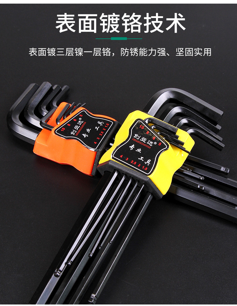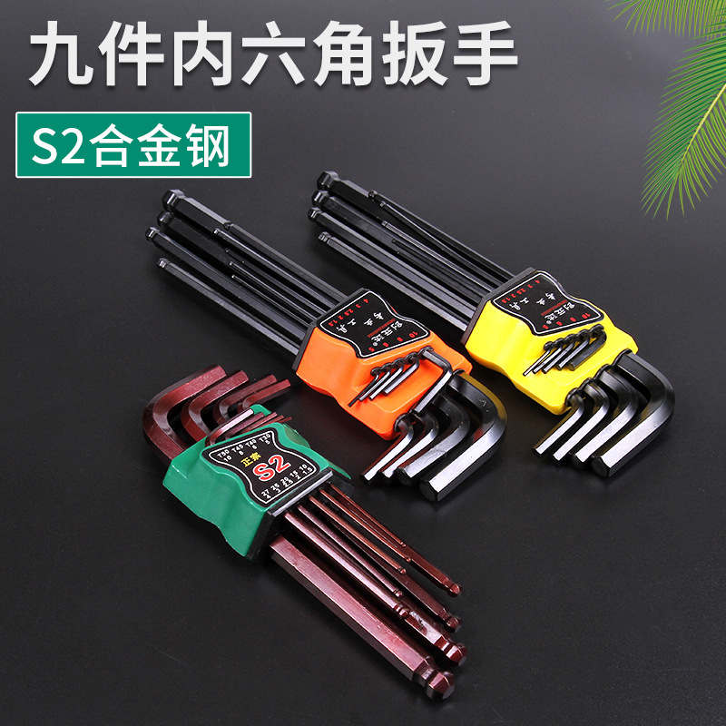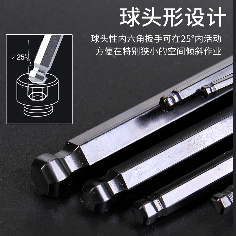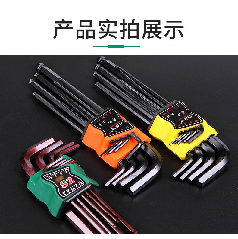 厂家批发精抛扳手 中长内六角加长套装工具 9件套球头内六角扳手
