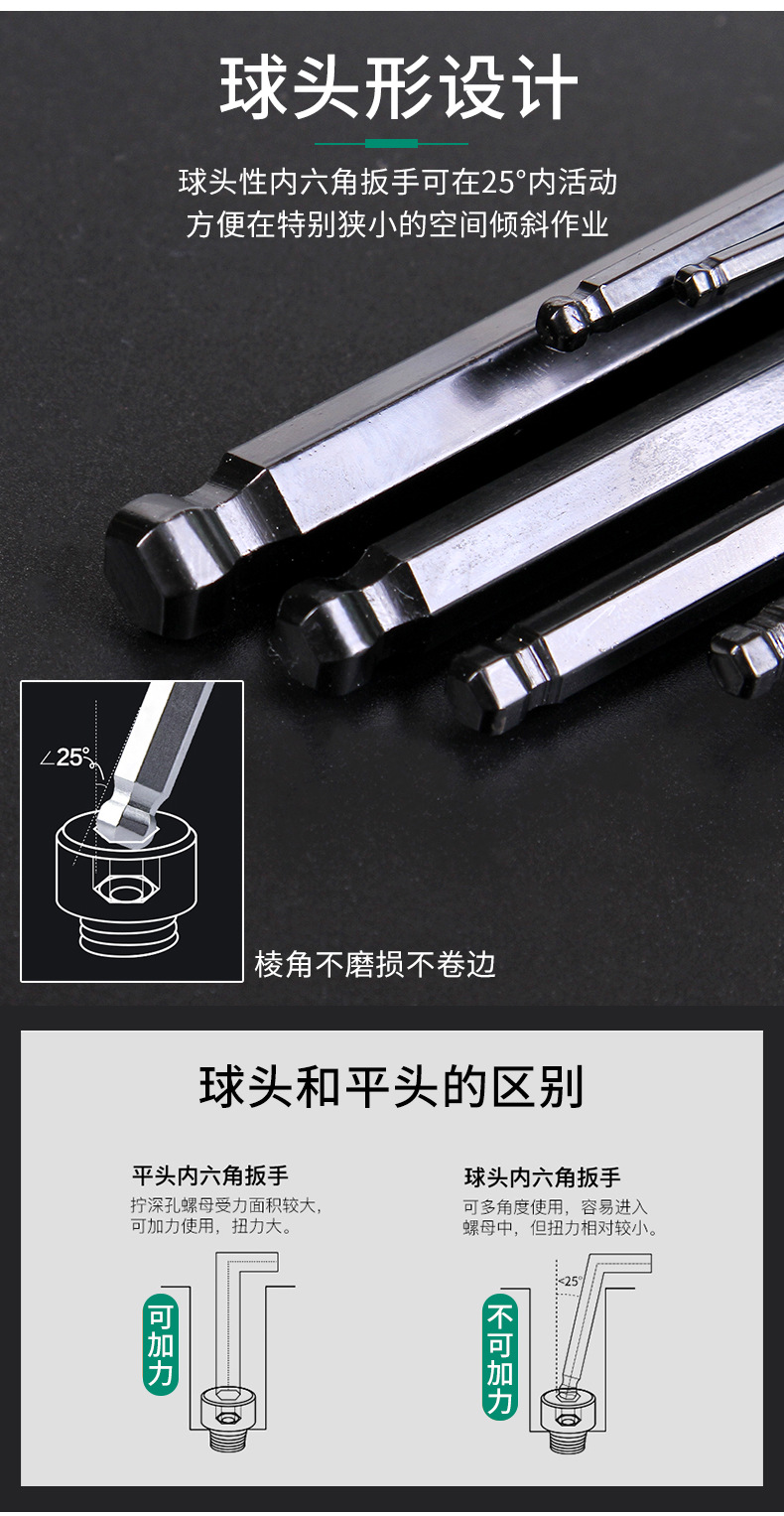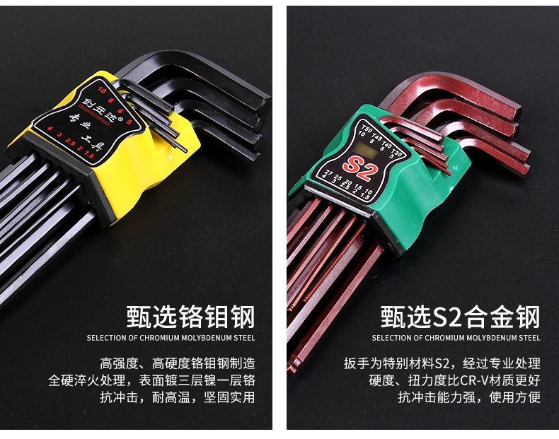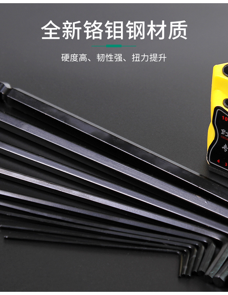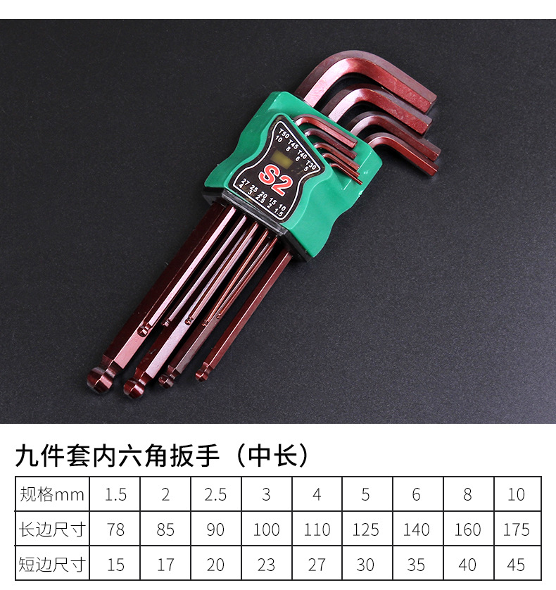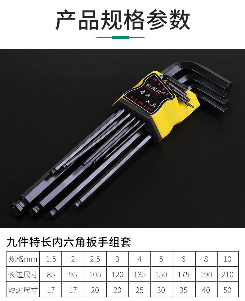 厂家批发精抛扳手 中长内六角加长套装工具 9件套球头内六角扳手