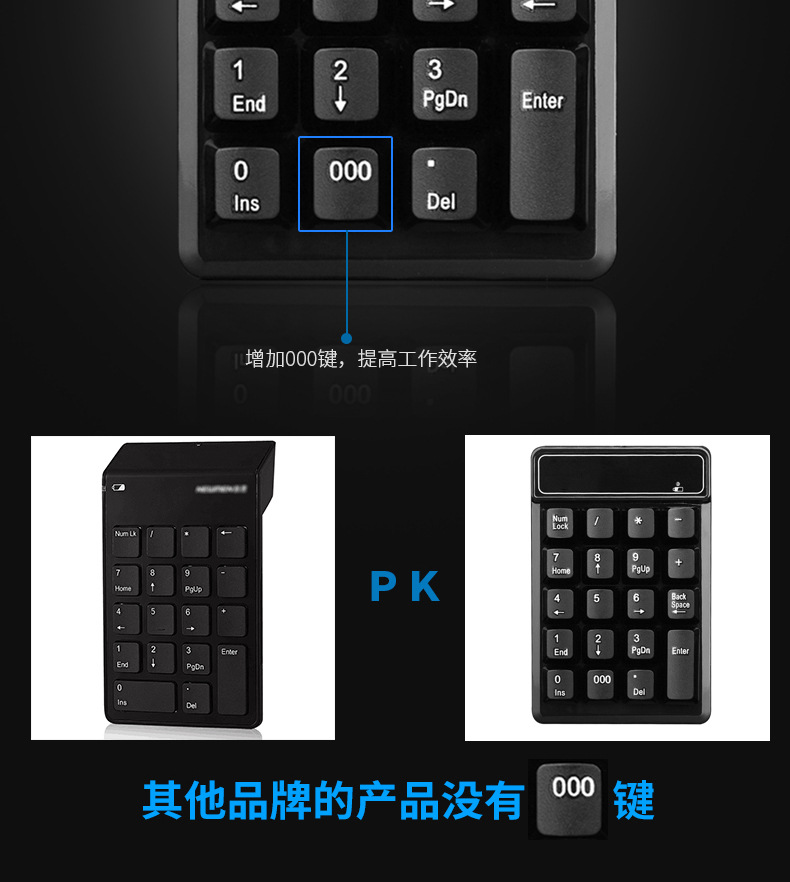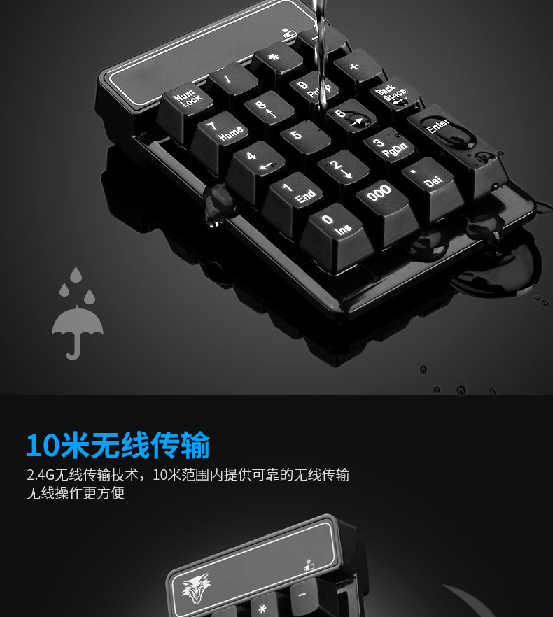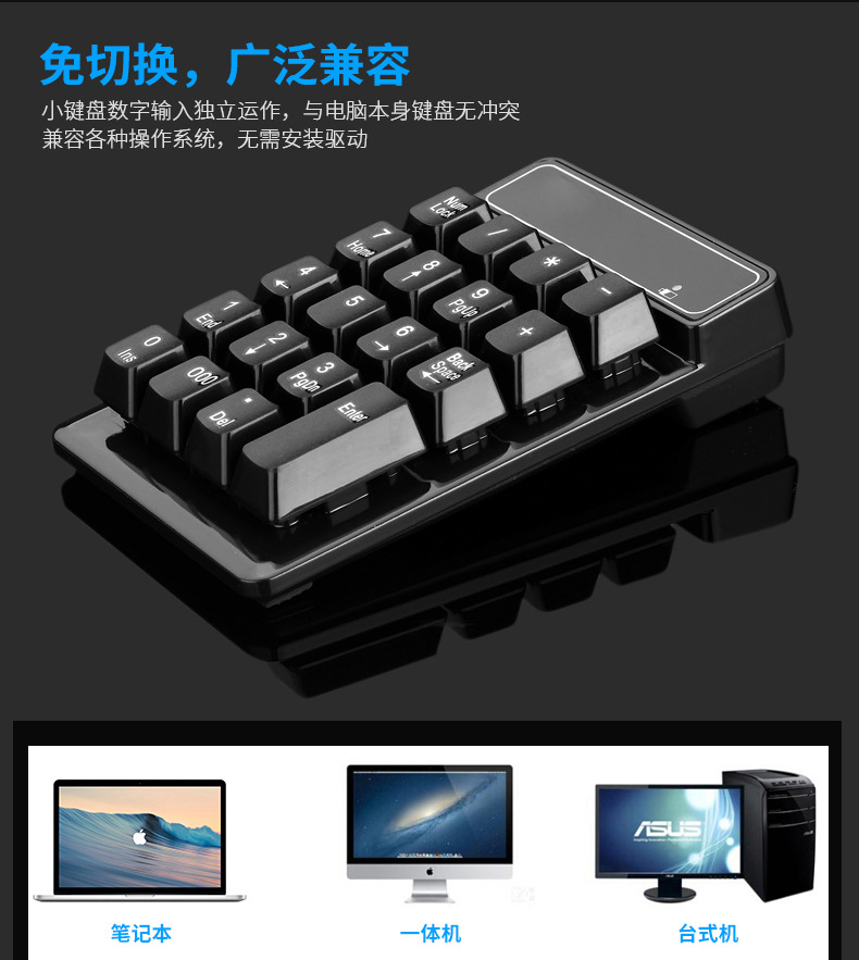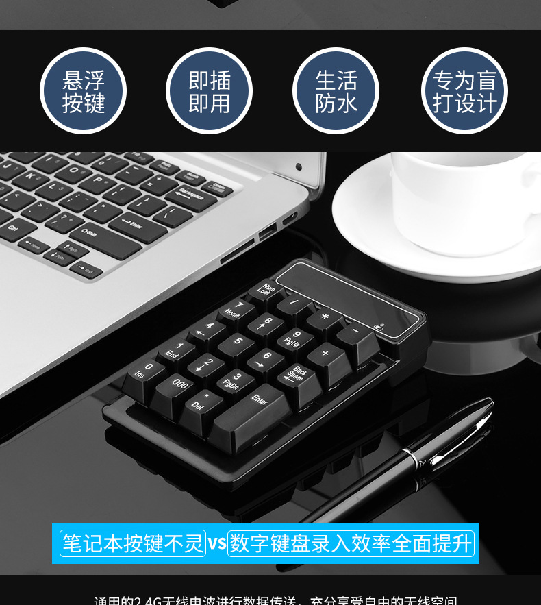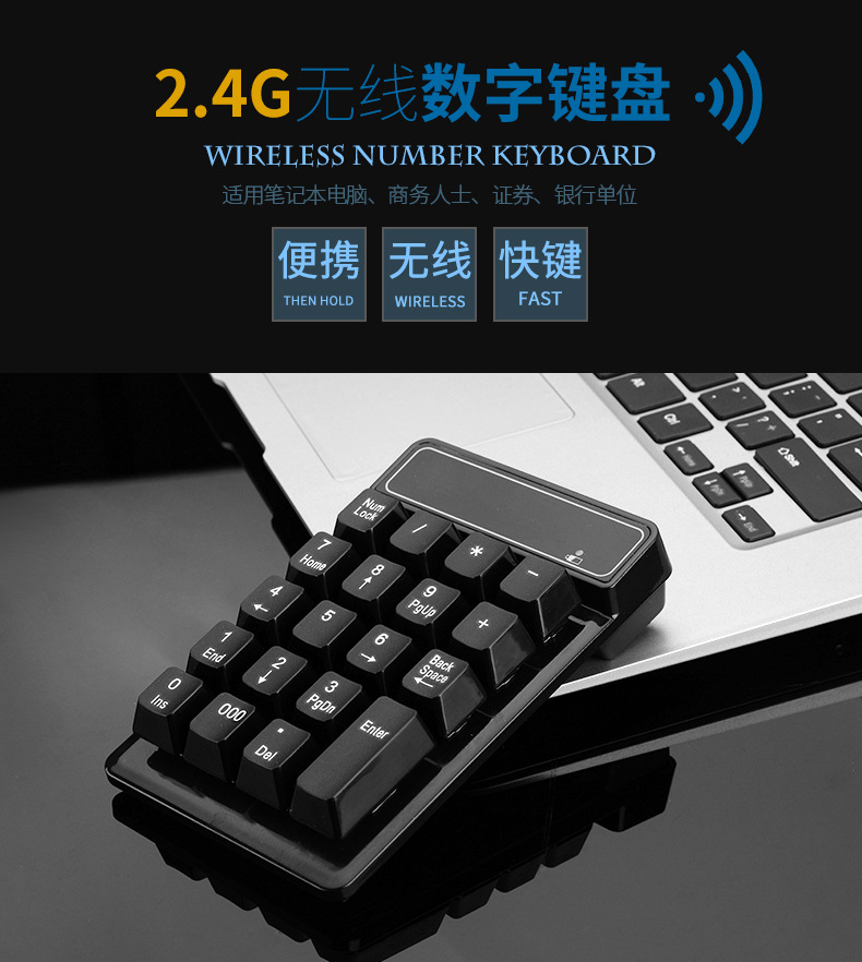 爆款2.4G无线数字键盘悬浮机械手感银行财会键盘便携19键密码输入