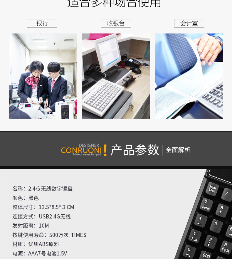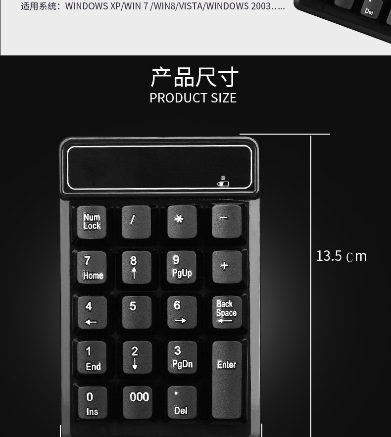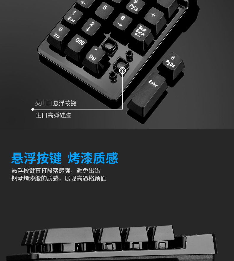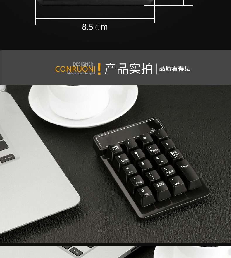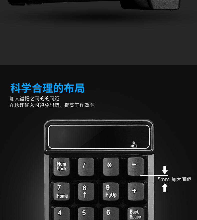 爆款2.4G无线数字键盘悬浮机械手感银行财会键盘便携19键密码输入