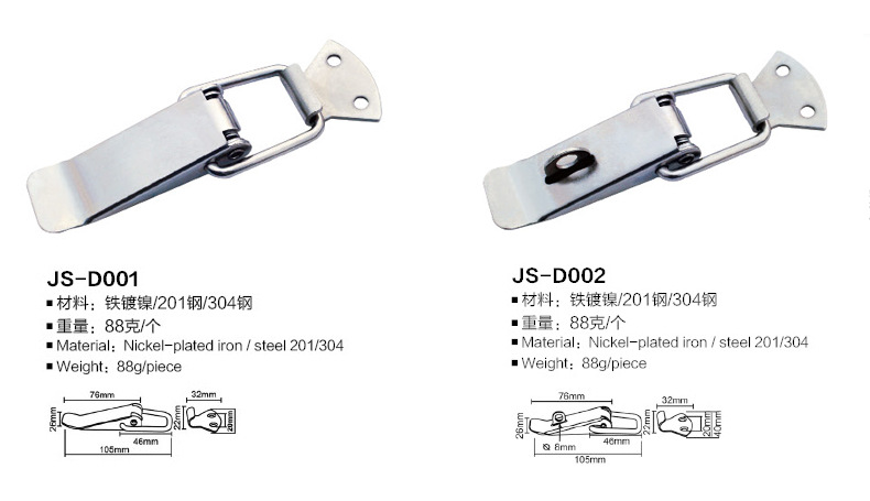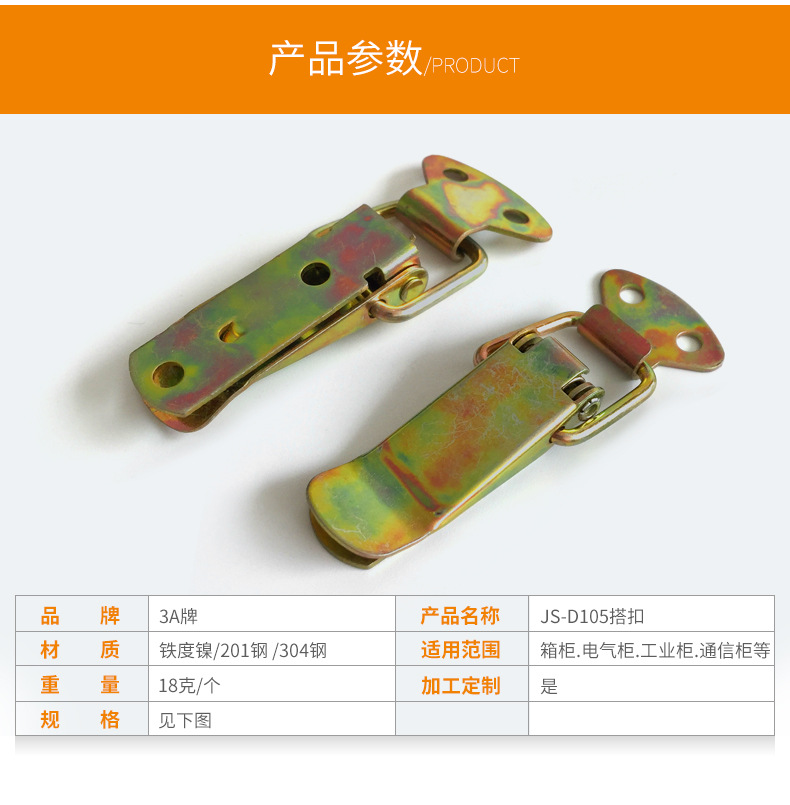 名称 201不锈钢搭扣 箱子锁扣 弹簧箱扣
