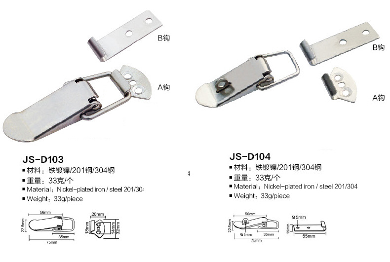 以上报价是304不锈钢搭扣部分款式的价钱,更多款式,铁的,201不锈钢的也都 有现货,可以开模定做各种搭扣