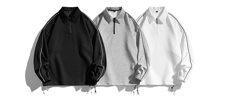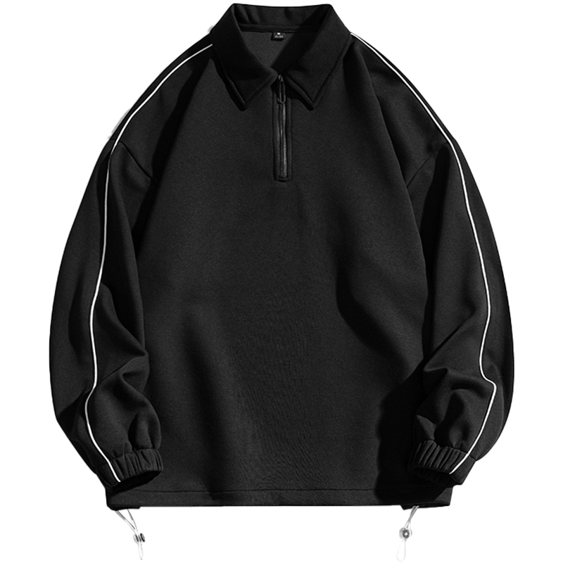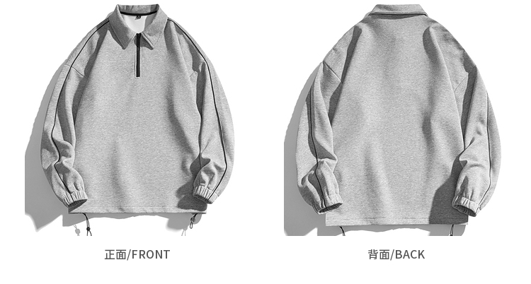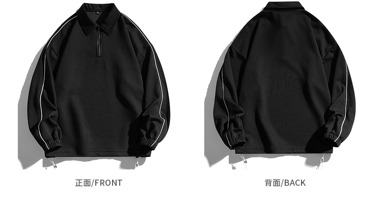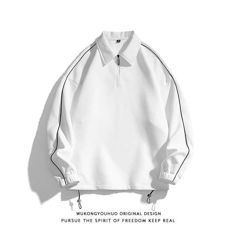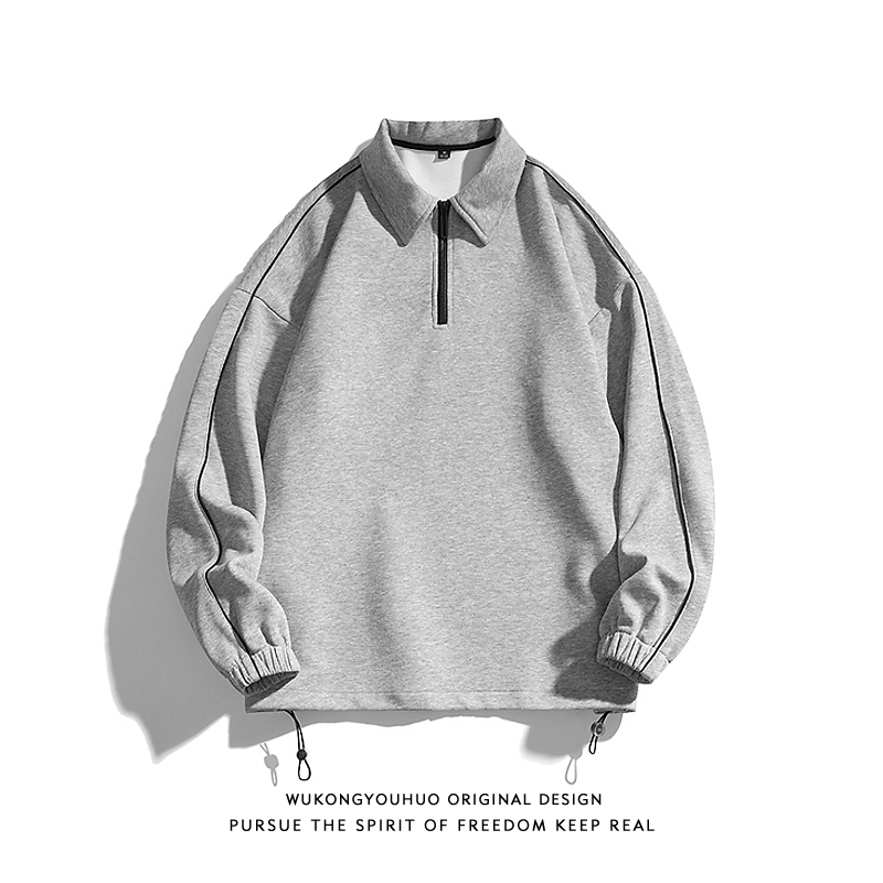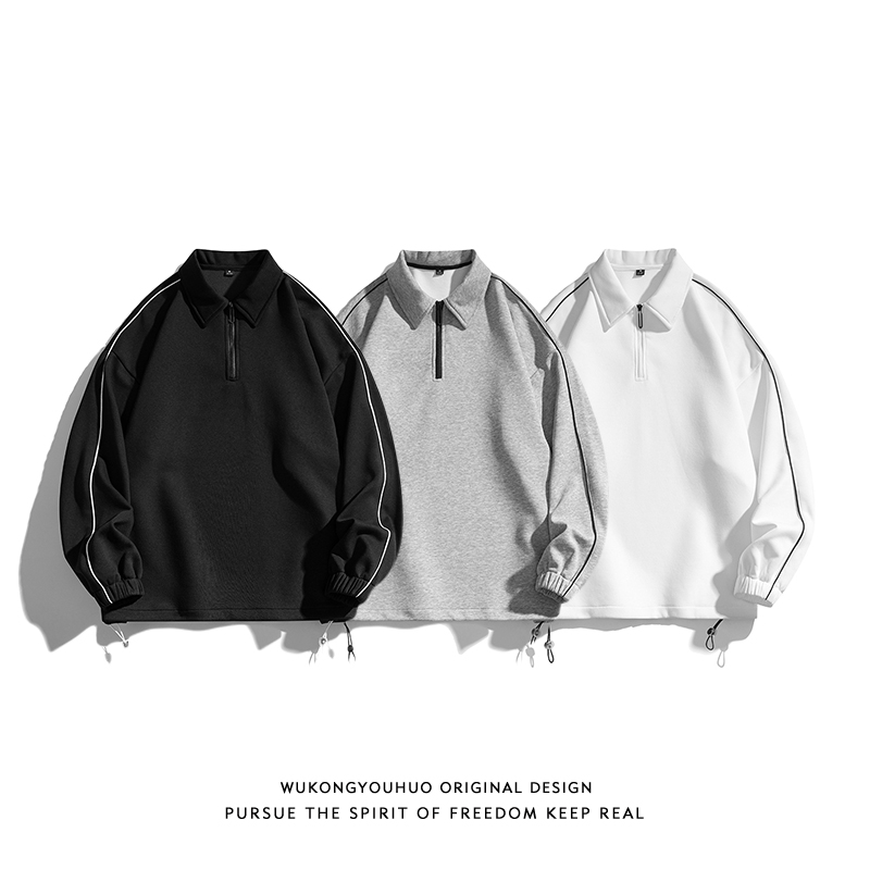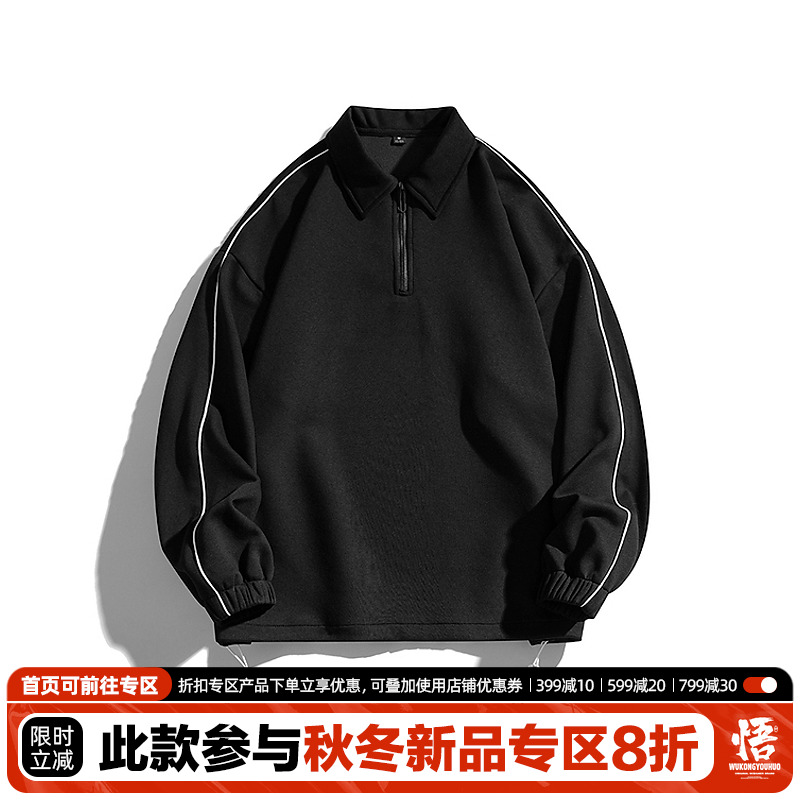 悟空有貨復古簡約拼色半拉鍊長袖POLO衫男女潮牌寬鬆情侶休閒上衣