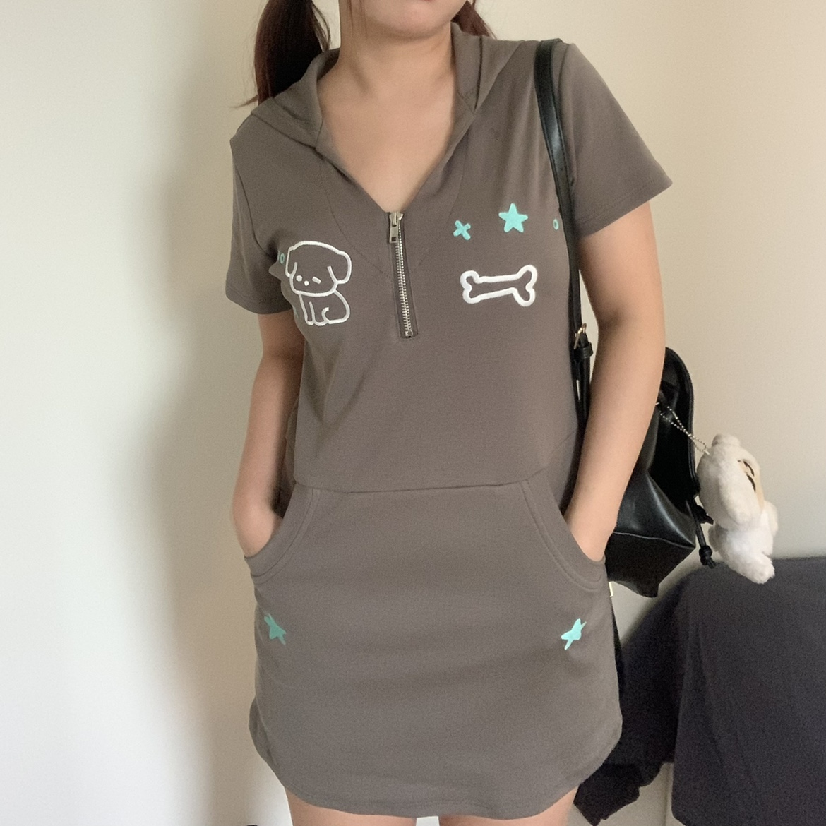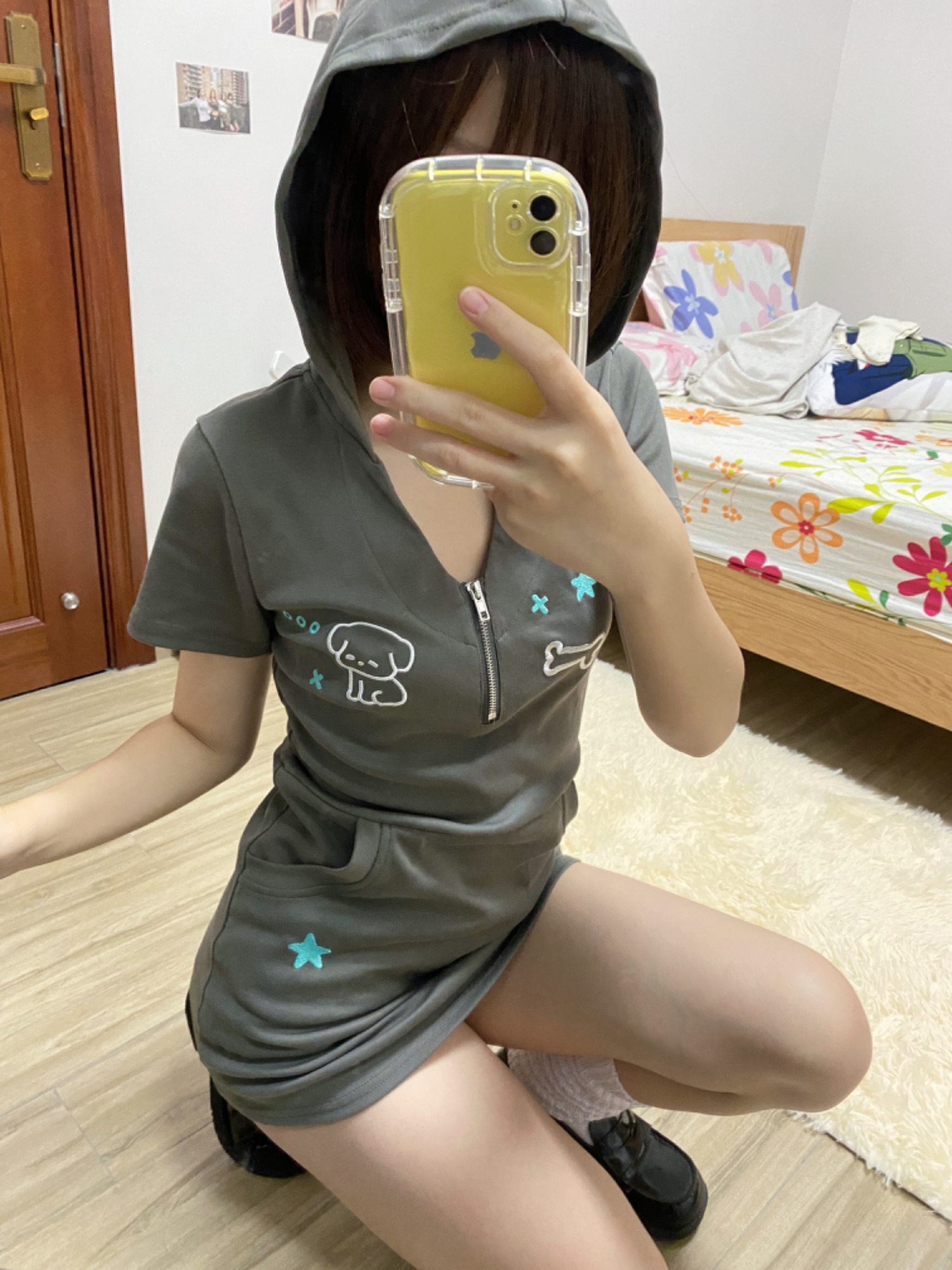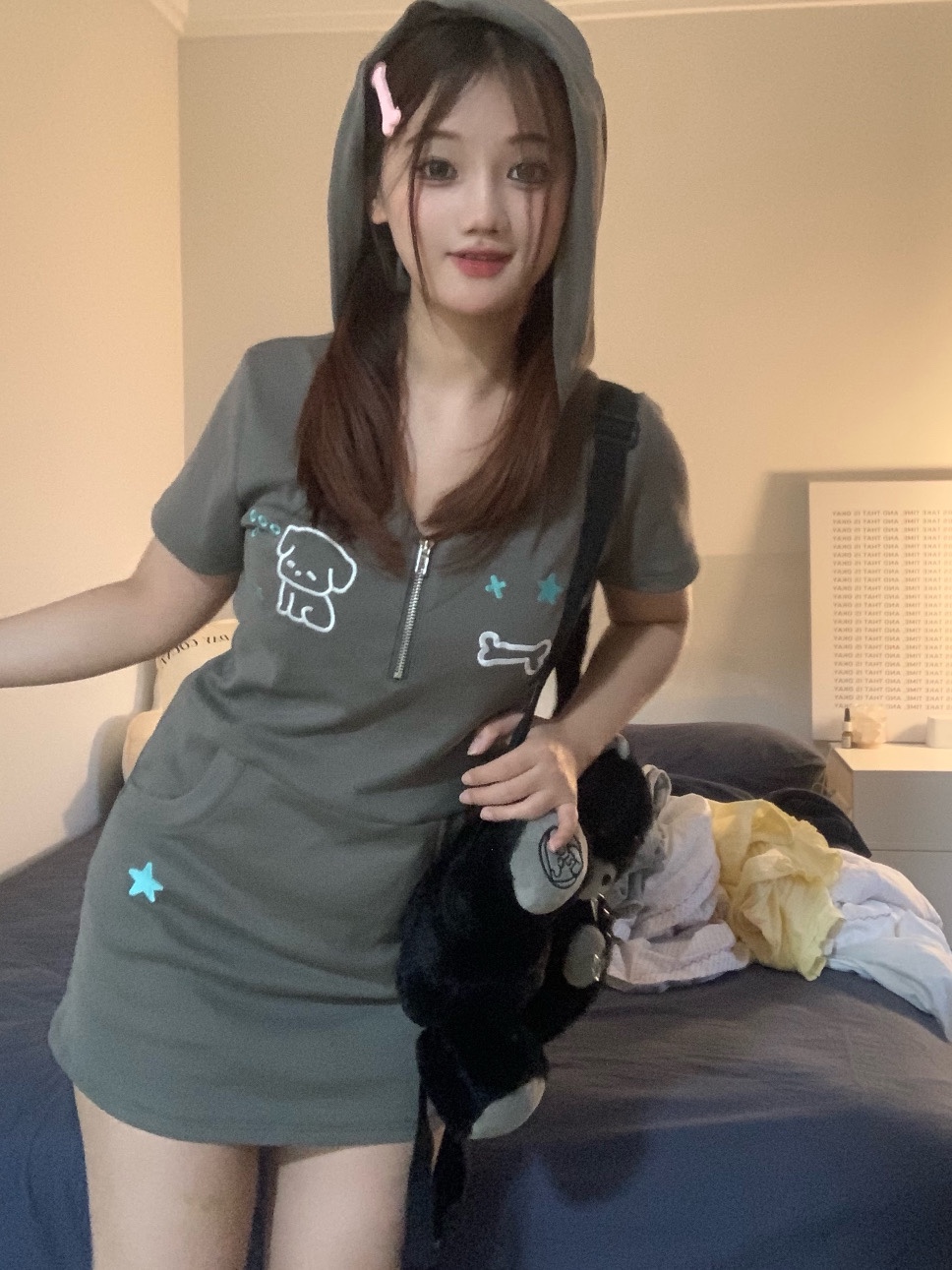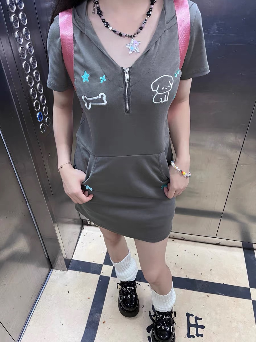 梨屋pearhouse 原創 星星刺繡連帽洋裝亞文化可愛廢土風新款