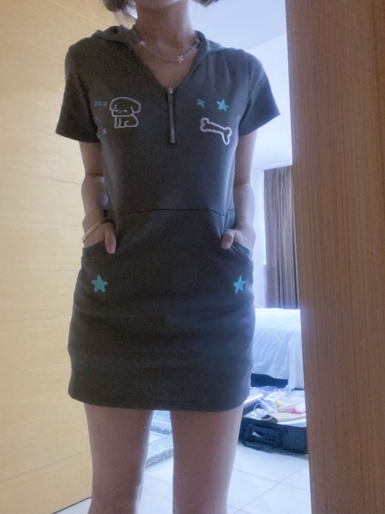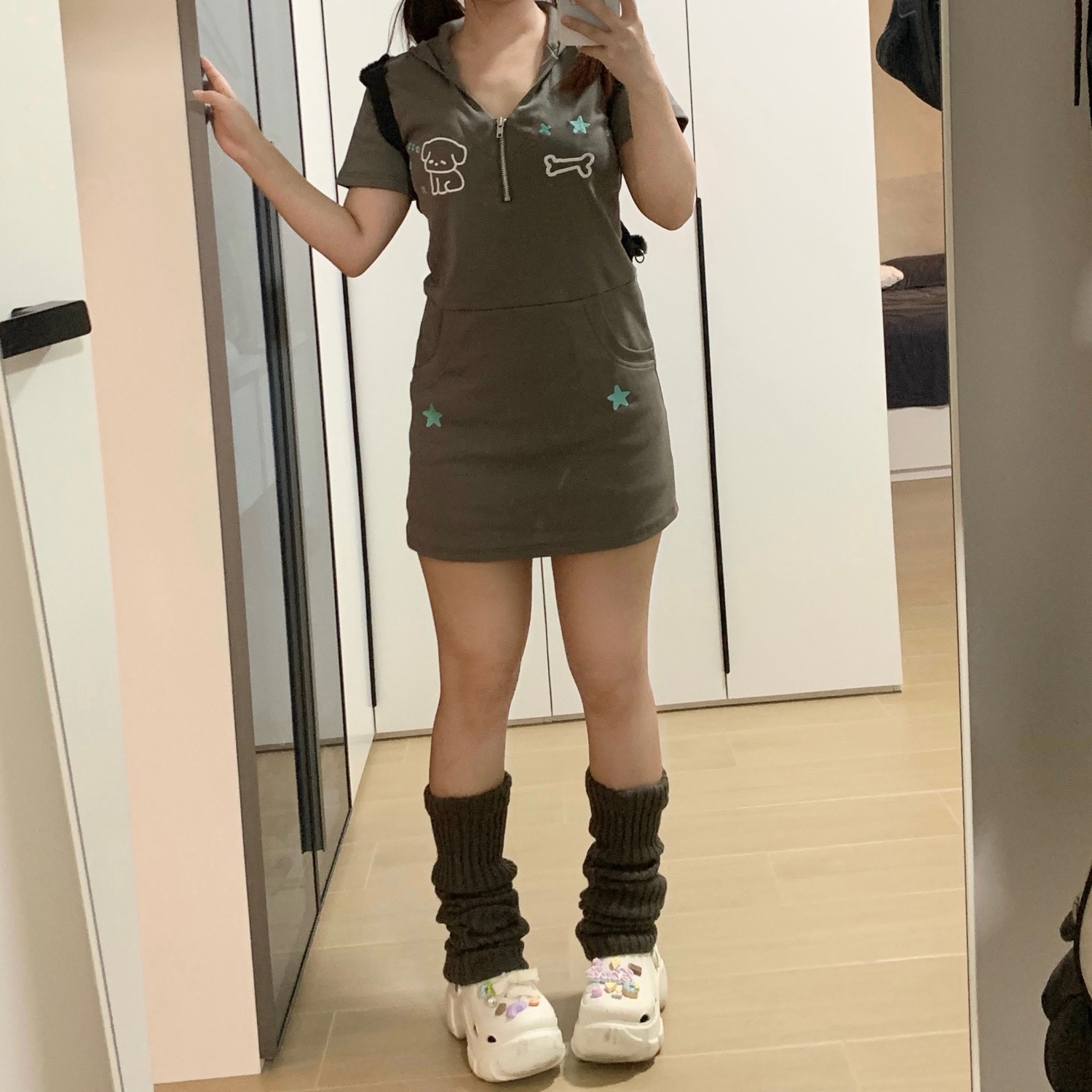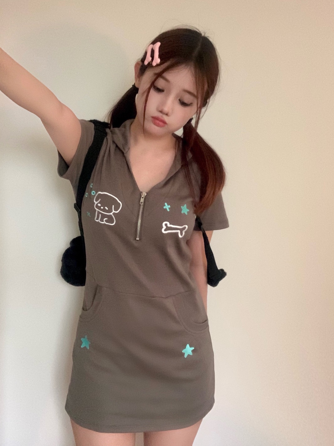 梨屋pearhouse 原創 星星刺繡連帽洋裝亞文化可愛廢土風新款