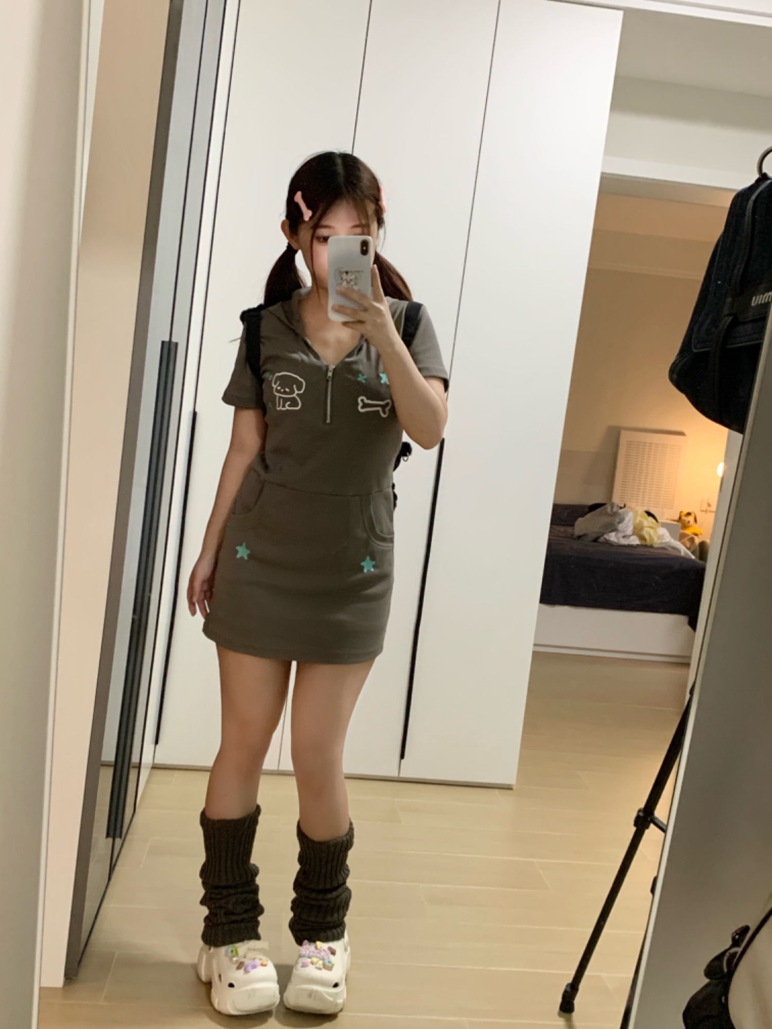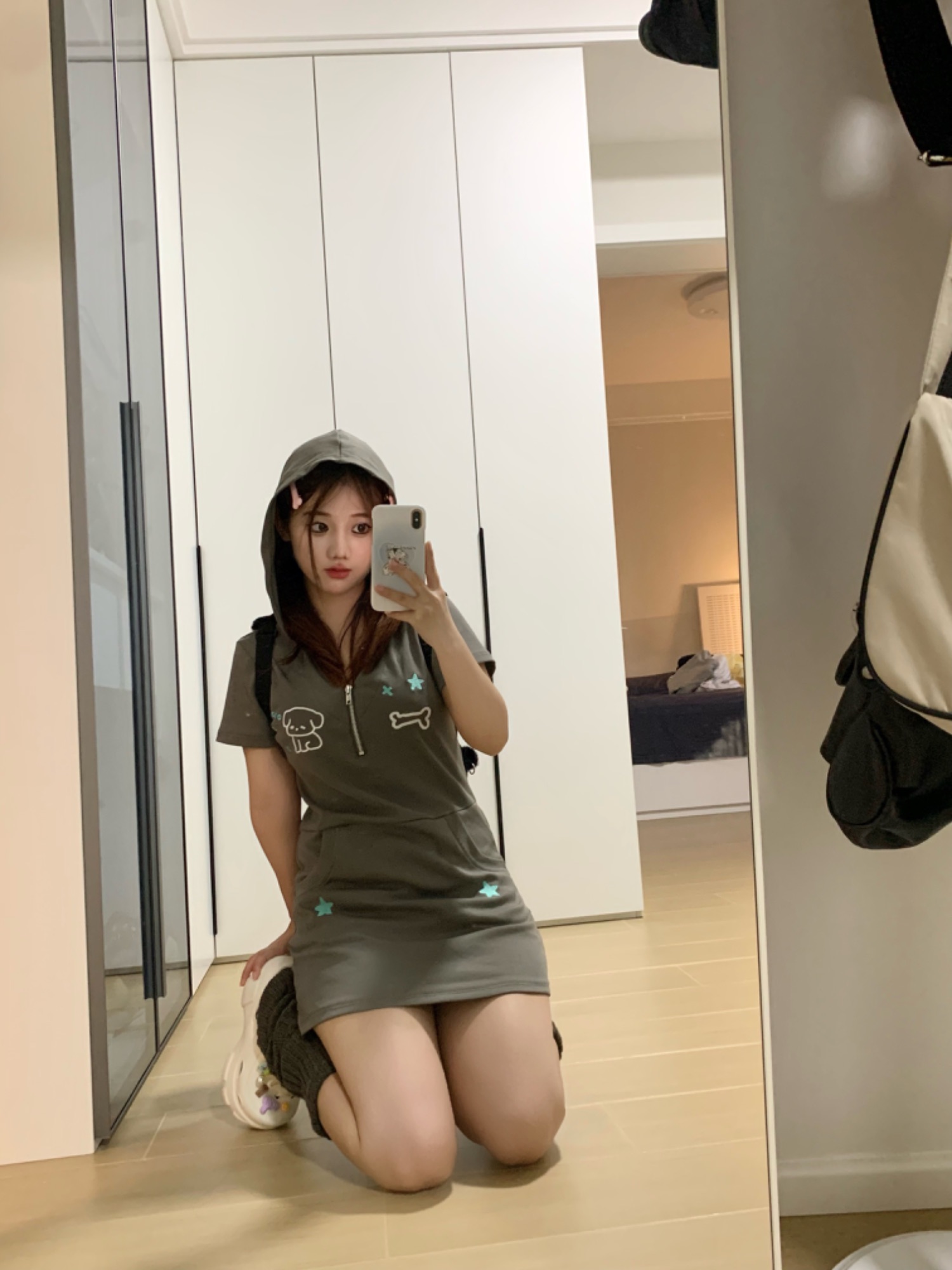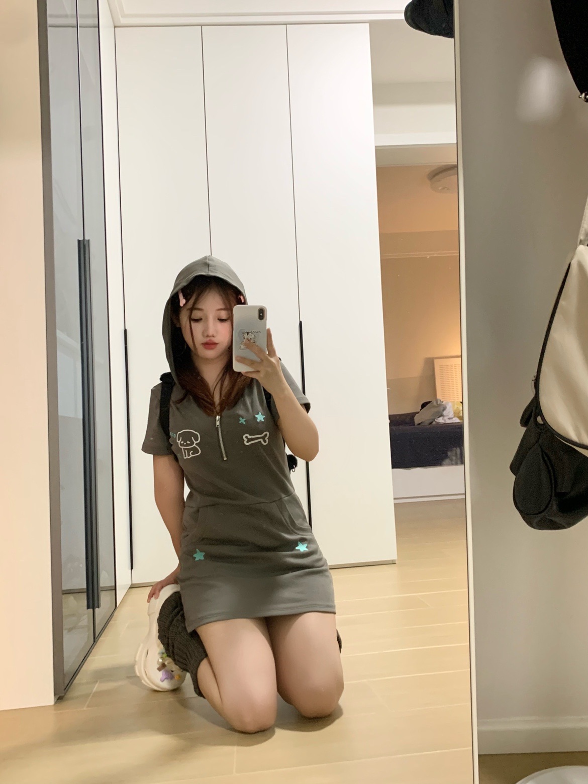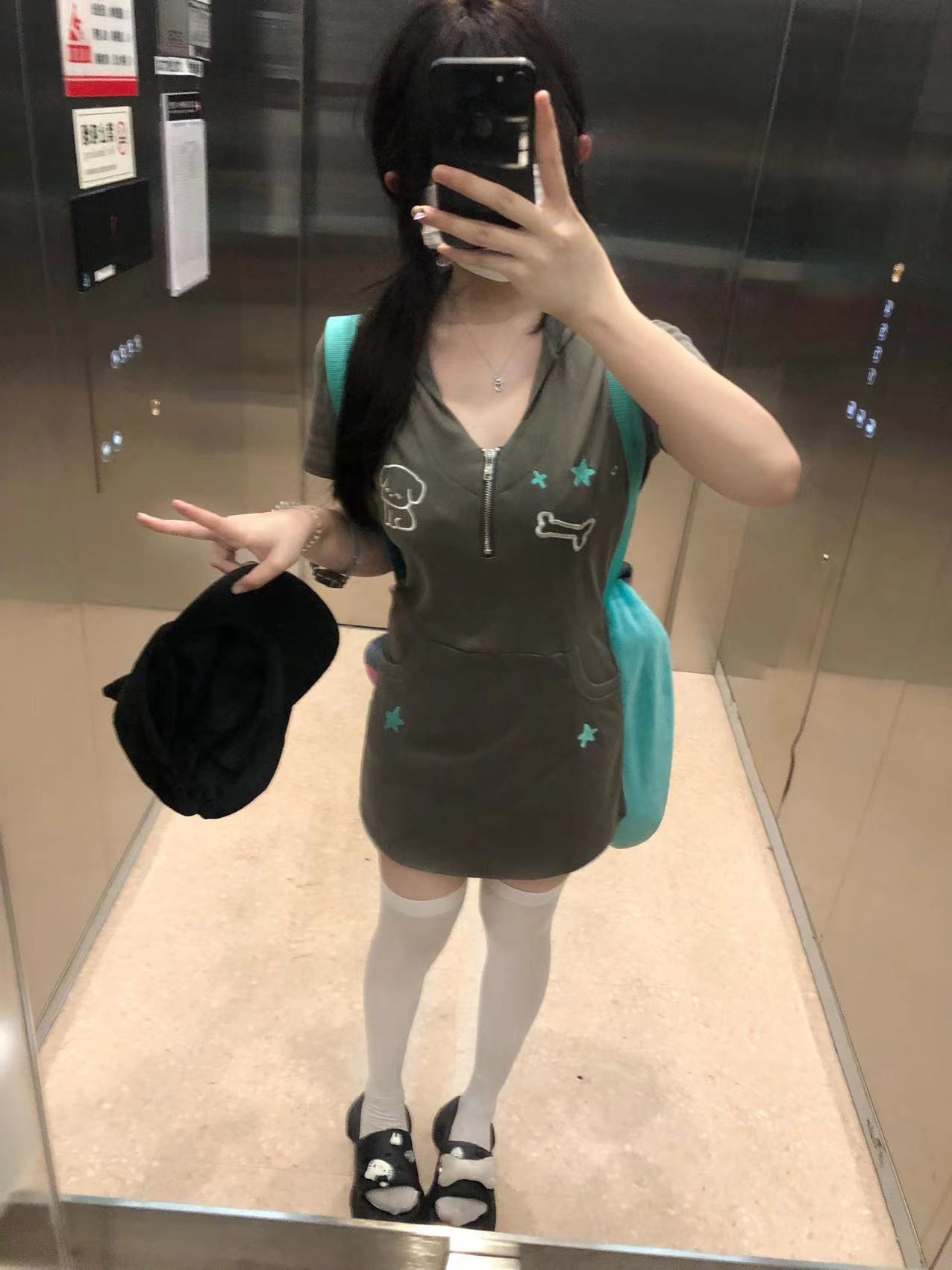 梨屋pearhouse 原創 星星刺繡連帽洋裝亞文化可愛廢土風新款