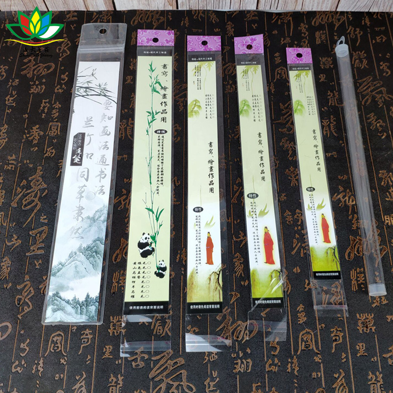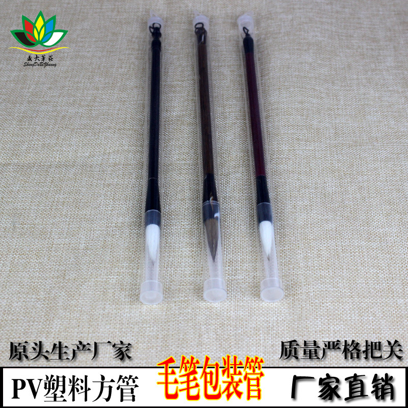 厂家批发毛笔单支OPP包装袋 硬纸卡保护毛笔塑料方管加厚归纳笔套