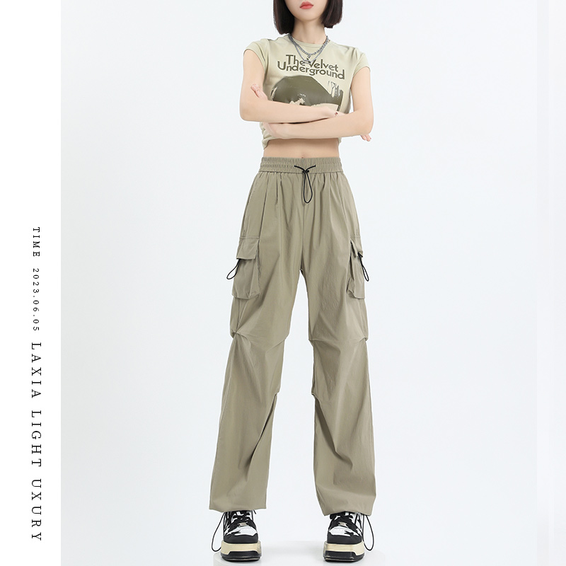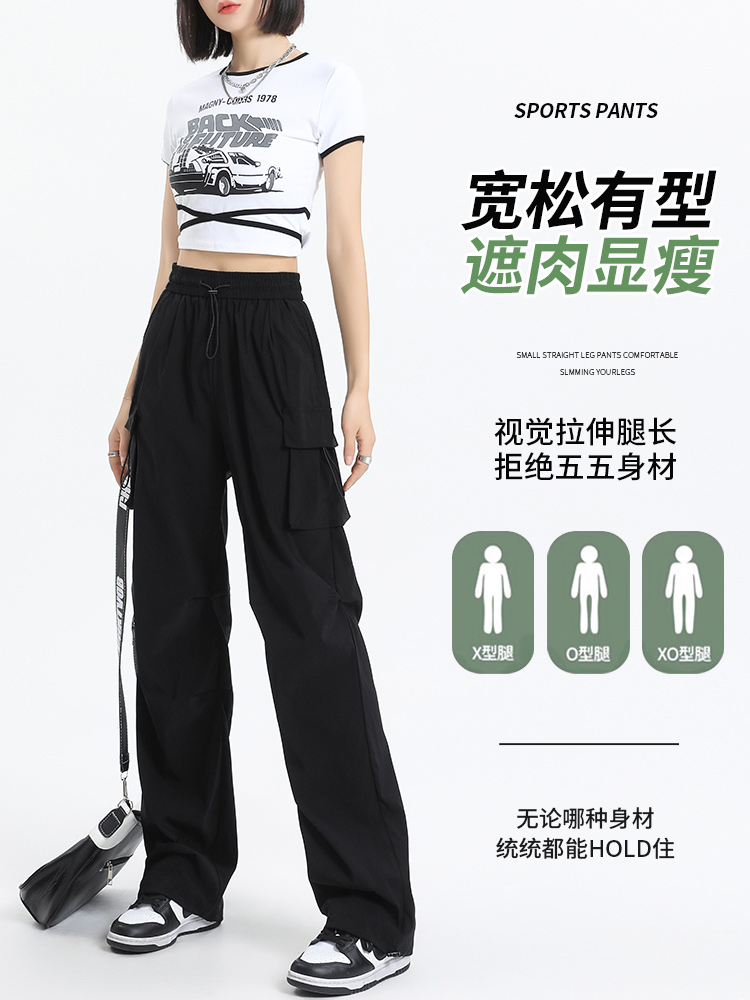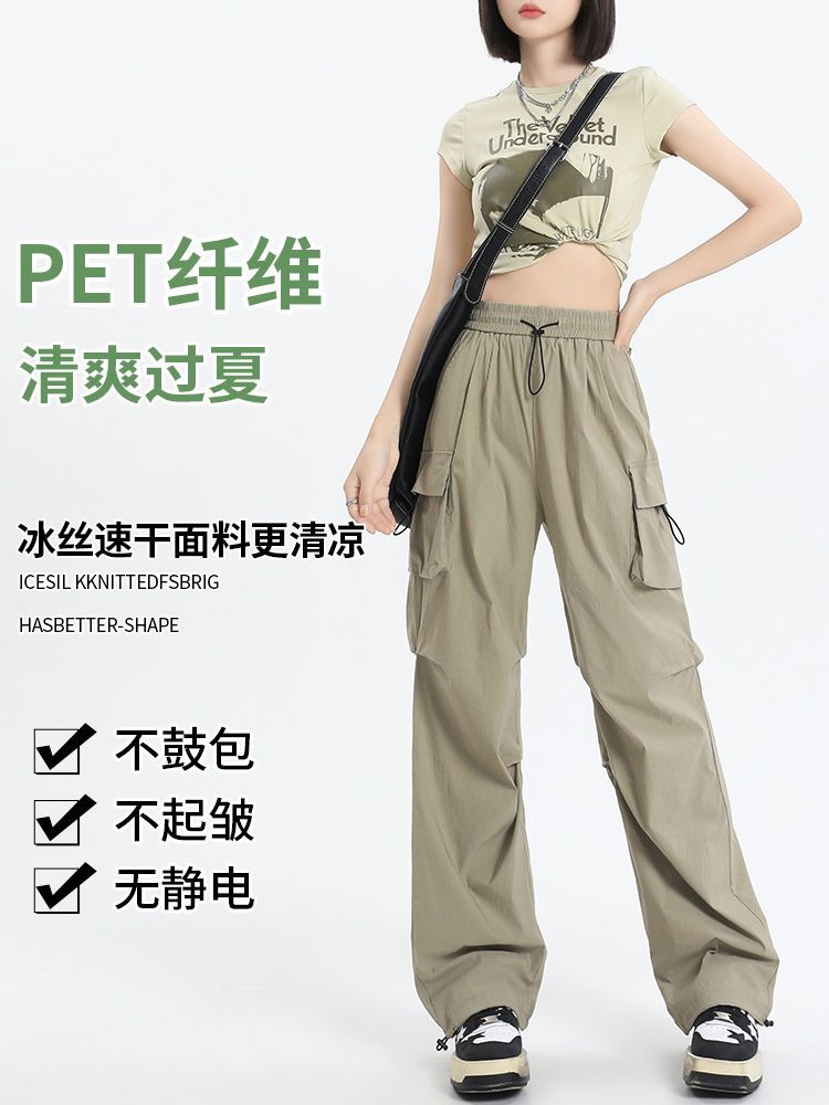 速乾工裝褲女夏季薄款美式抽繩束腳登山運動褲冰絲防曬垂感闊腿褲