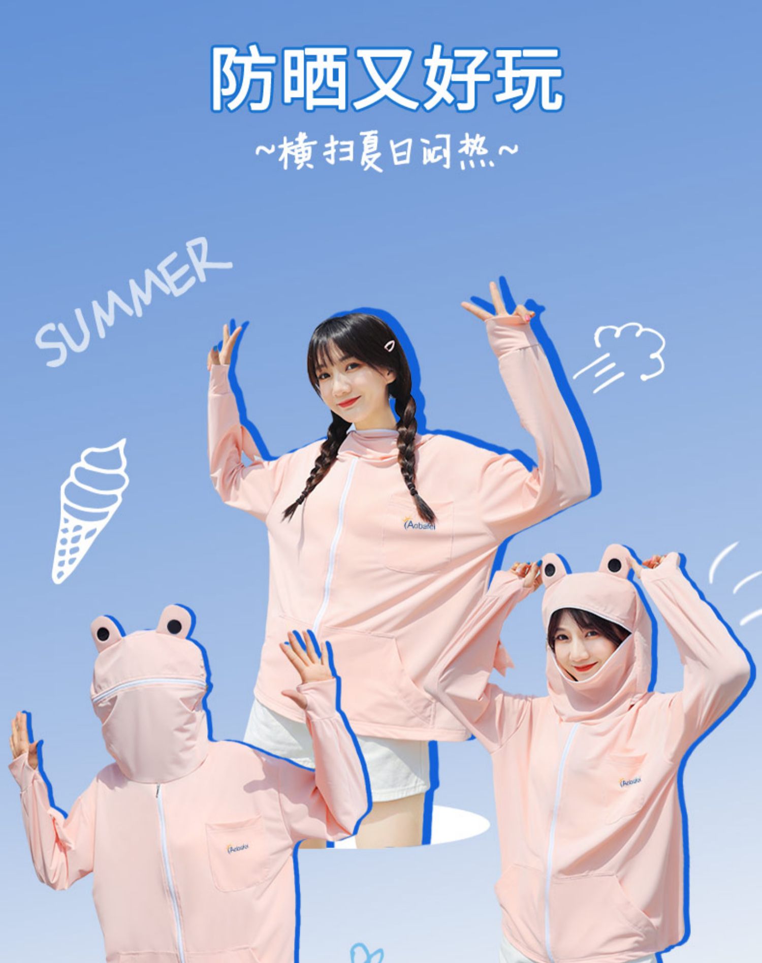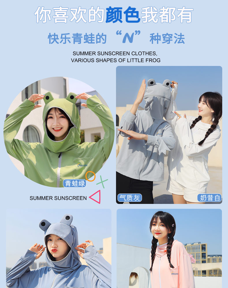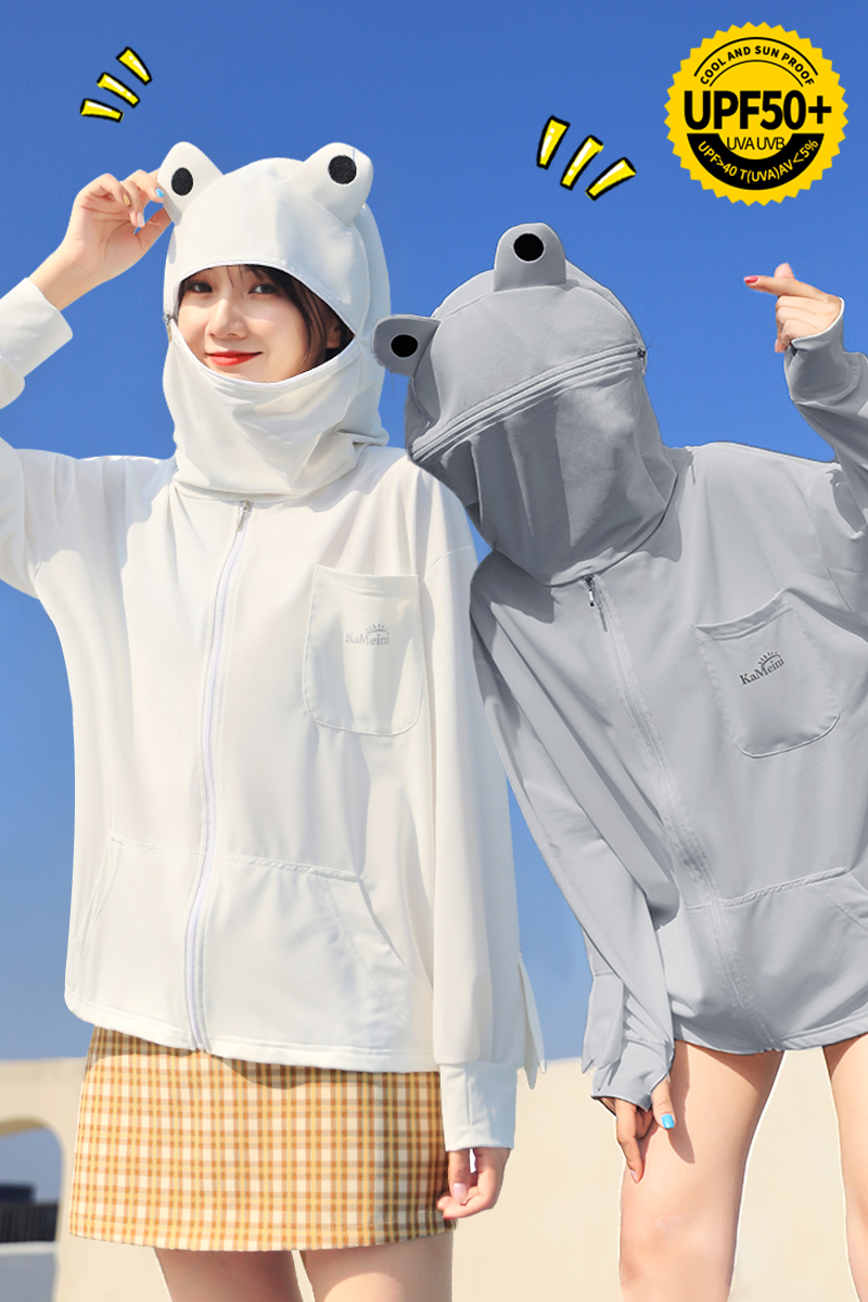 奧芭菲卡通可愛小青蛙防曬衣女紫外線薄冰絲防曬服外套夏季奧巴菲
