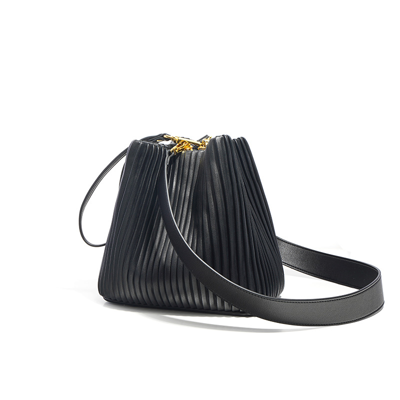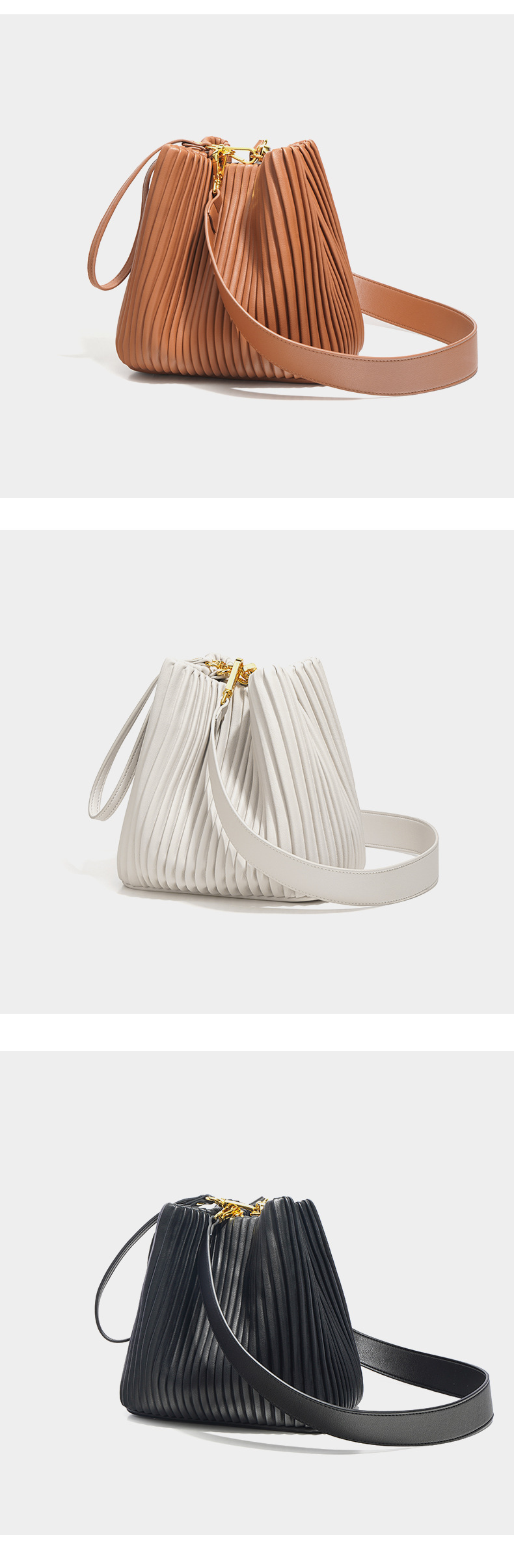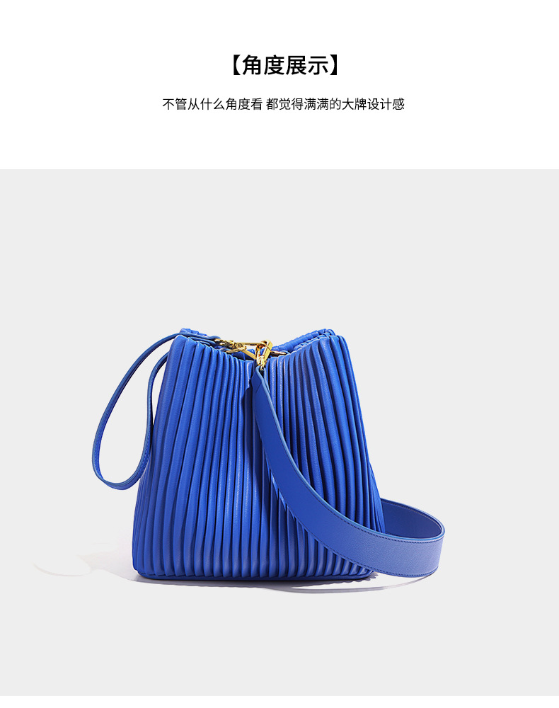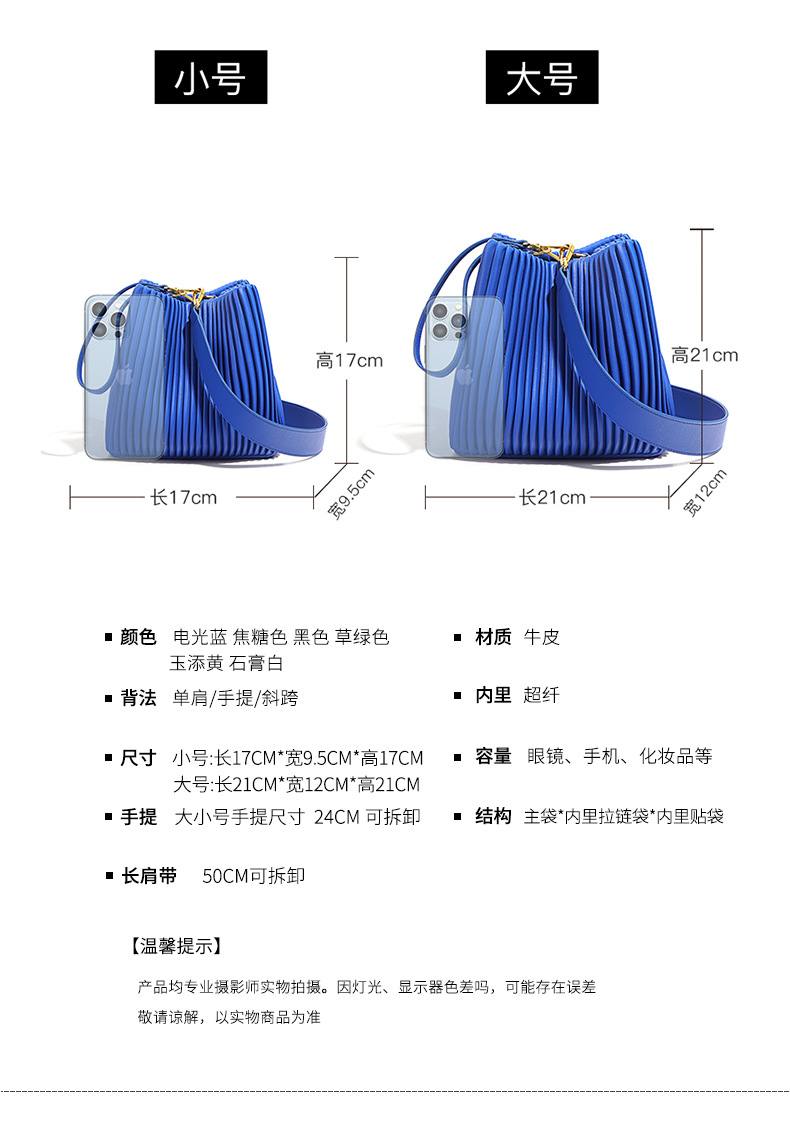 2024春夏新款水桶包褶皱牛皮大容量通勤高级感真皮单肩斜挎手提包