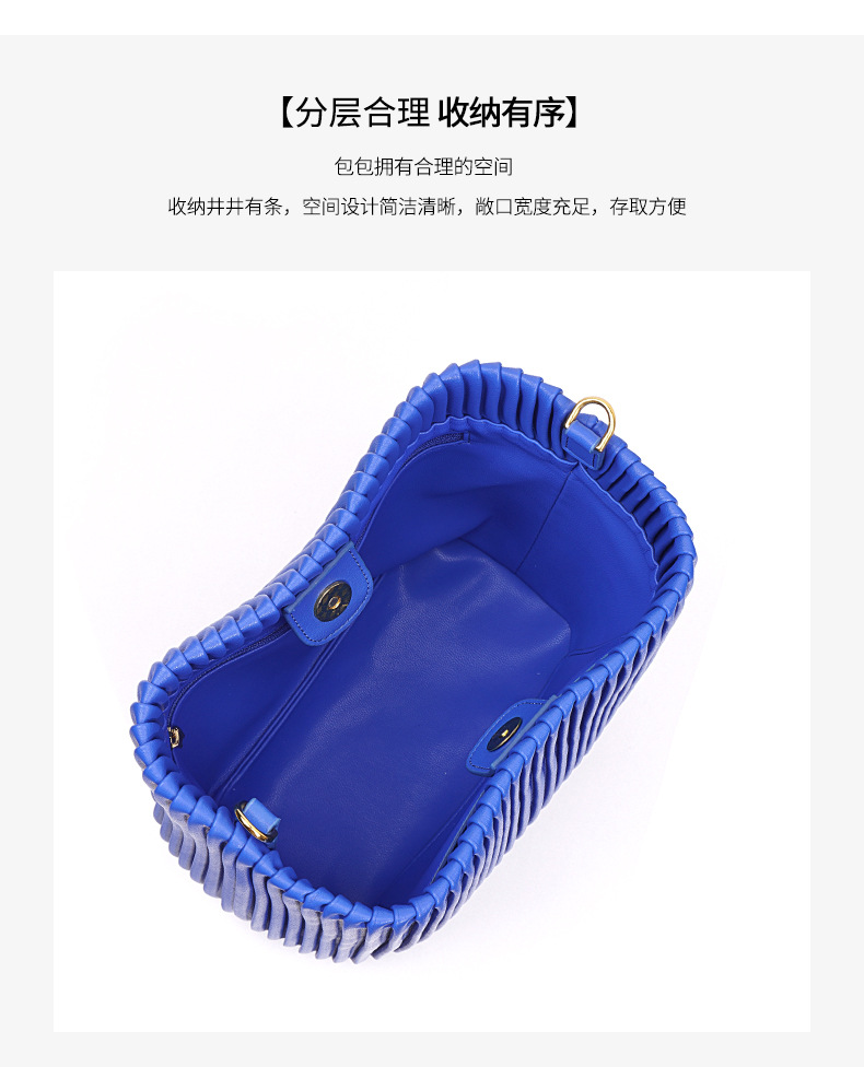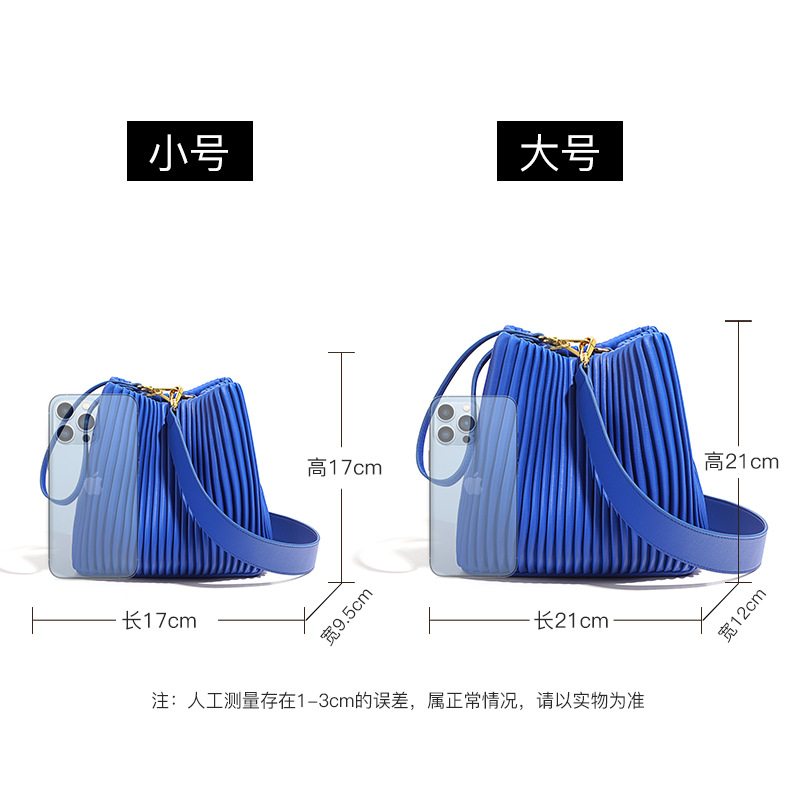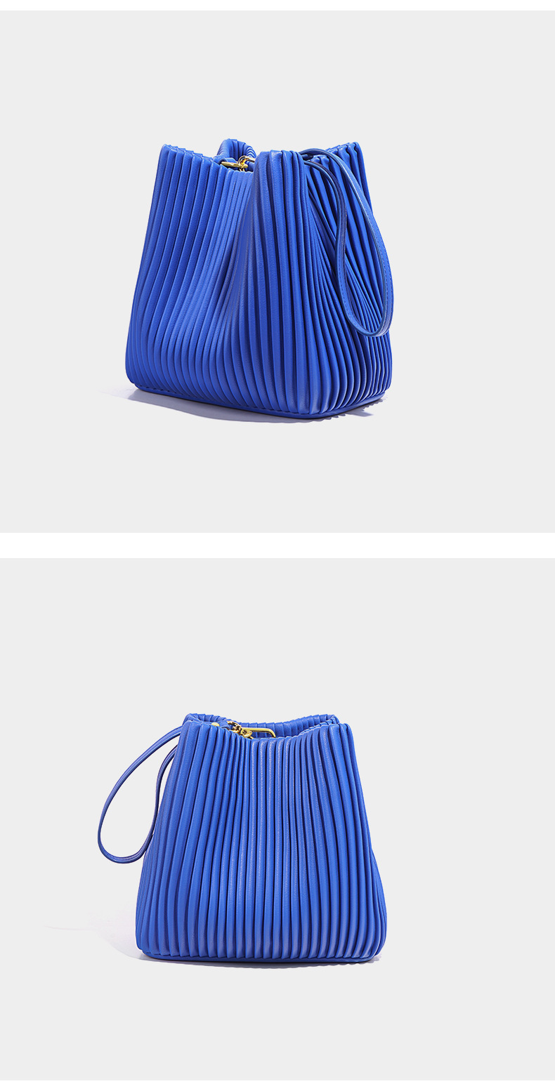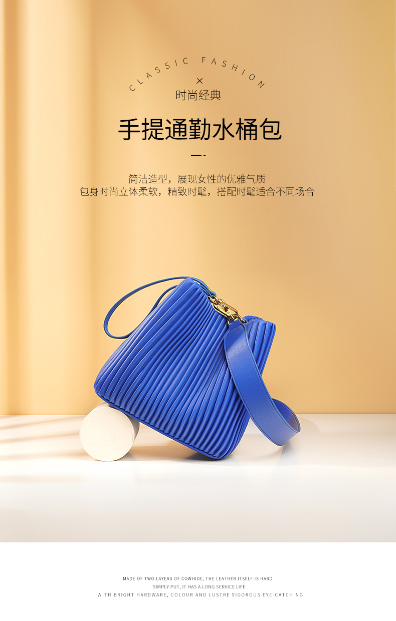 2024春夏新款水桶包褶皱牛皮大容量通勤高级感真皮单肩斜挎手提包
