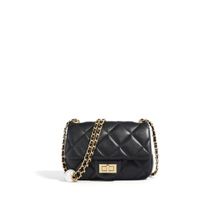 羊皮菱格双珍珠方胖子包2024新款真皮女包斜挎包春夏链条包高级感