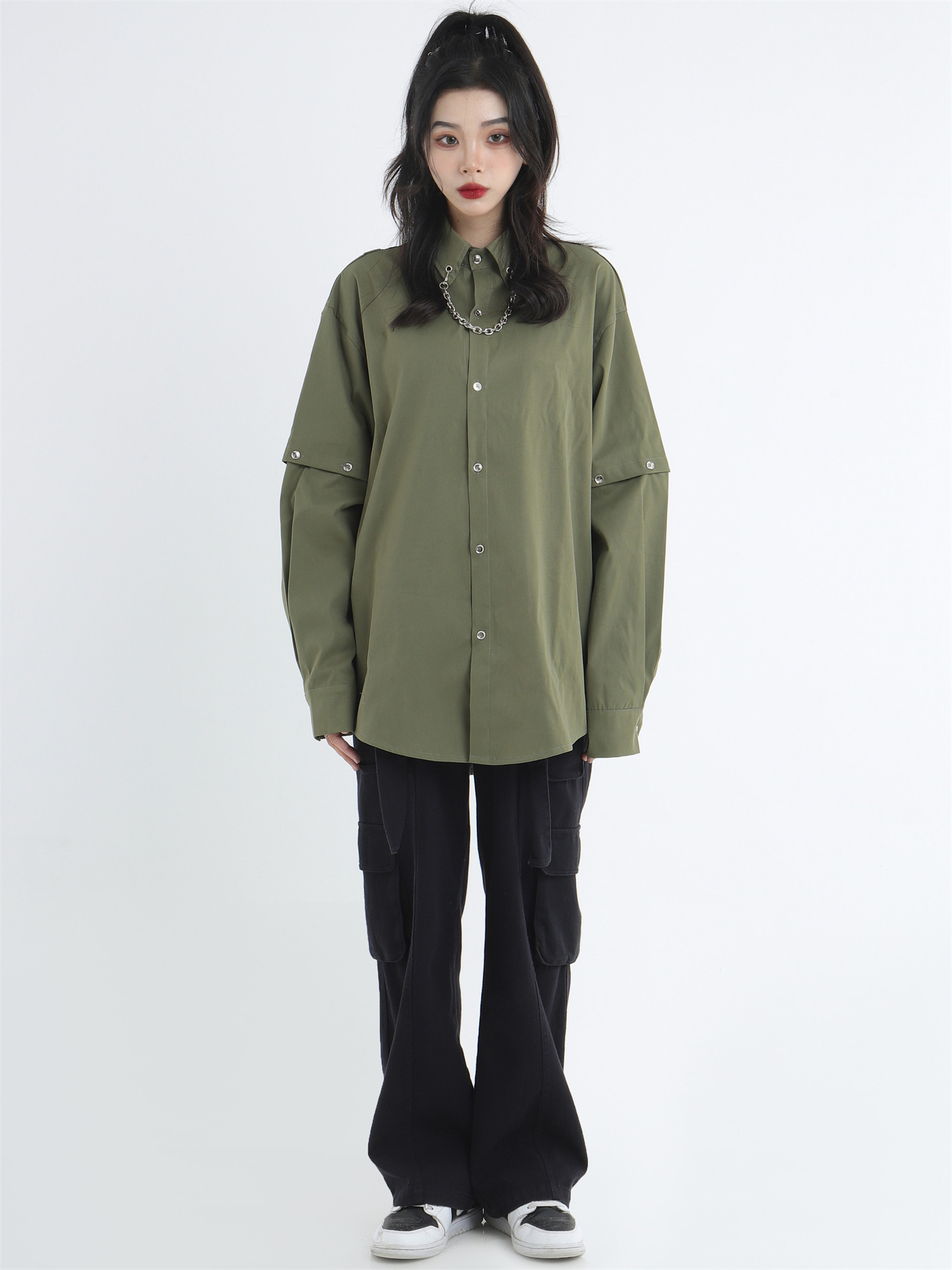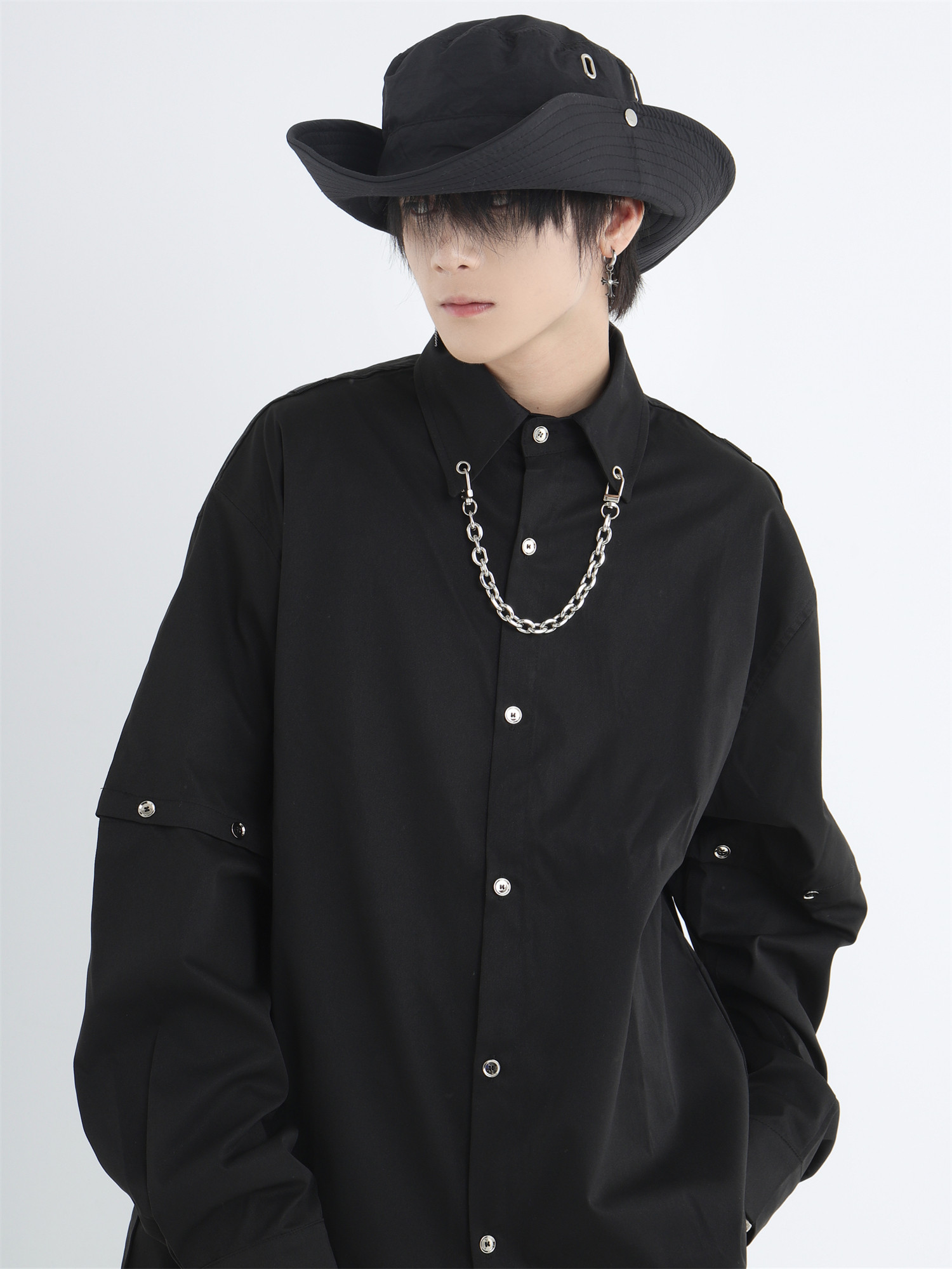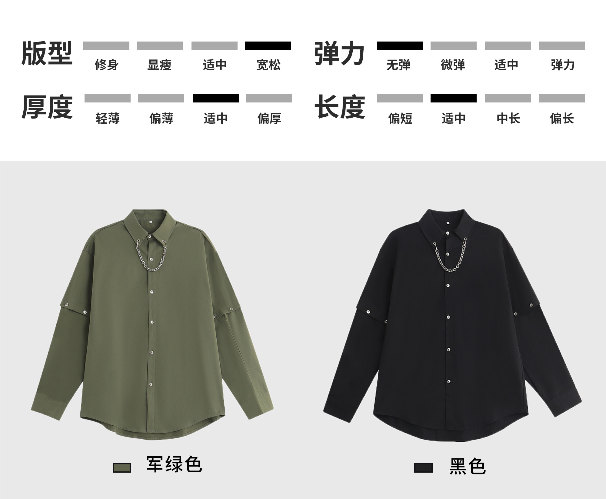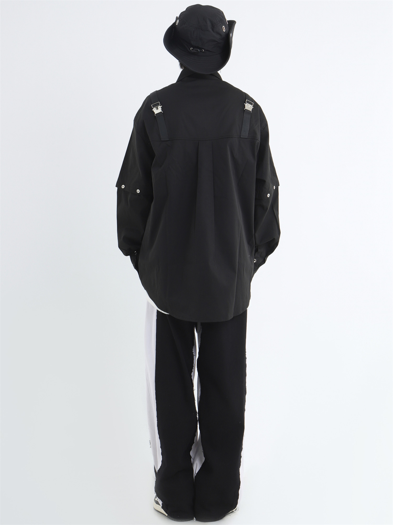 INSstudios 可拆卸兩穿工裝襯衫自制國潮情侶嘻哈美式長袖襯衫男