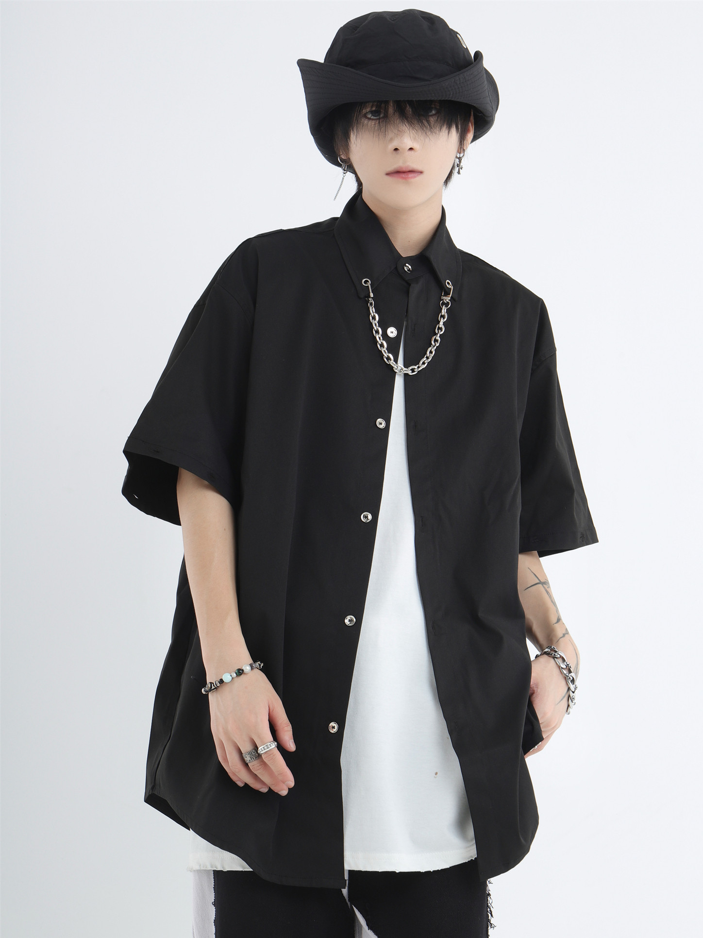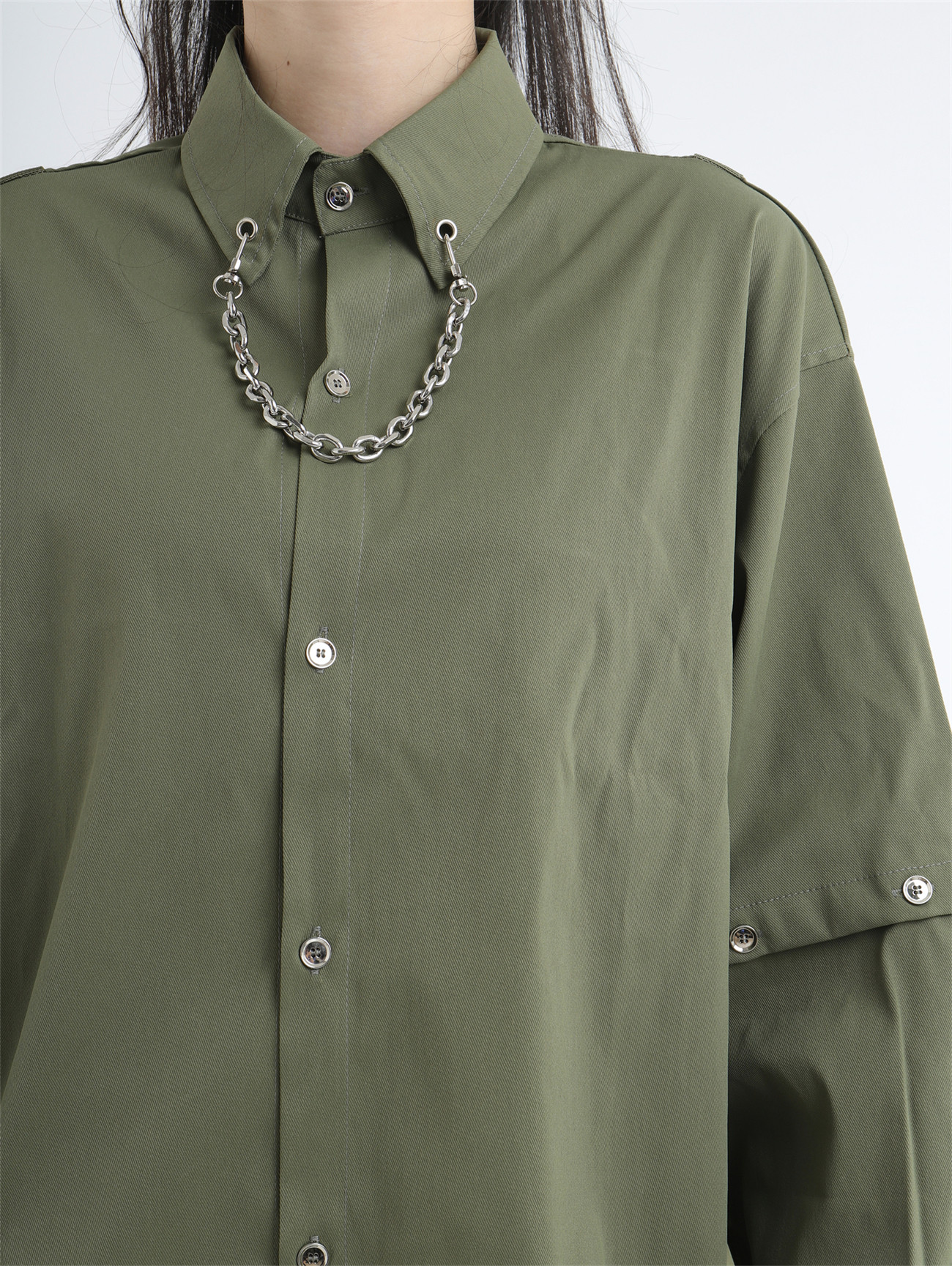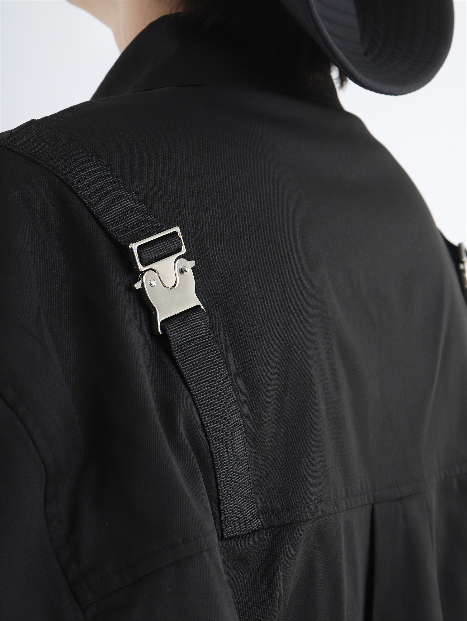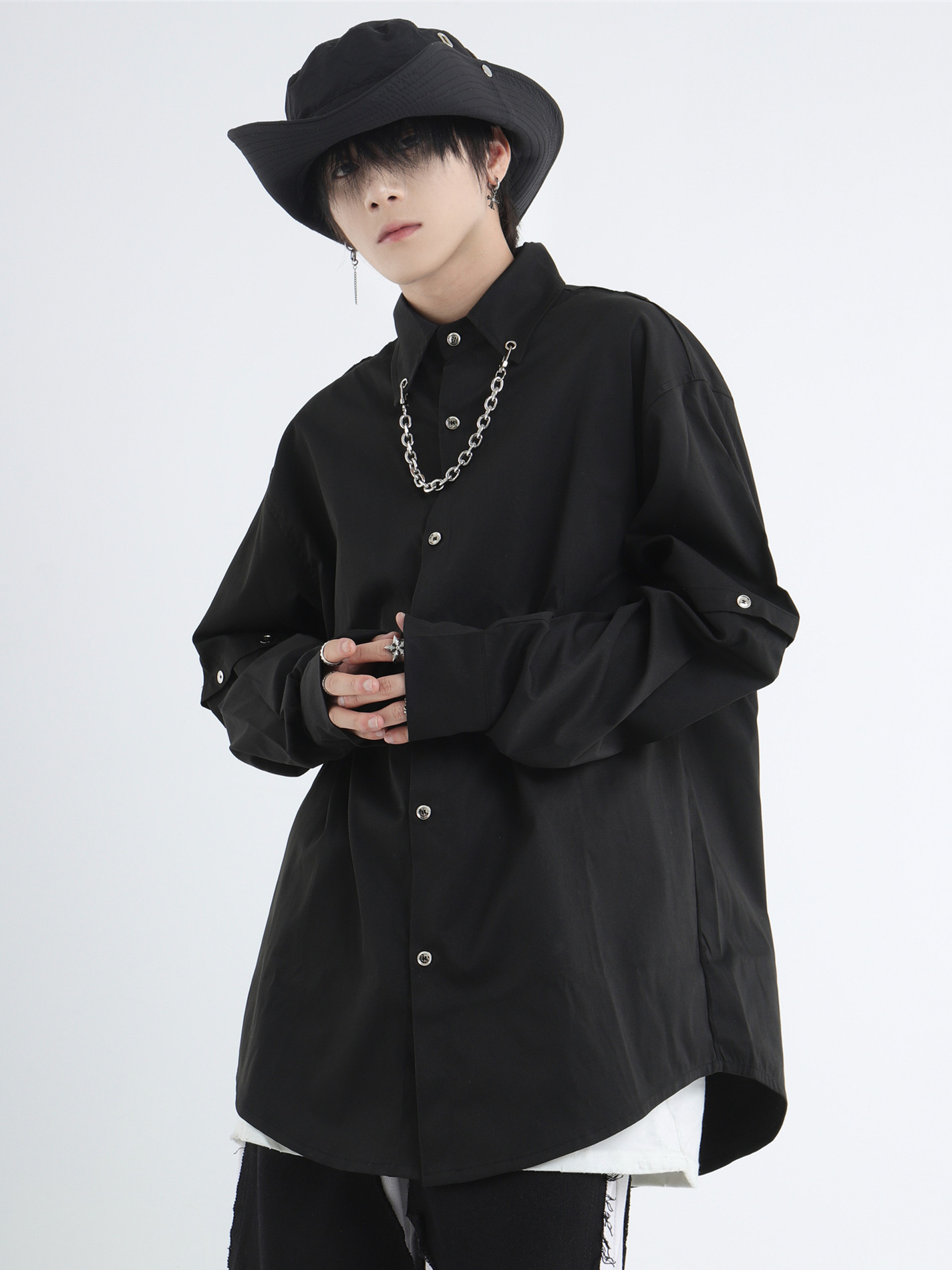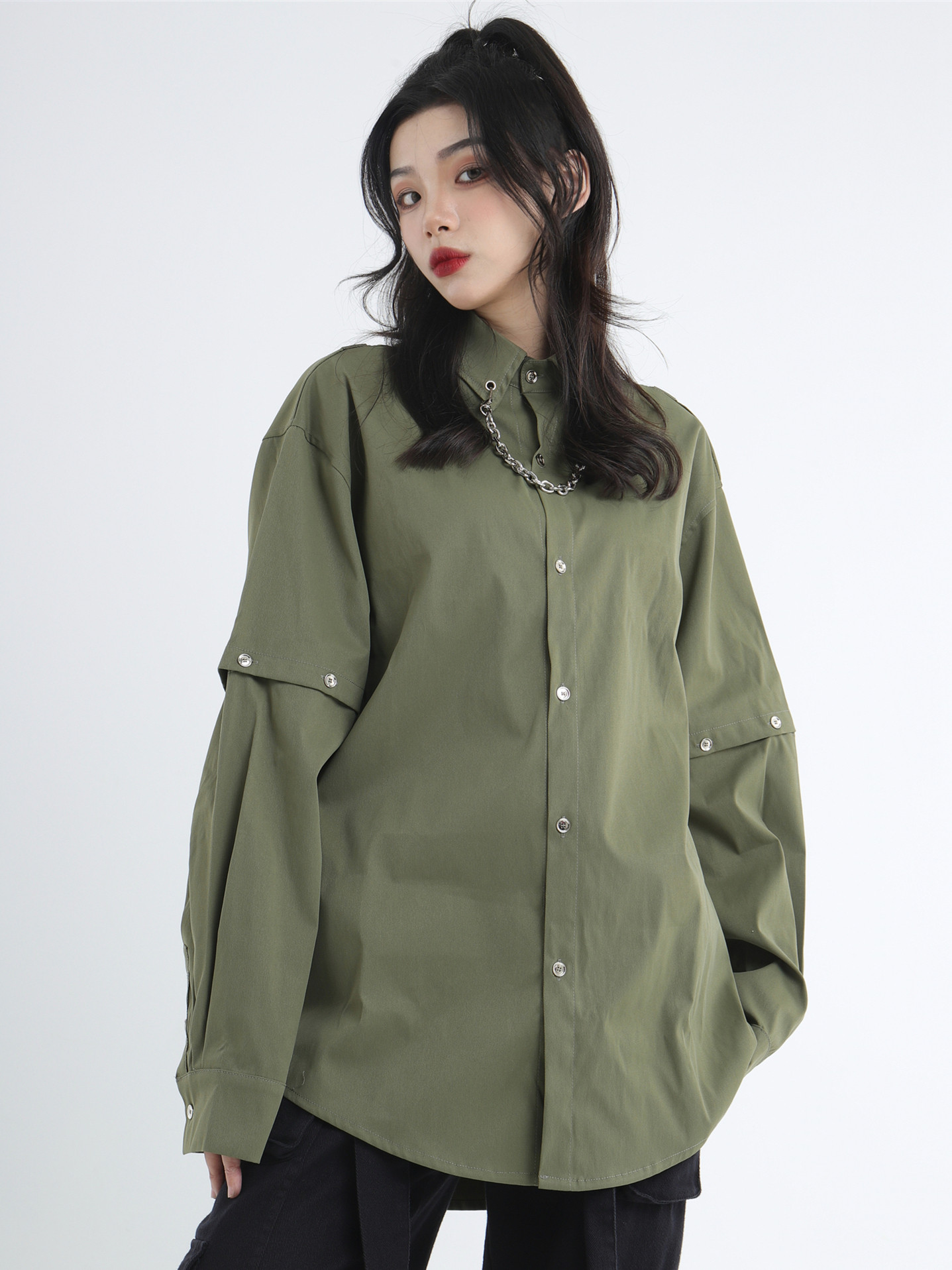 INSstudios 可拆卸兩穿工裝襯衫自制國潮情侶嘻哈美式長袖襯衫男