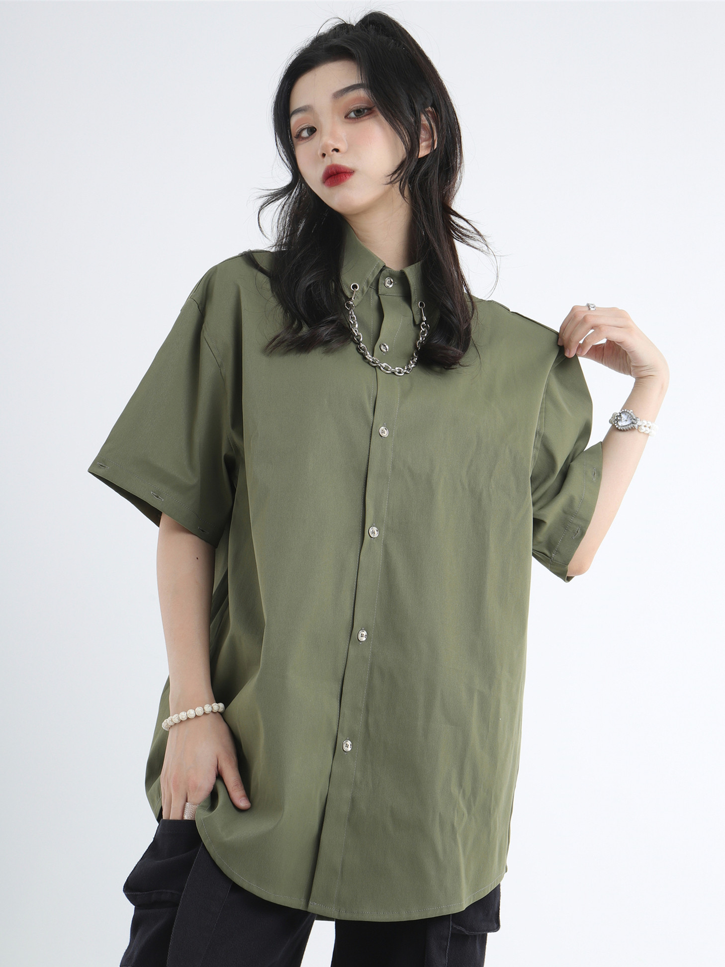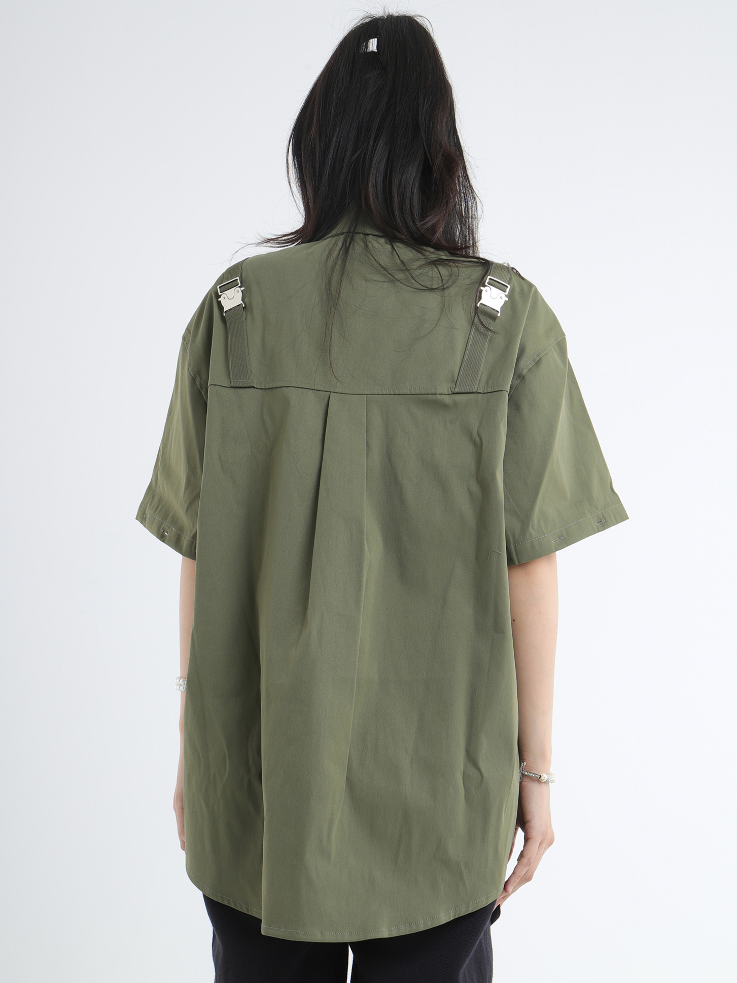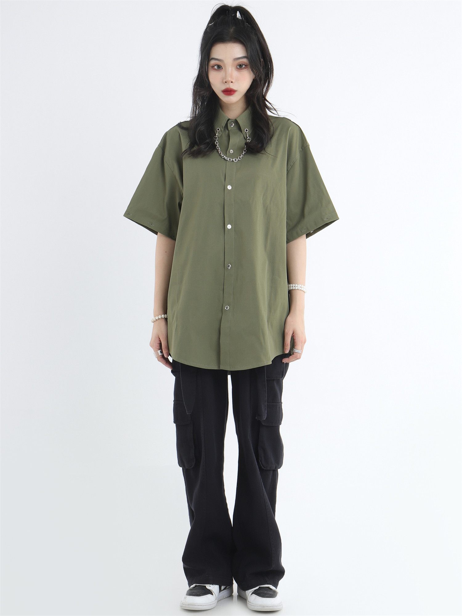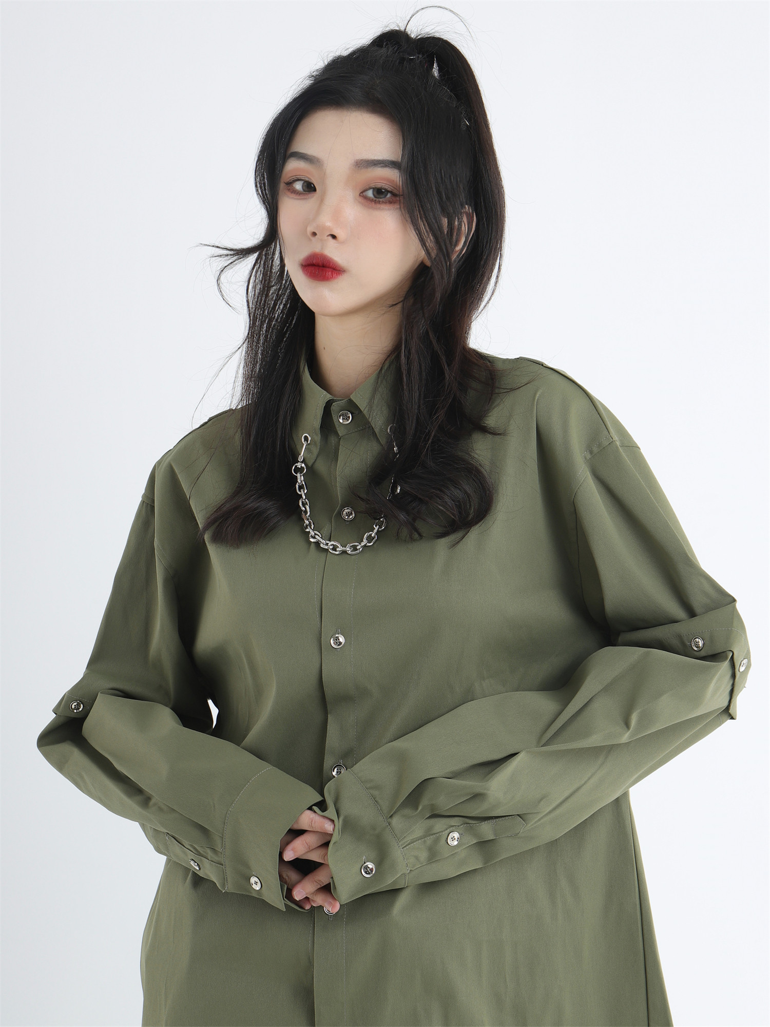 INSstudios 可拆卸兩穿工裝襯衫自制國潮情侶嘻哈美式長袖襯衫男