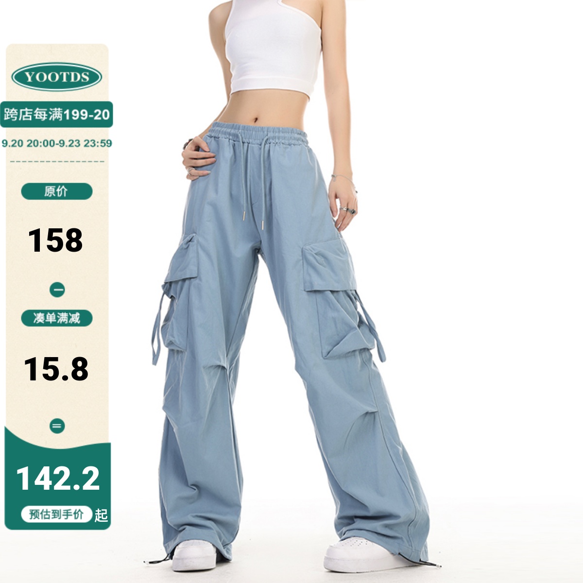 YOOTDS美式復古辣妹工裝褲女百搭秋冬寬鬆街頭嘻哈hiphop闊腿長褲