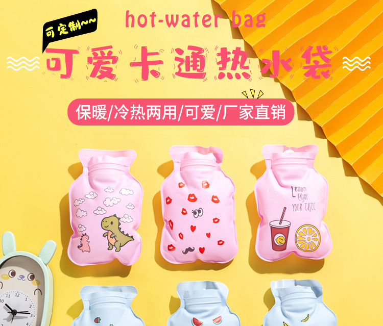 可爱注水热水袋批发卡通pvc暖手宝印刷logo礼品两用小型暖水袋