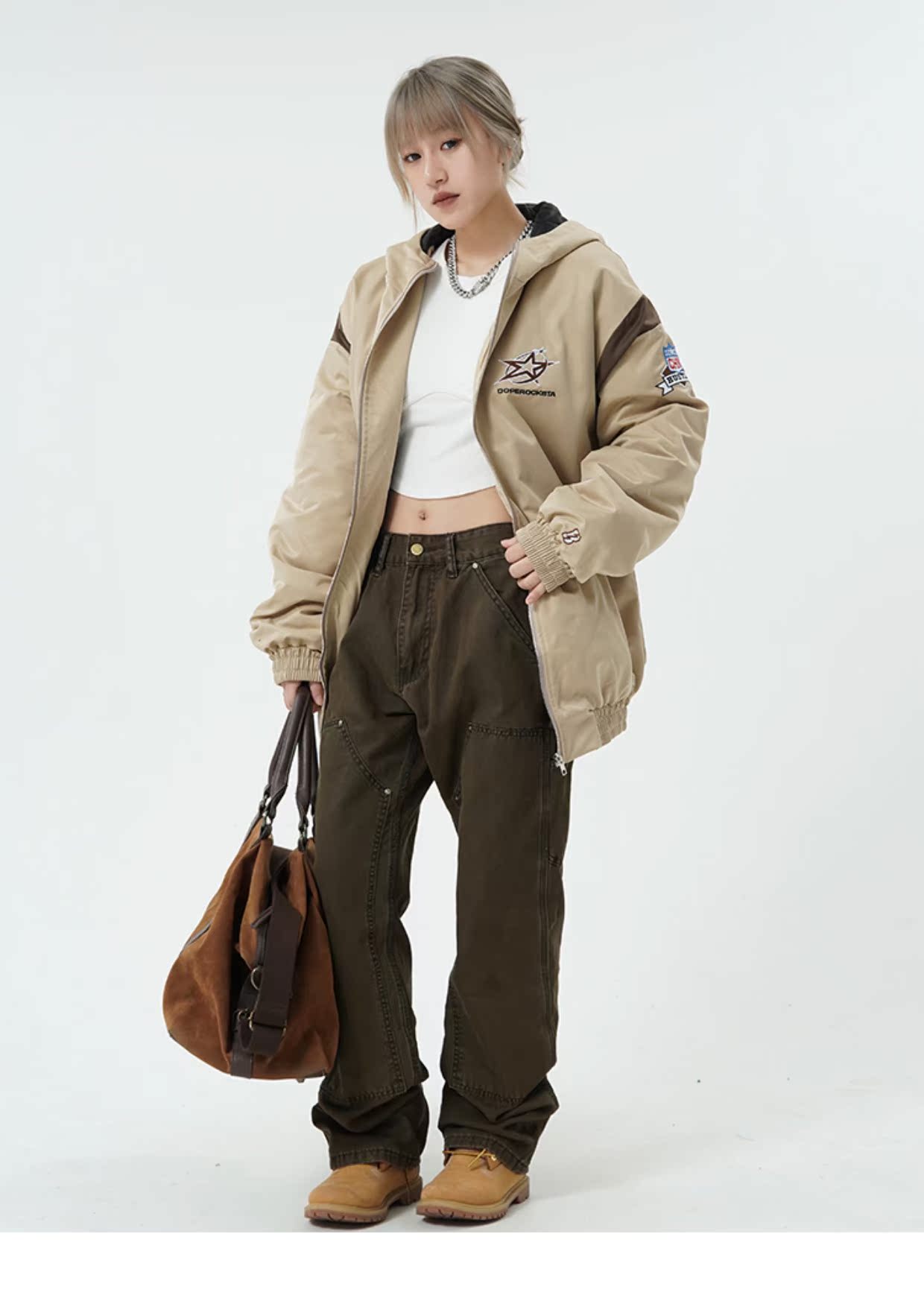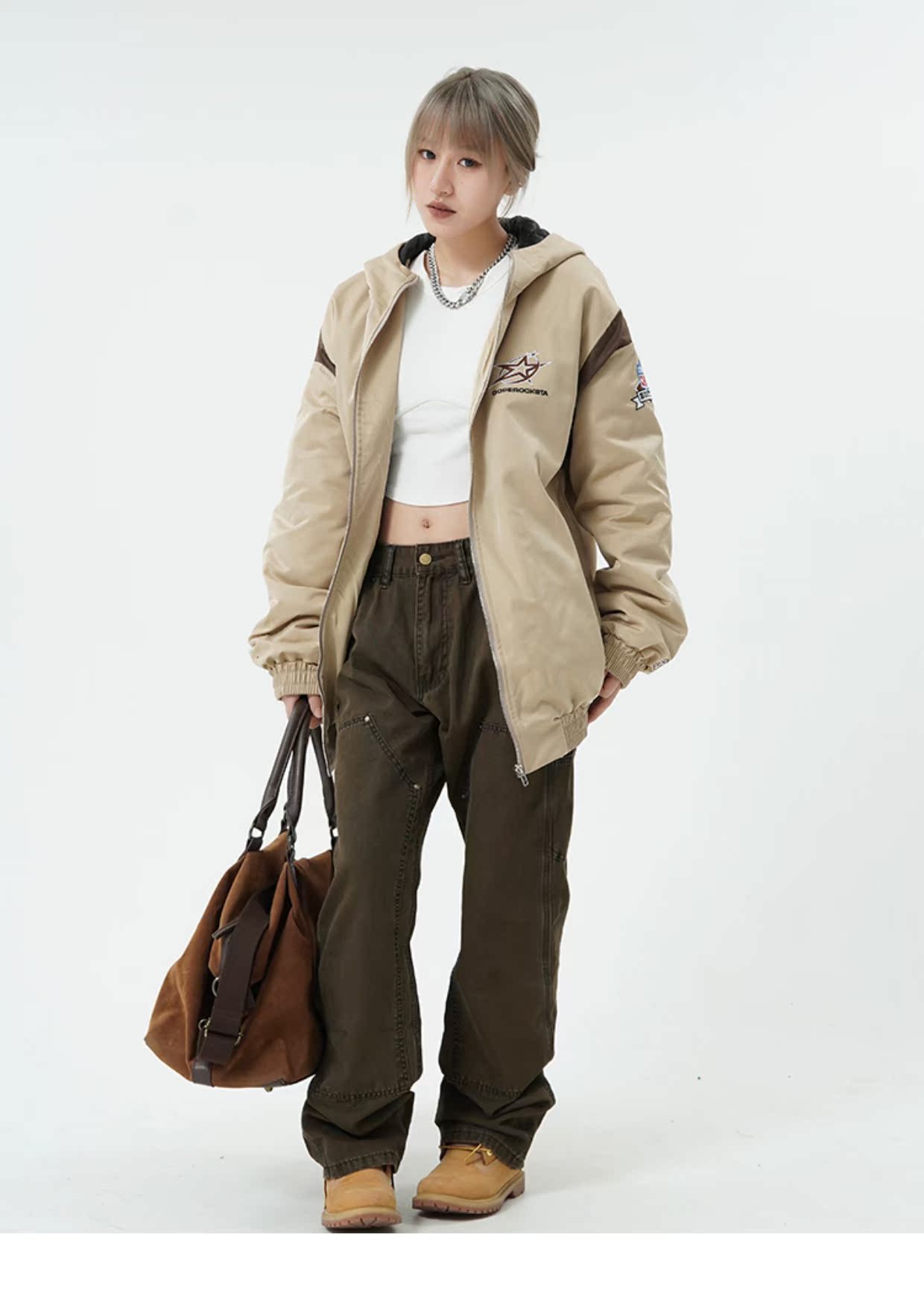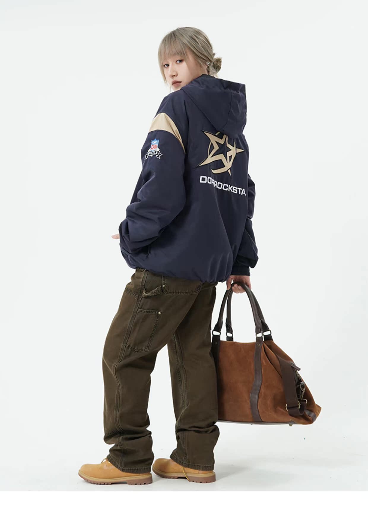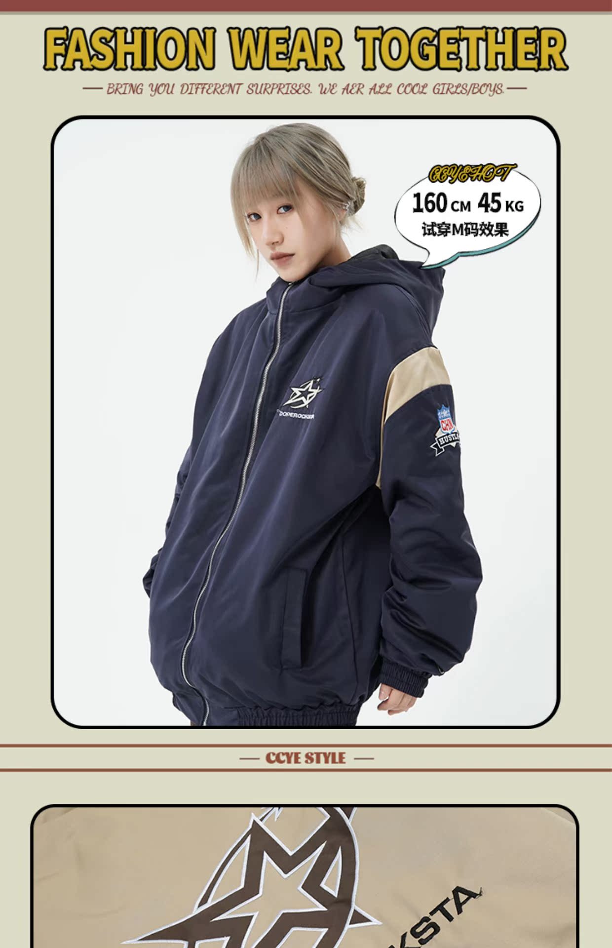 CCYE原創設計美式街頭加厚連帽鋪棉外套棉衣男女寬鬆顯瘦不撞款外套潮