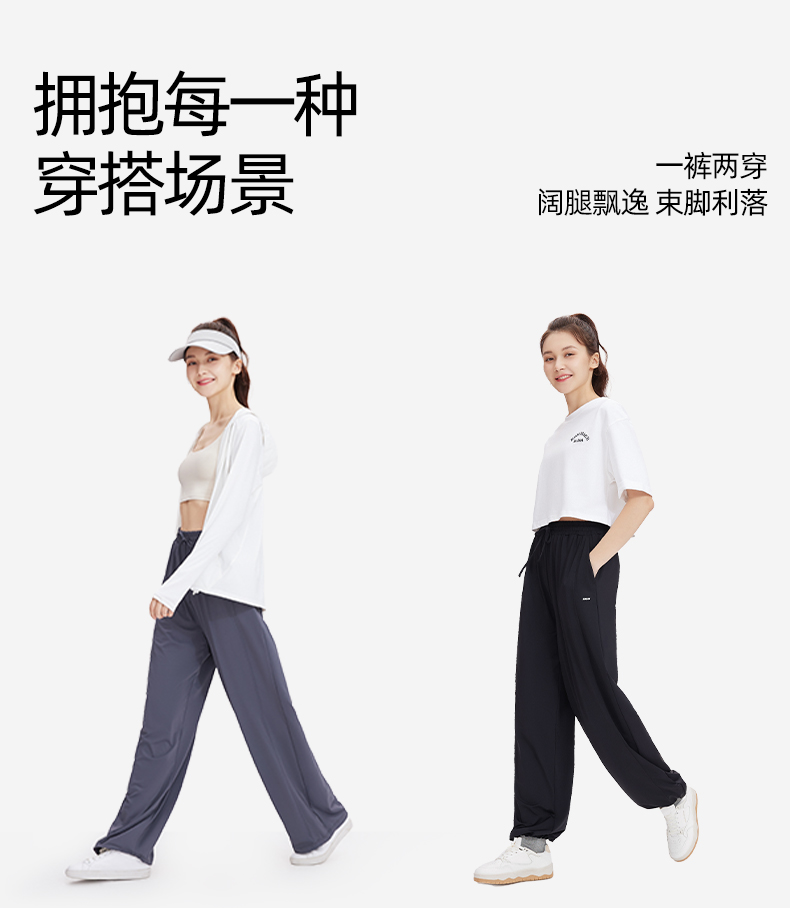 SINSIN闊腿褲女速乾運動褲夏季薄款冰絲防曬寬鬆顯瘦涼涼休閒長褲