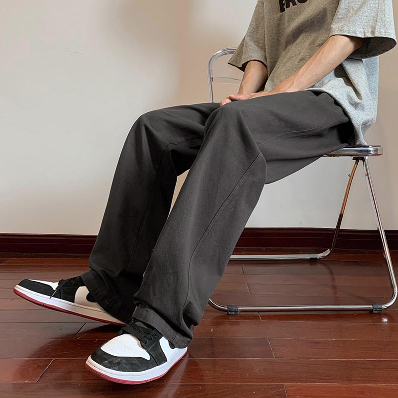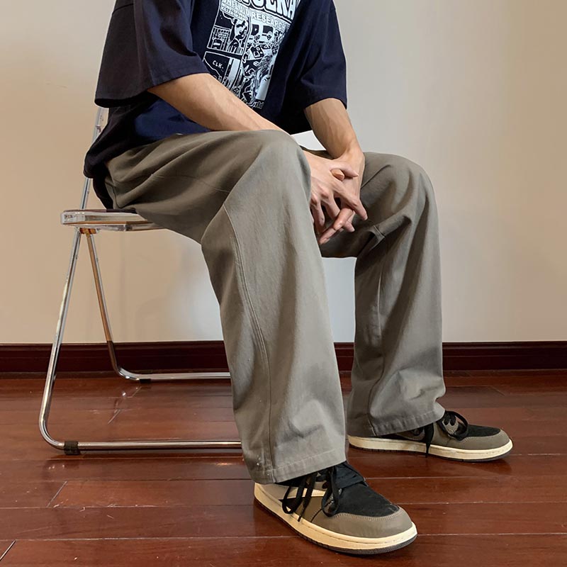 藏青色工裝褲女春秋日系oldschool褲子美式復古鹽系直筒休閒長褲