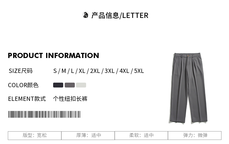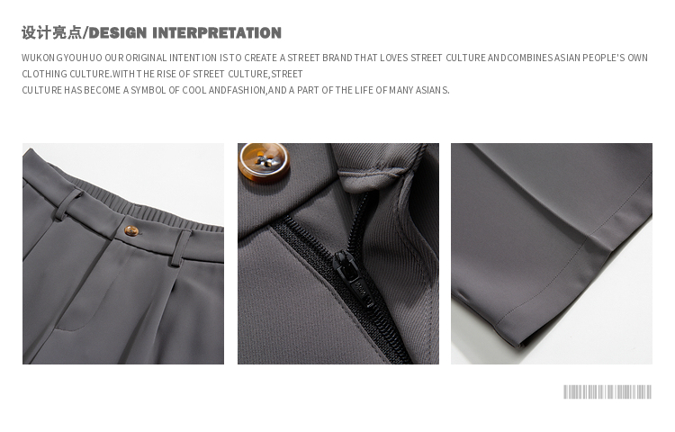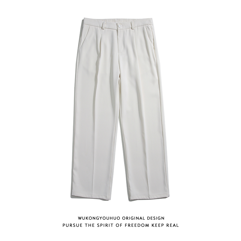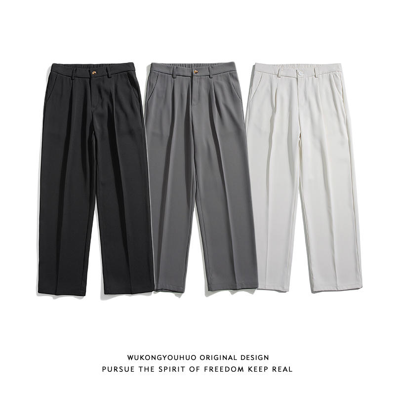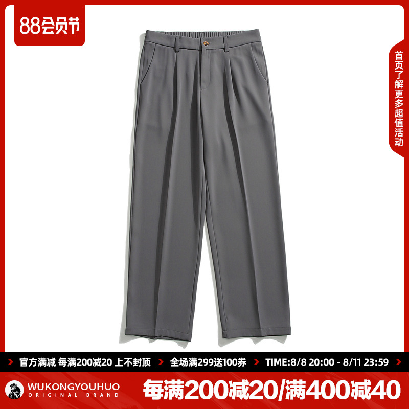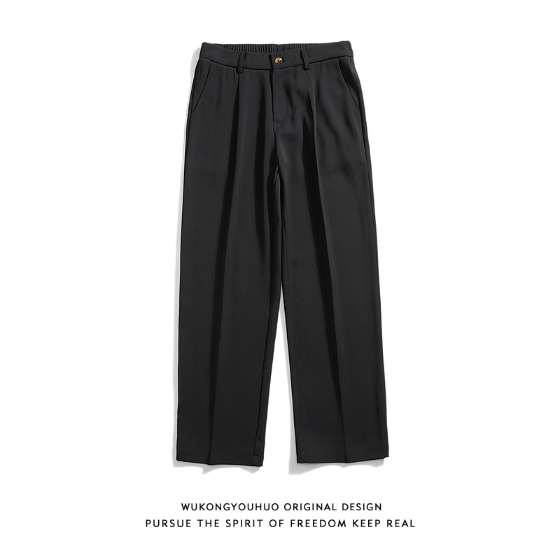 悟空有貨復古純色百搭垂感西褲男潮牌寬鬆百搭直筒褲子黑色休閒褲