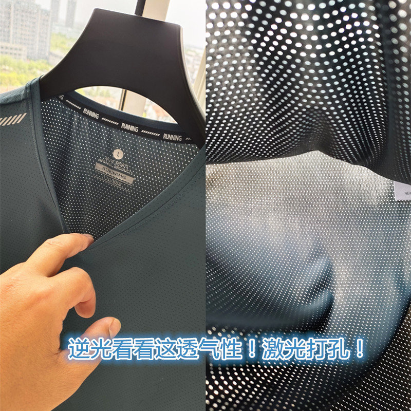 全身激光打孔!抗皺免打理冰絲T恤!運動男士夏季圓領短袖速乾衣