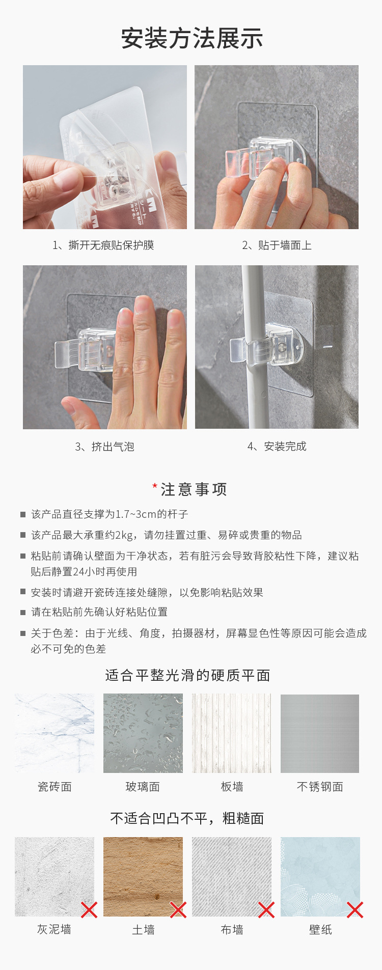 颜色 白色-粘胶款,透明-无痕贴款