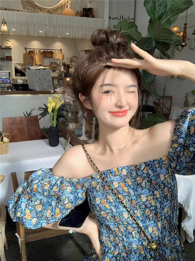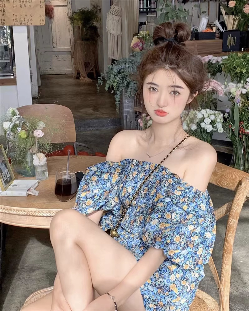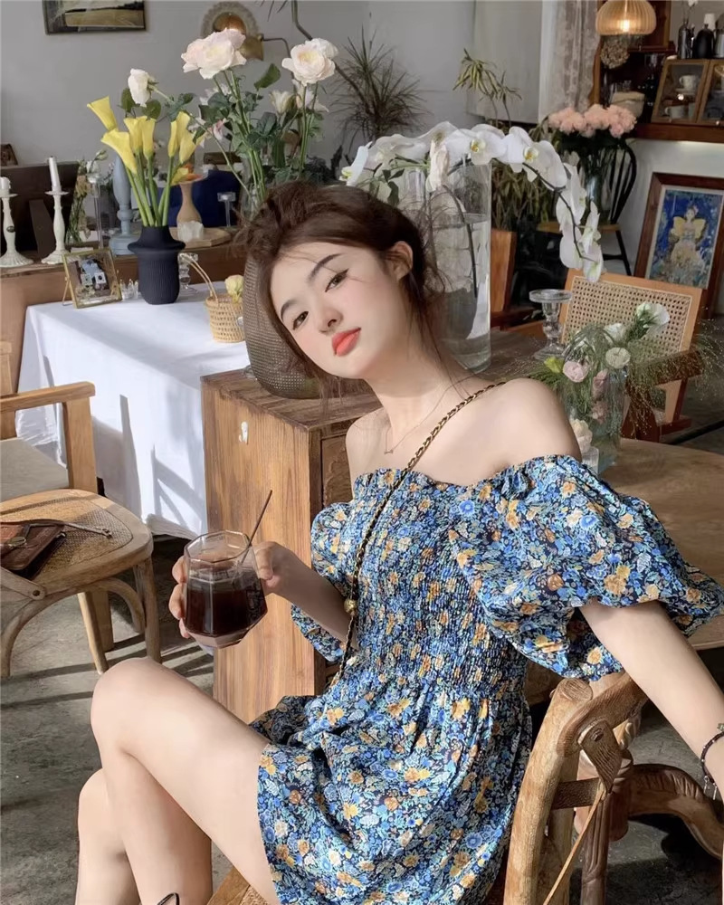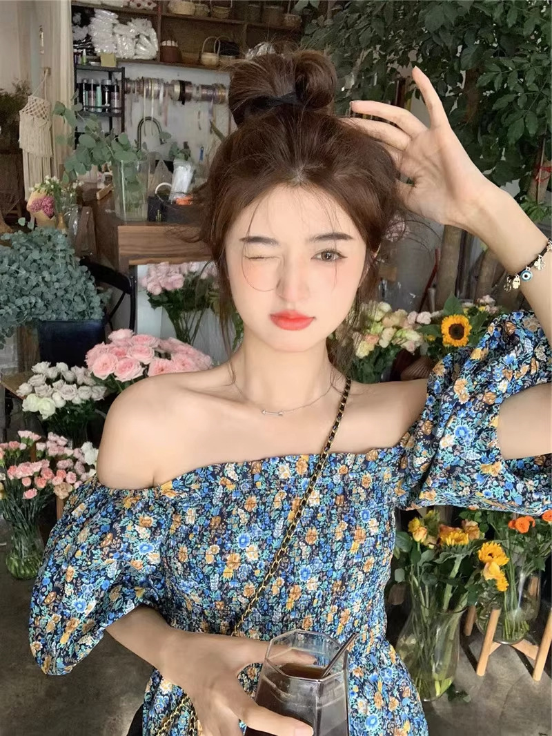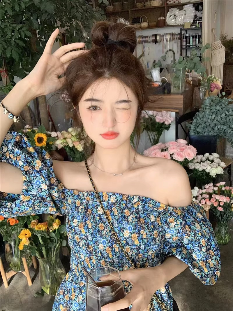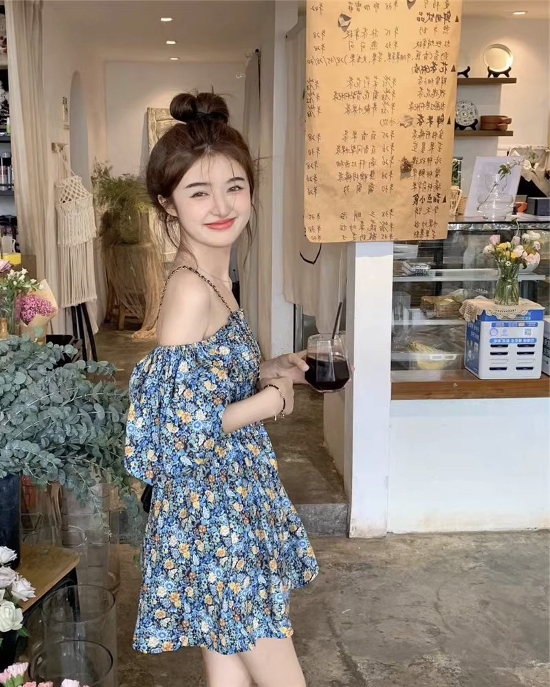 矮小个子时尚套装夏一字肩收腰连衣裤裙短款碎花连体裤休闲两件套
