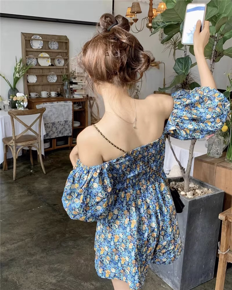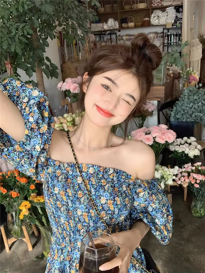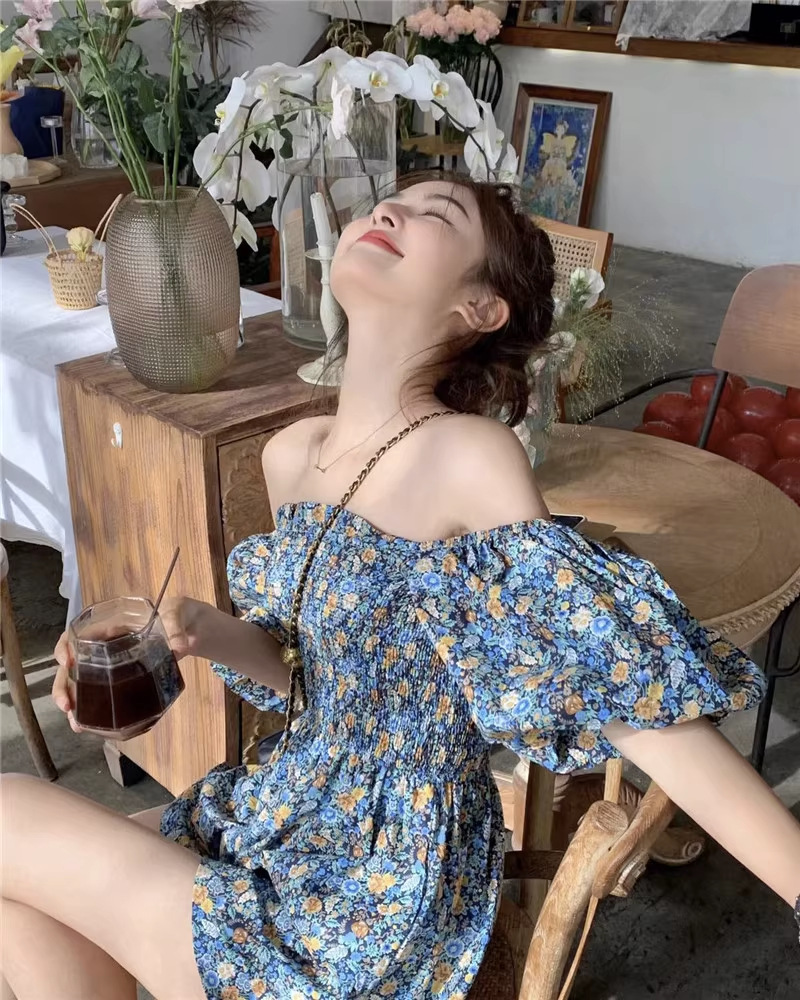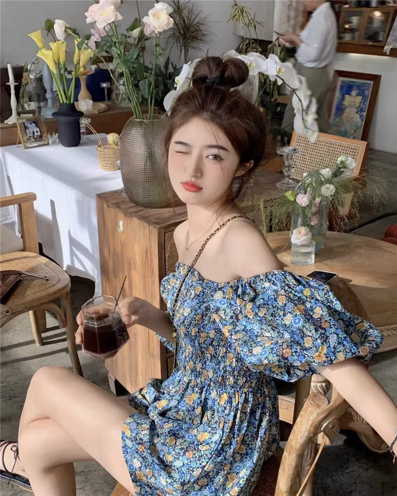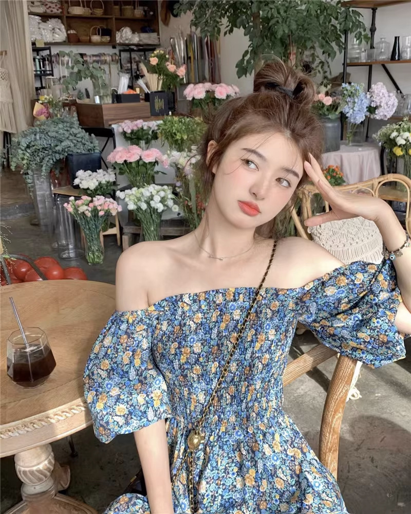 矮小个子时尚套装夏一字肩收腰连衣裤裙短款碎花连体裤休闲两件套