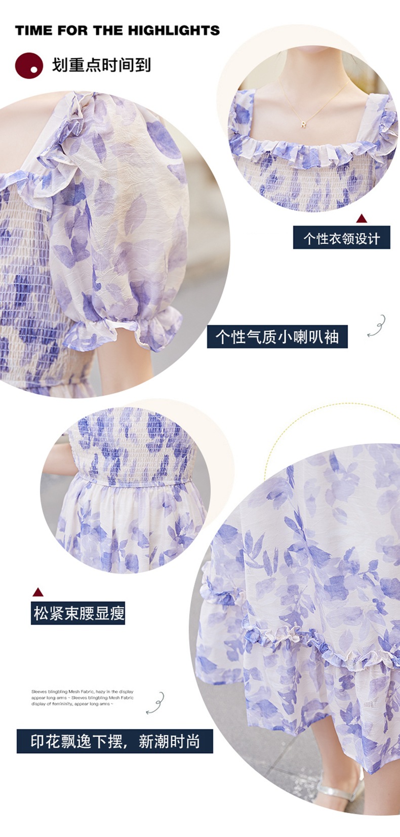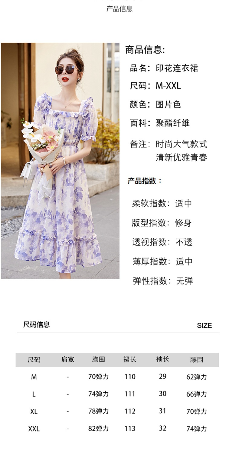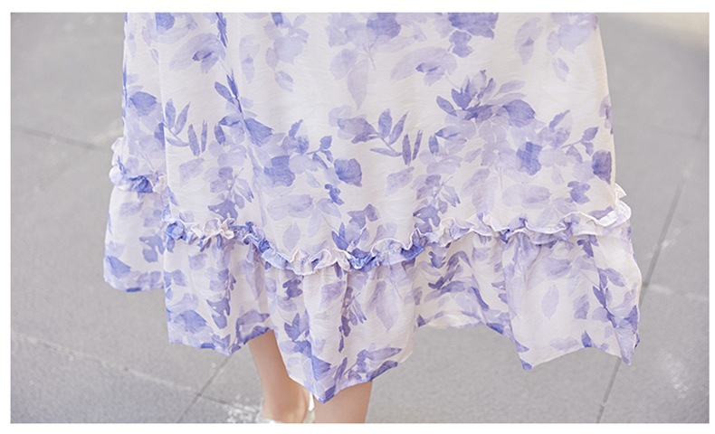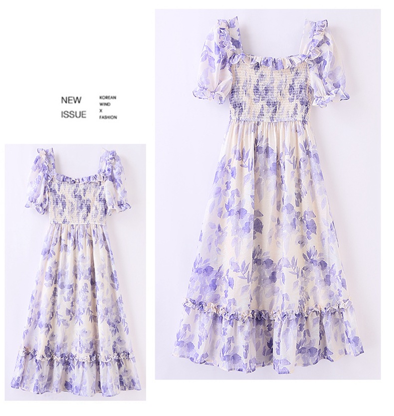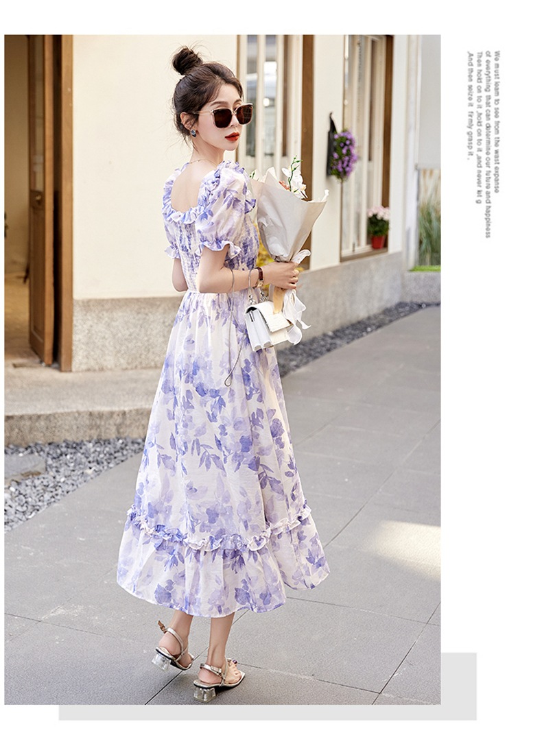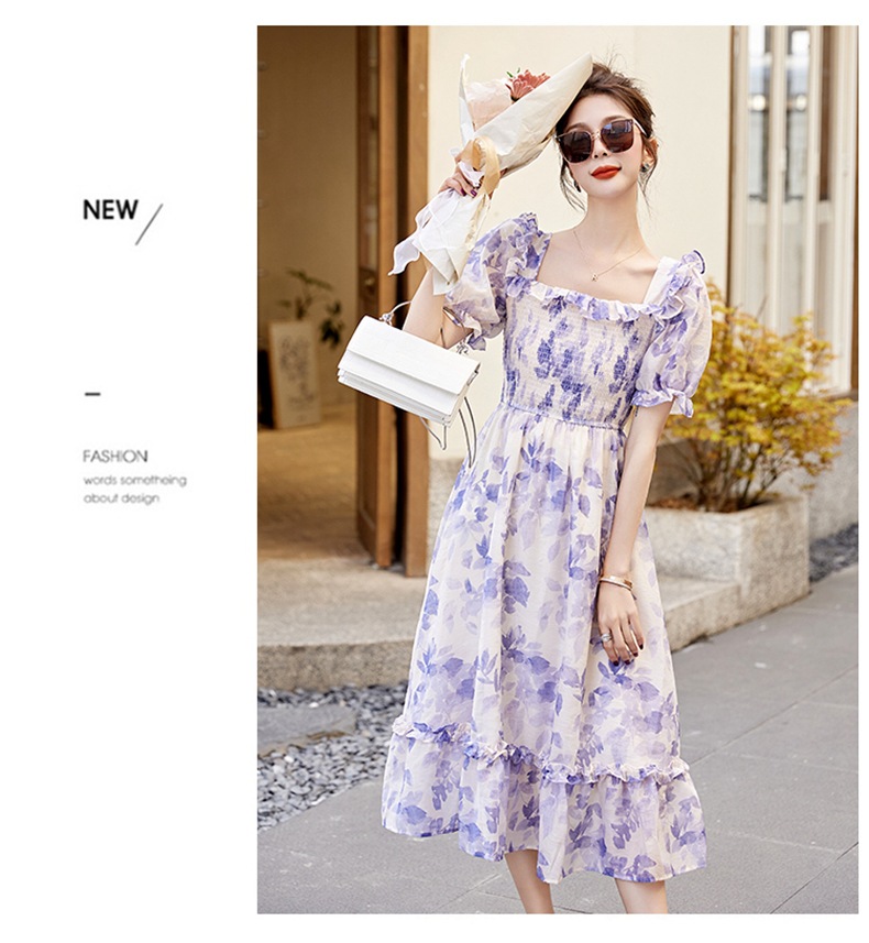 水墨雪纺碎花泡泡袖连衣裙女中长款夏2023新款法式很仙过膝字长裙