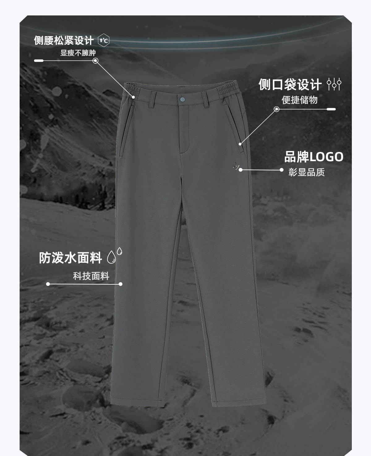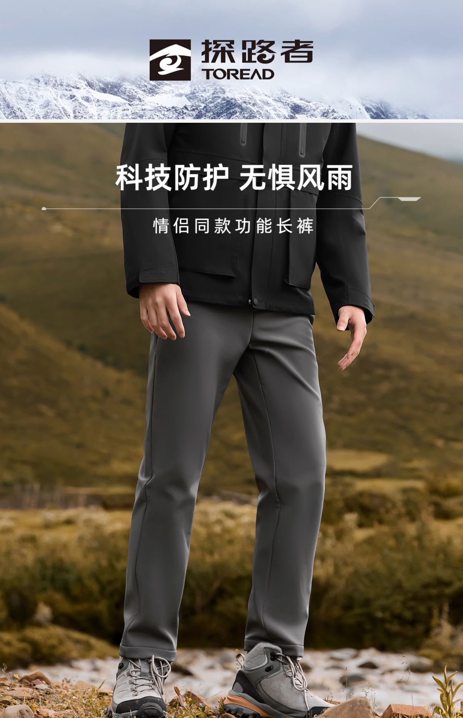 探路者衝鋒褲秋冬軟殼褲男女戶外衝鋒褲防風防雨登山男褲加絨加厚
