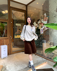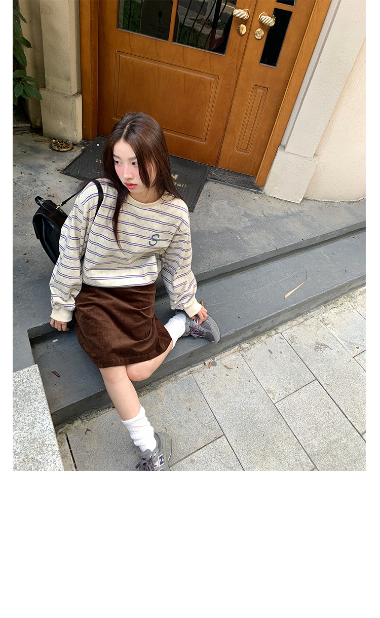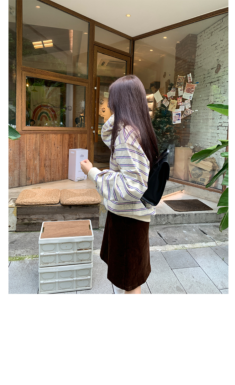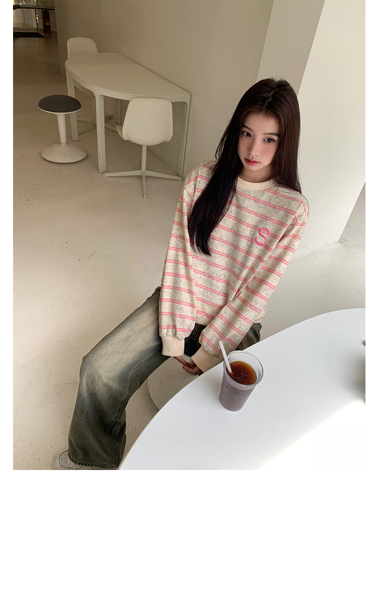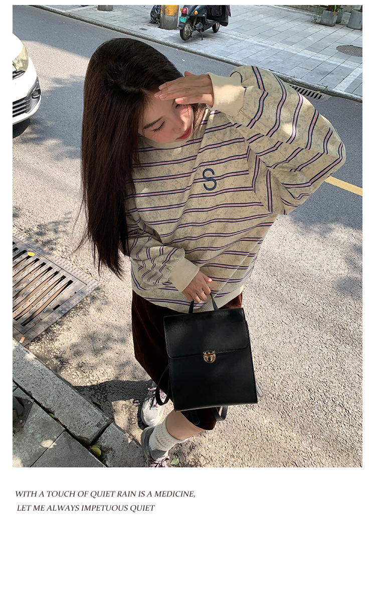 馨幫幫自制長袖上衣設計感2023早秋新款慵懶風復古寬鬆條紋休閒上衣女