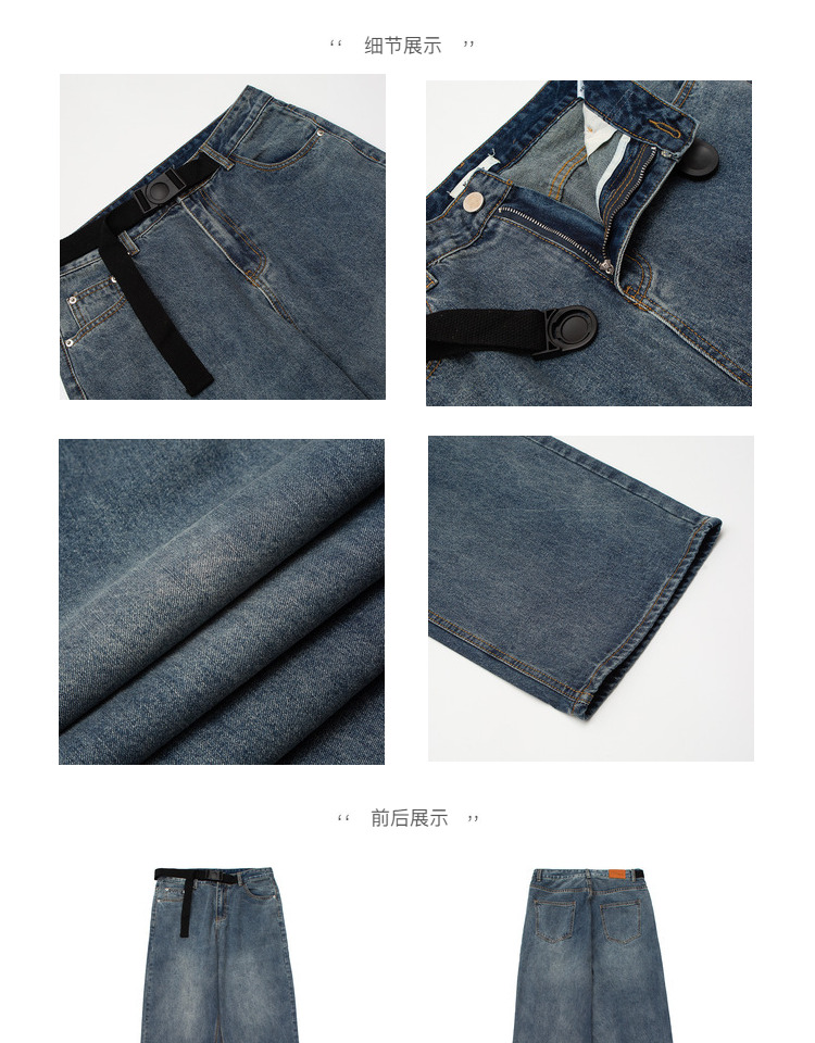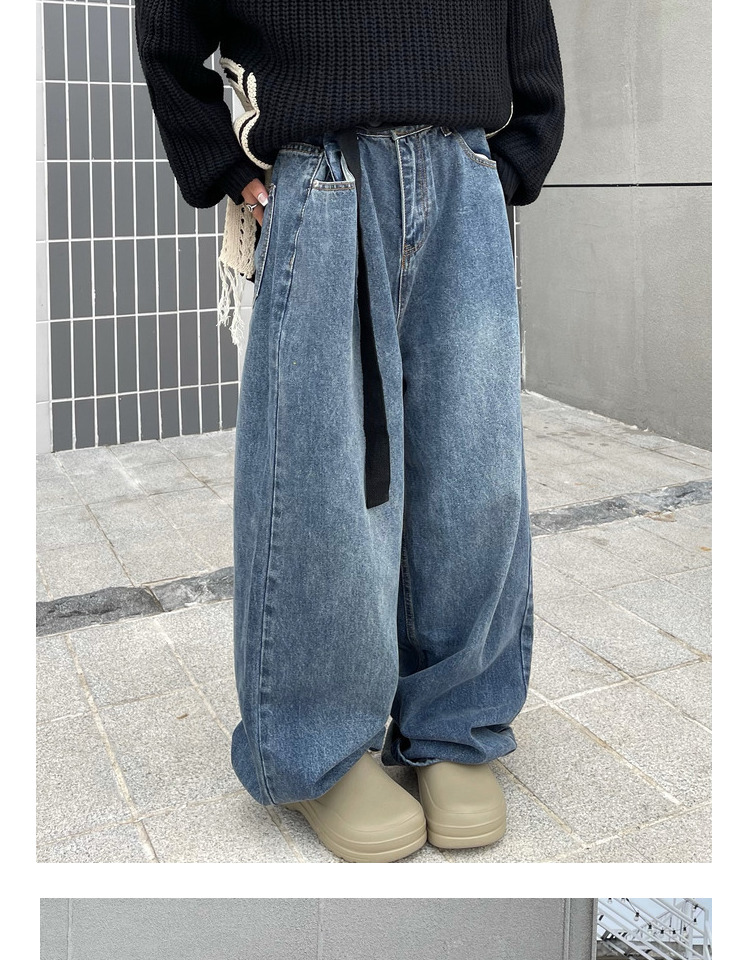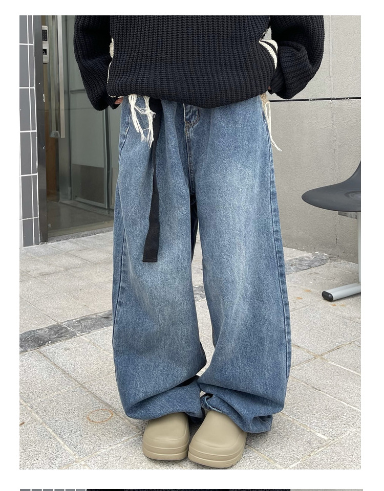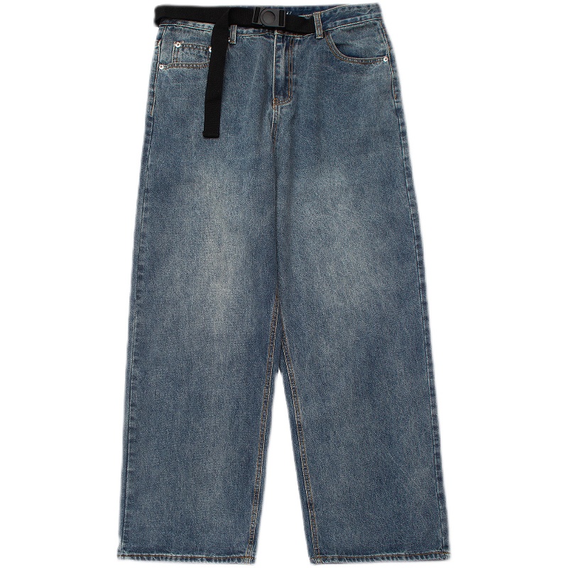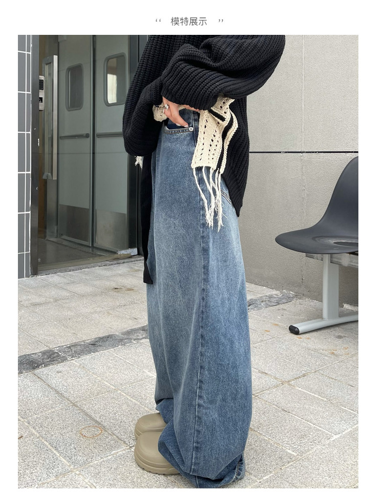 ZHL STUDIO原創復古水洗日韓闊腿牛仔褲男女寬鬆墜感直筒拖地長褲