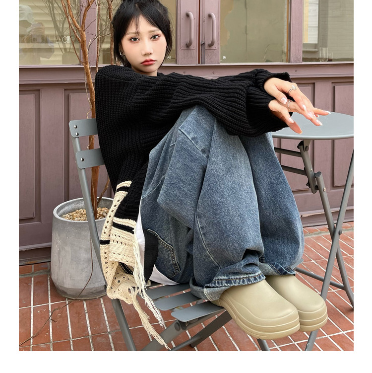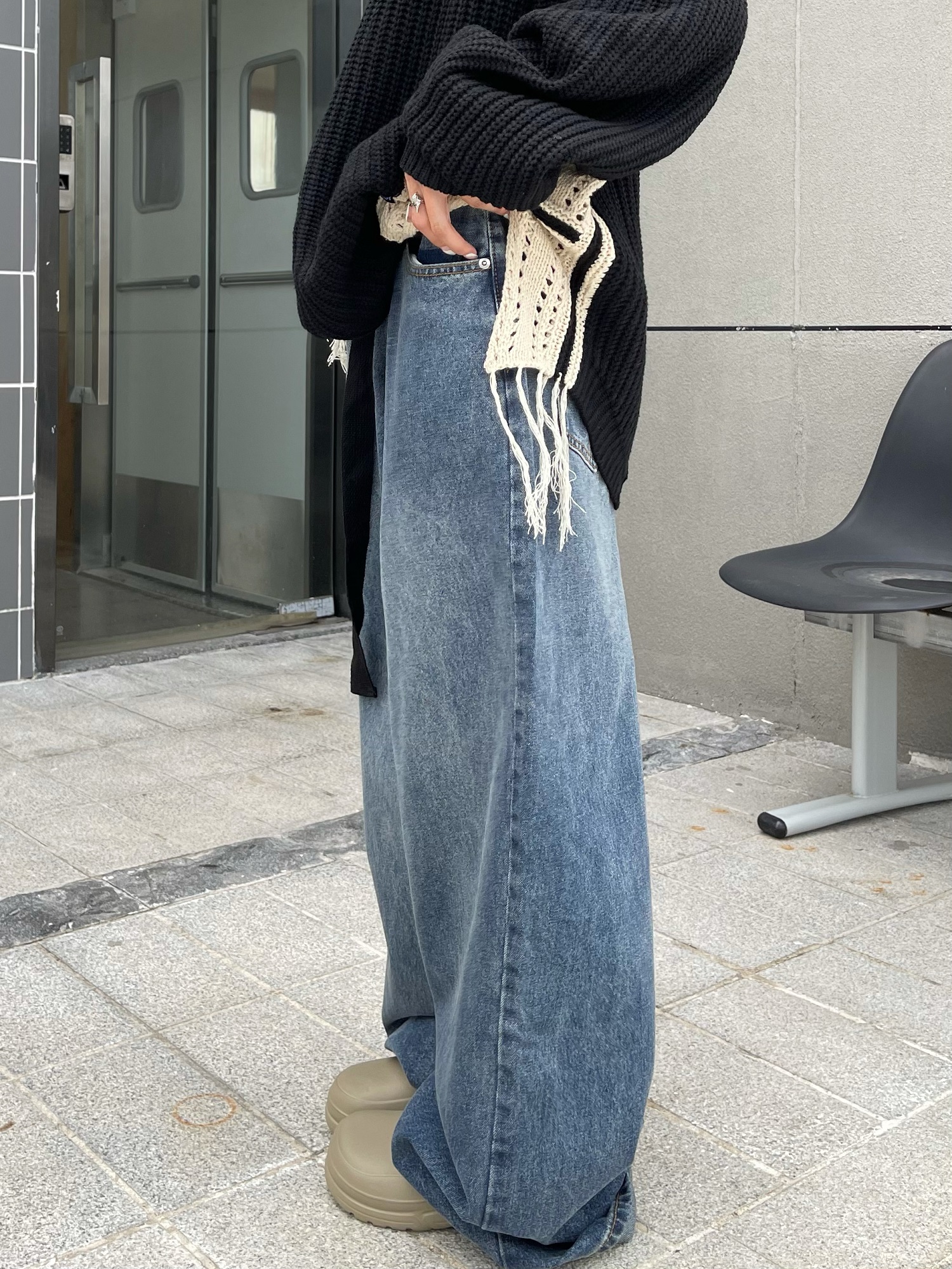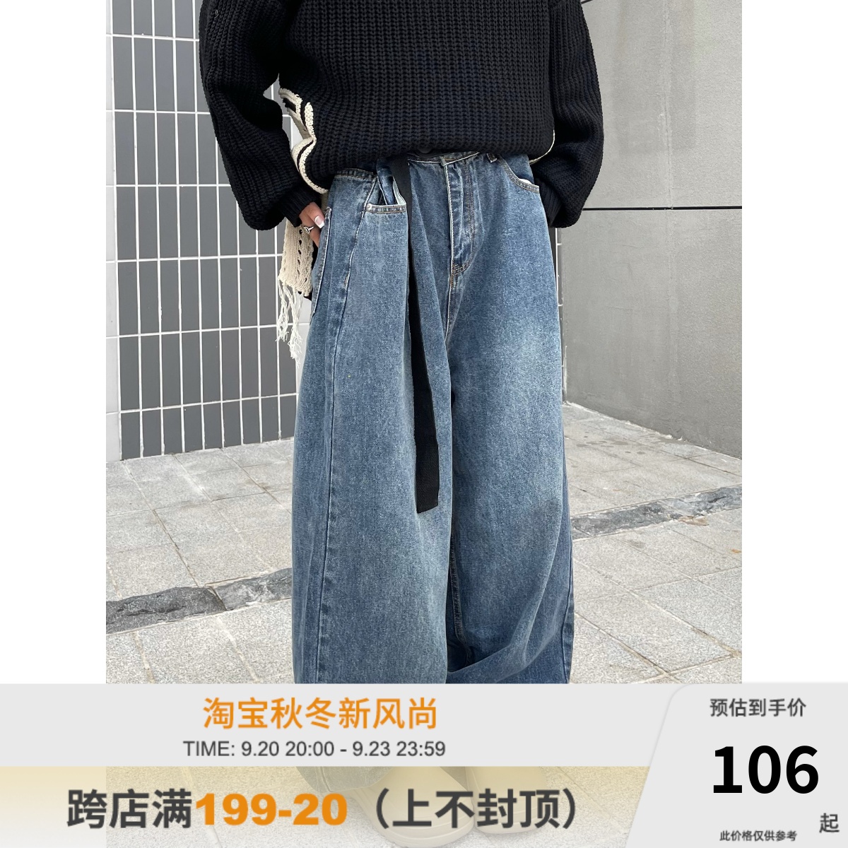 ZHL STUDIO原創復古水洗日韓闊腿牛仔褲男女寬鬆墜感直筒拖地長褲