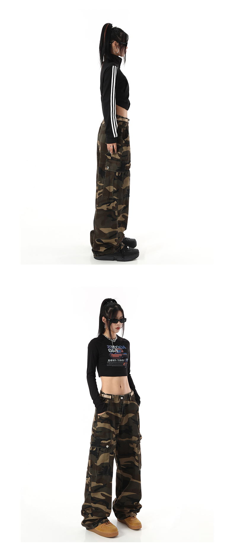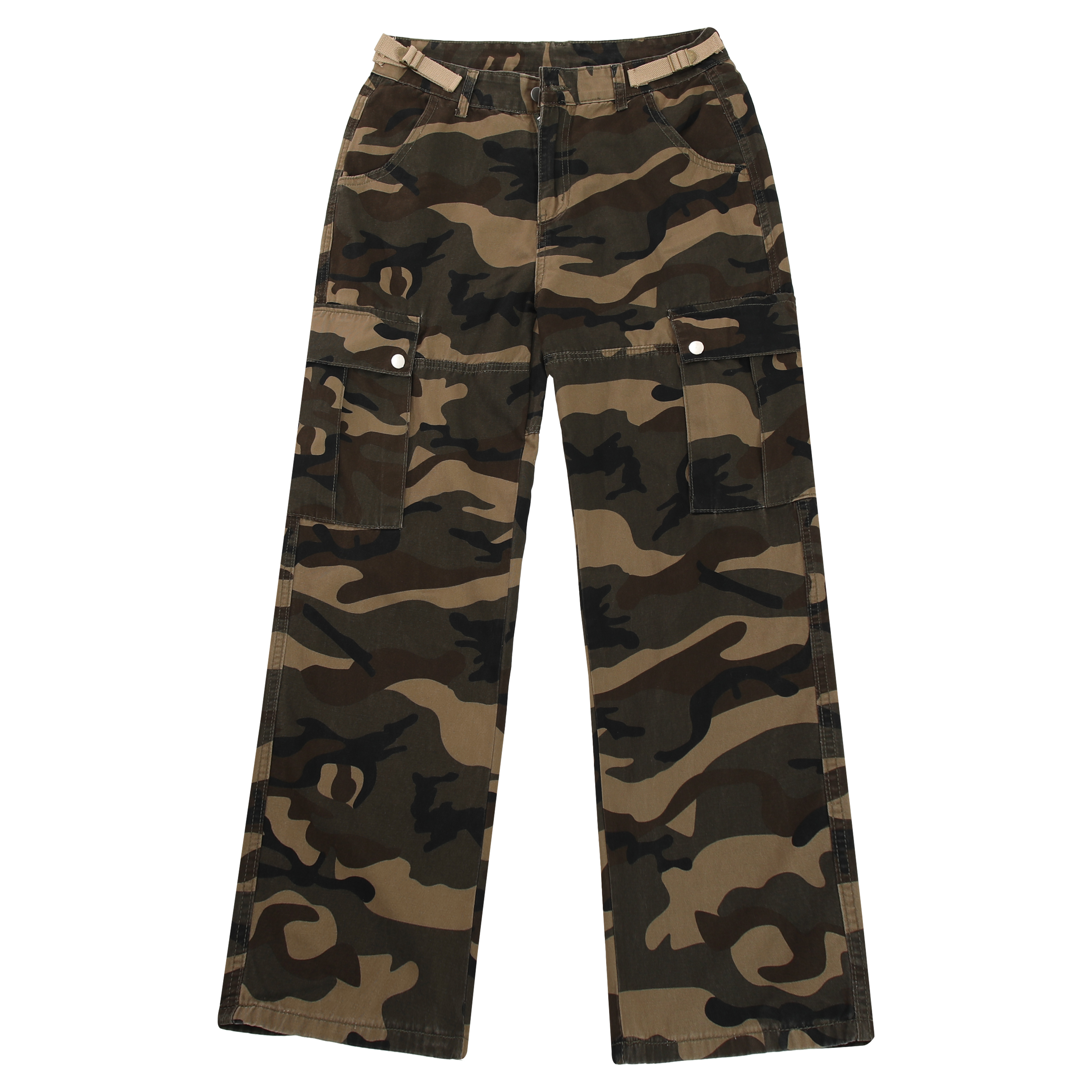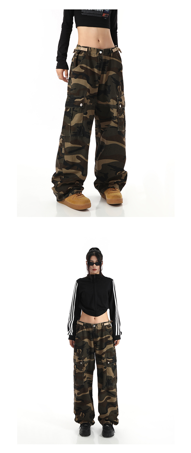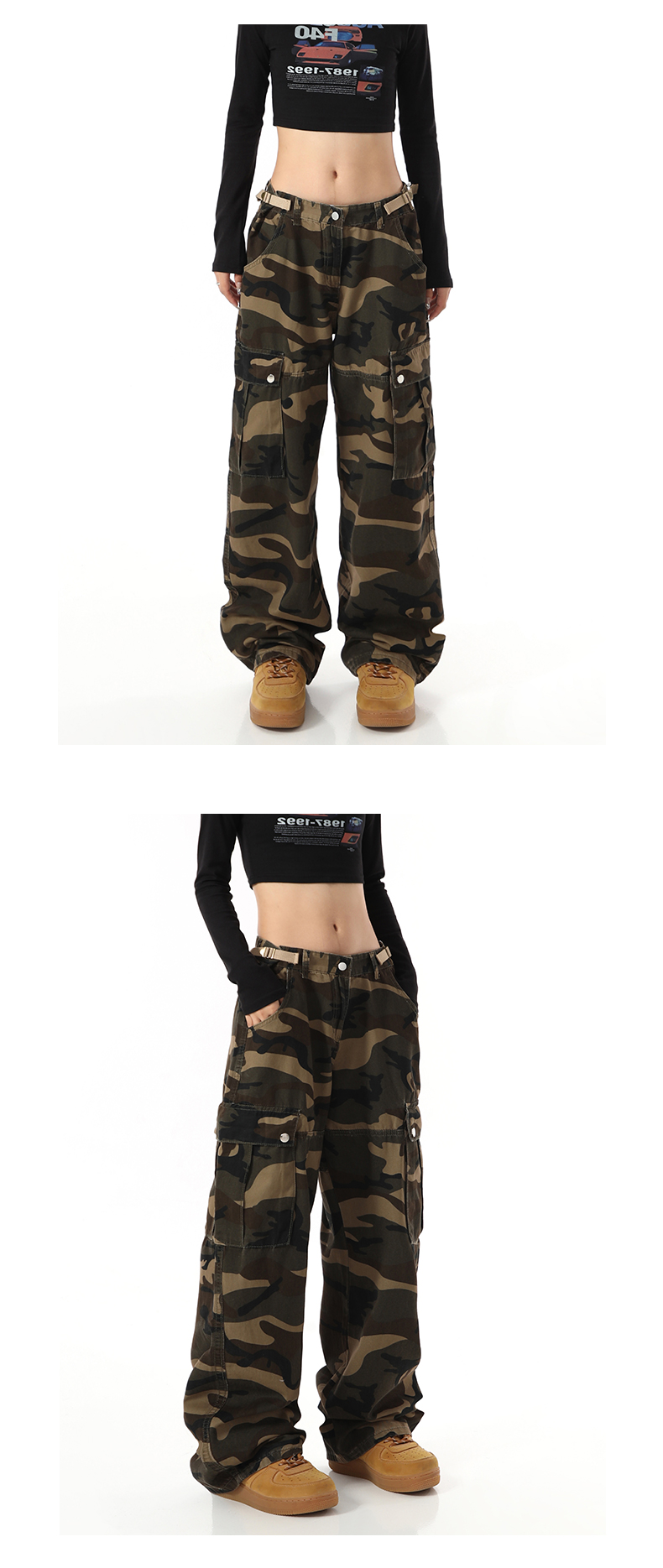 歐美復古迷彩高街寬鬆直筒大口袋潮牌百搭工裝褲男女高腰顯瘦褲子