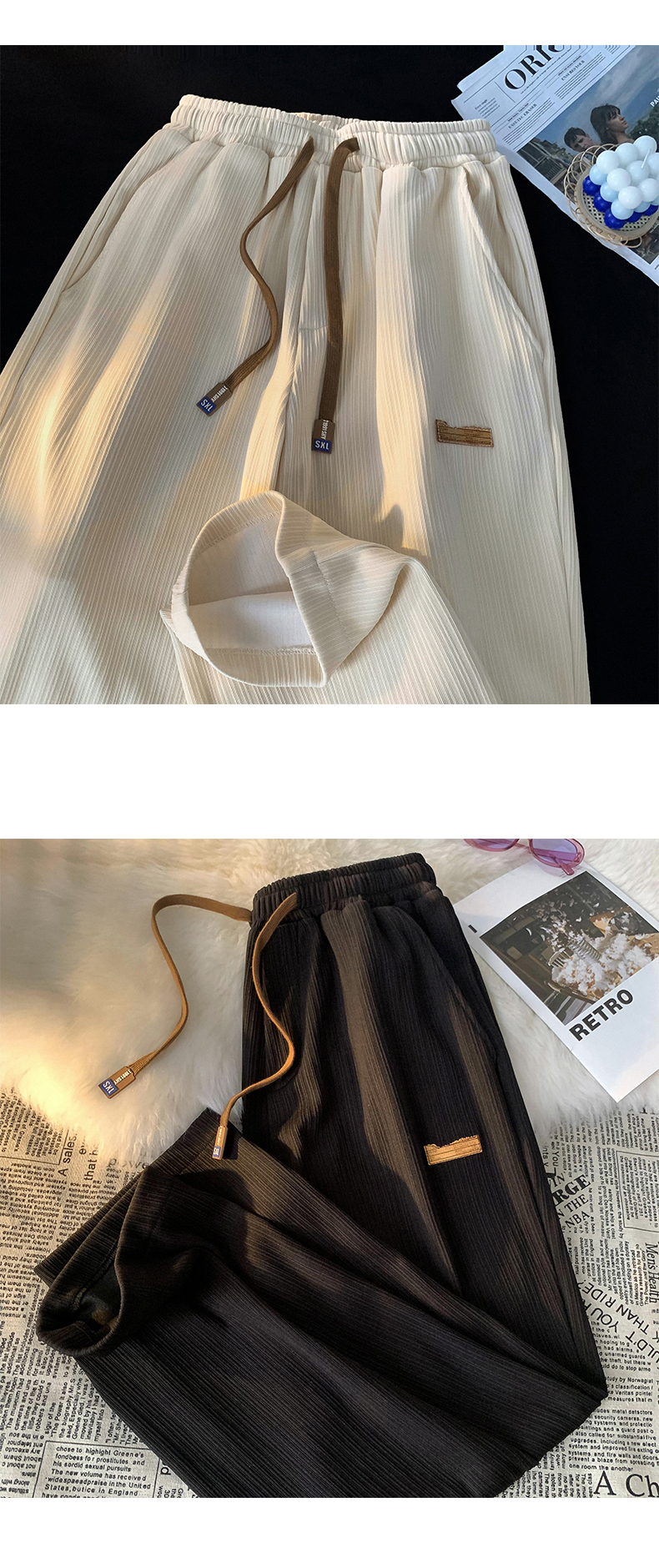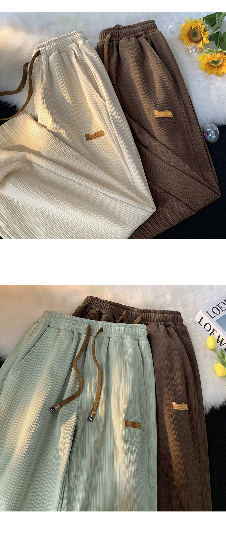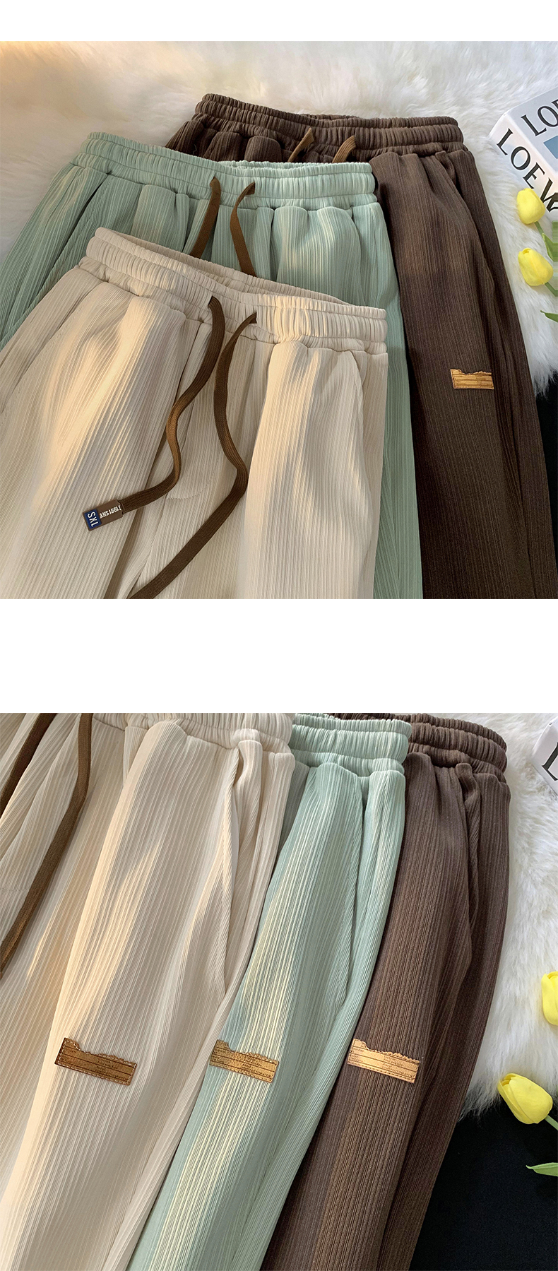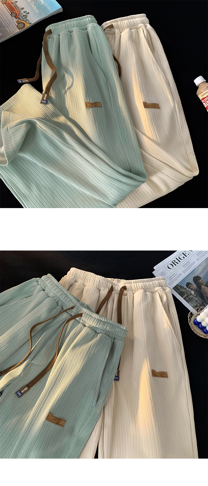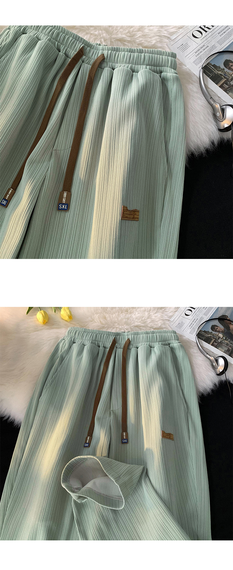 薄荷綠冰絲褲子男夏季薄款冷淡風高級感抽繩運動褲垂感直筒休閒褲