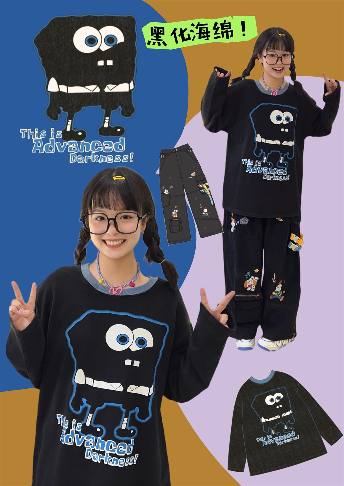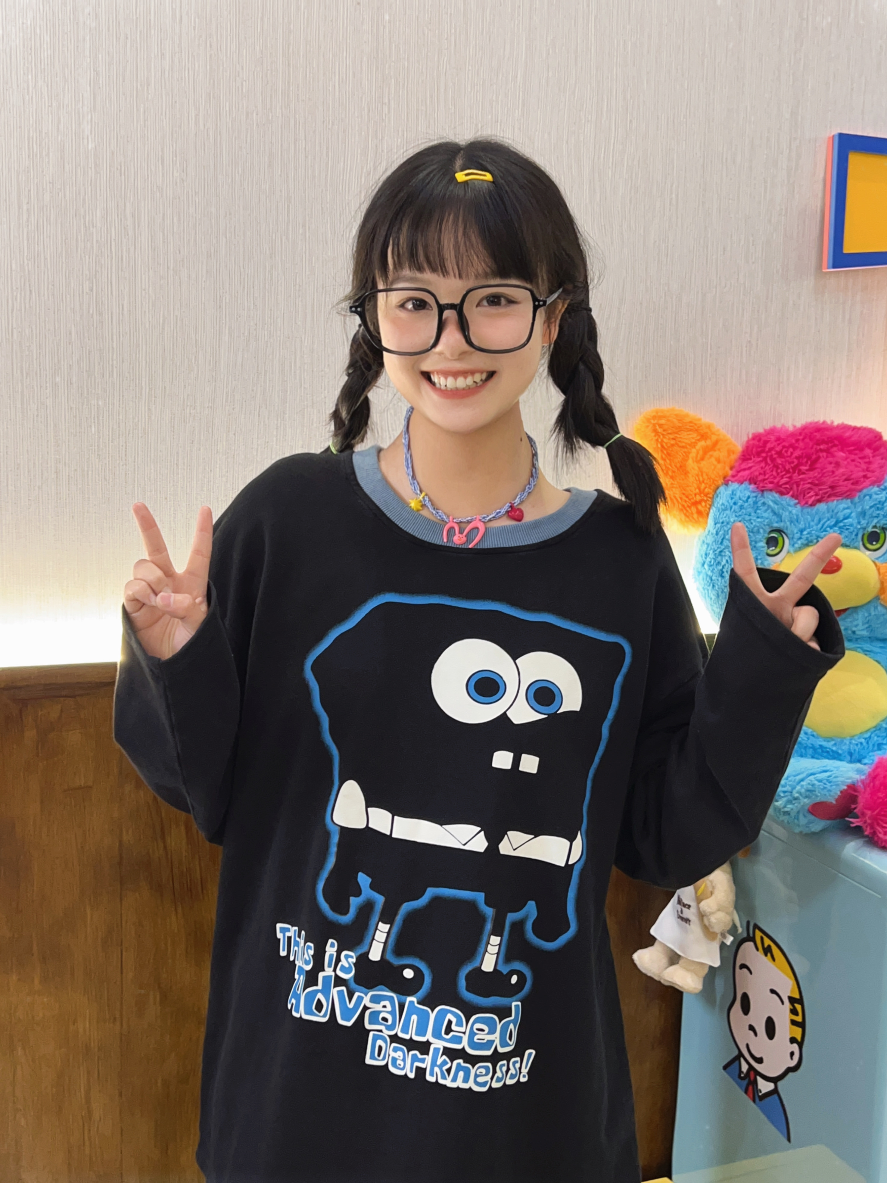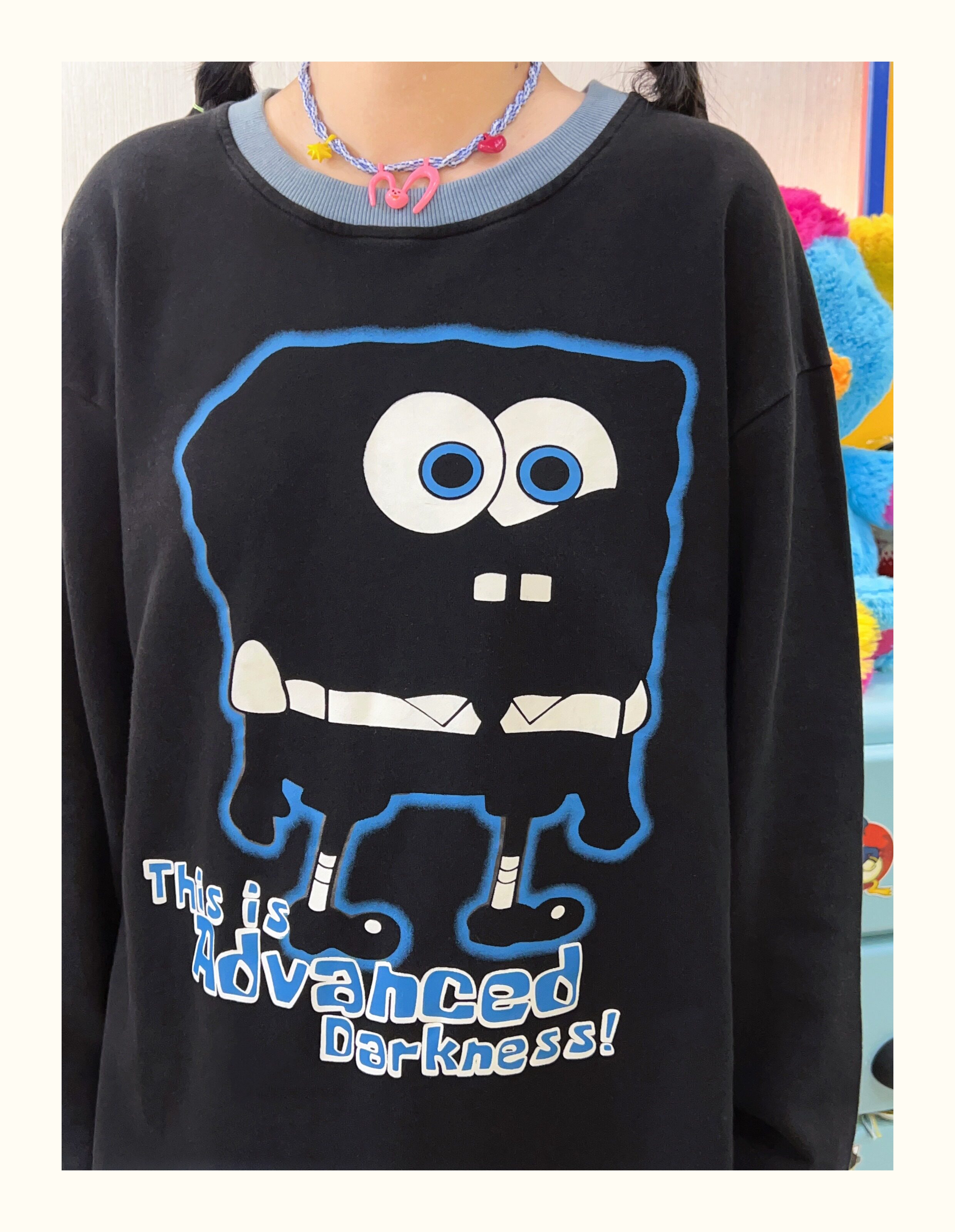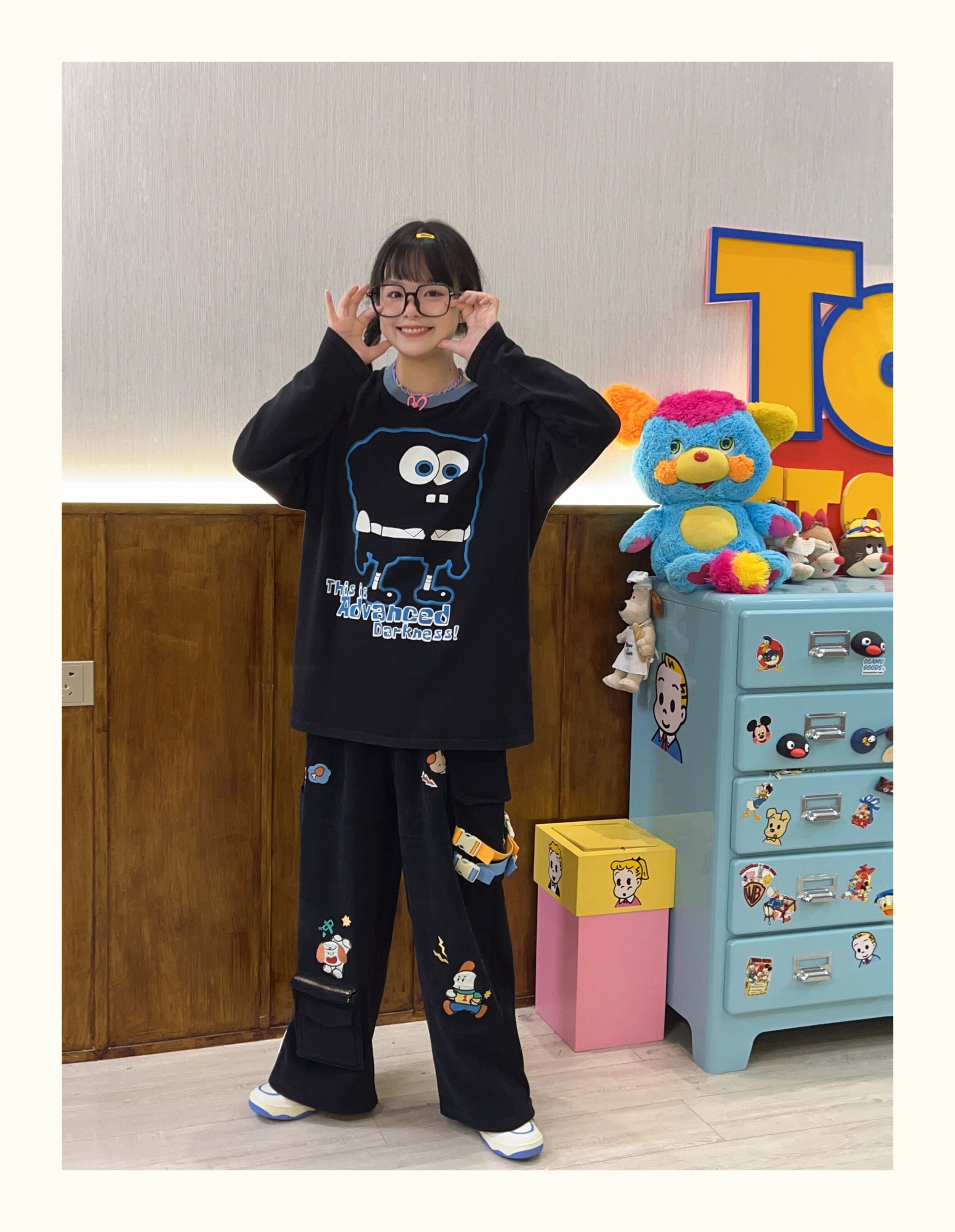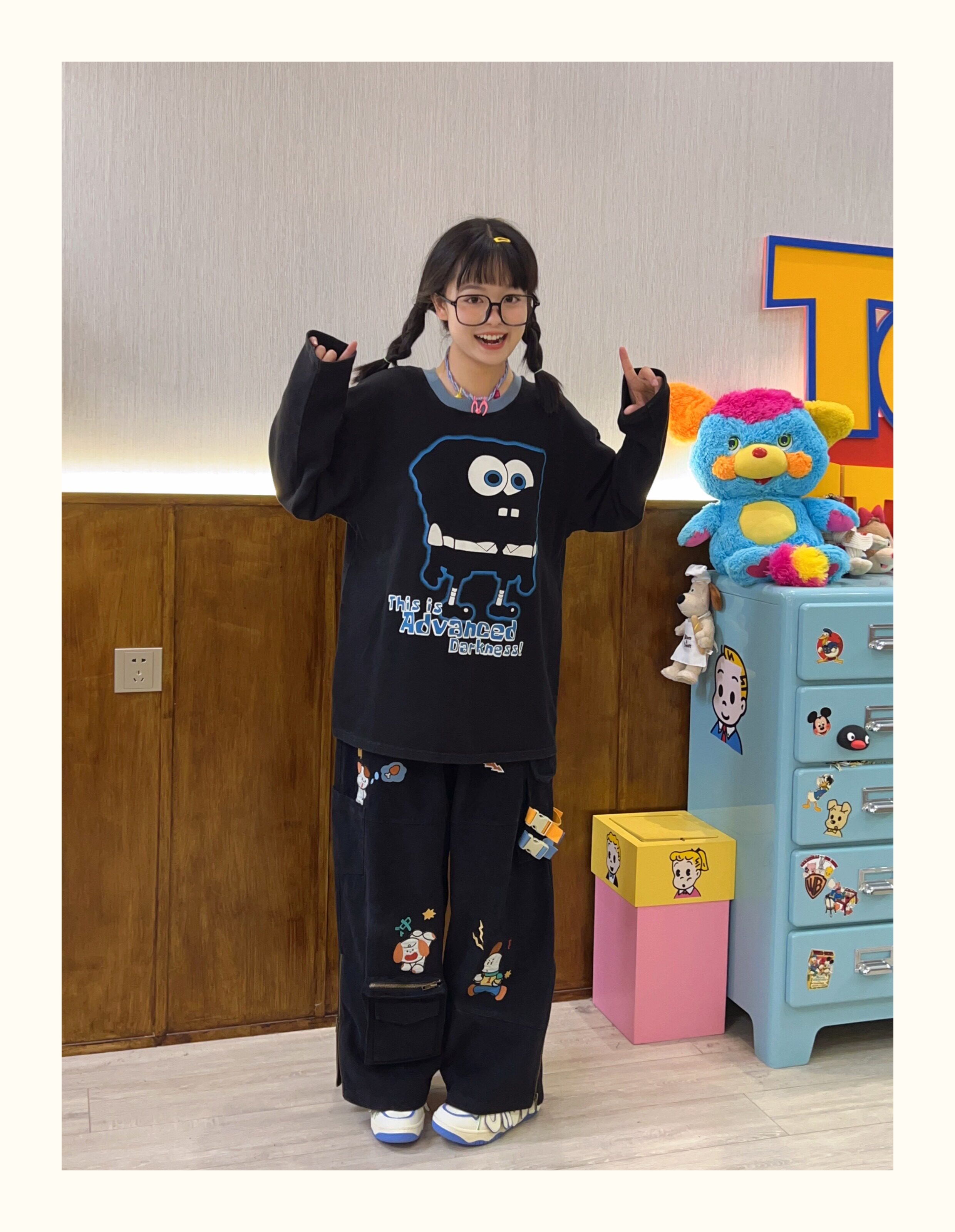 Robootoo童趣古著美式卡通印花減齡甜酷黑色全棉圓領厚棉T2023年秋