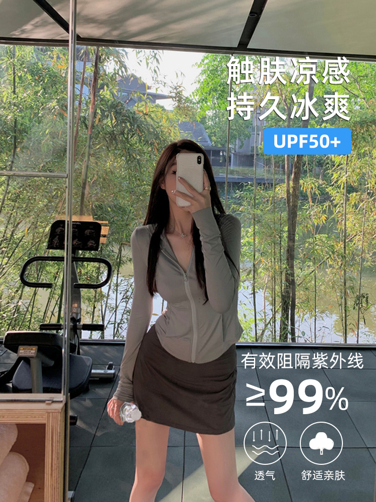 專業冰絲修身防曬服女2023夏季新款抗UV透氣開衫上衣輕薄外套