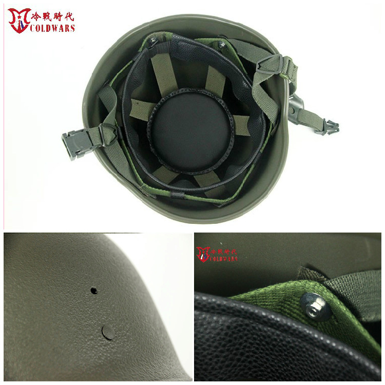 内侧采用多点悬挂式帽衬,在获得更好的抗冲击性能同时,配戴更为舒适。盔面采用哑光颗粒喷涂工艺,在实现防腐蚀功能的同时兼具降低光反射的伪装功能。正面中间带帽徽插孔。悬挂采用优质织带和皮革材料,舒适耐用。请注意,悬挂系统螺丝,为了头盔的长期储存和悬挂系统应力,螺丝在出厂时都未拧紧,需要大家买回后拧紧配戴。