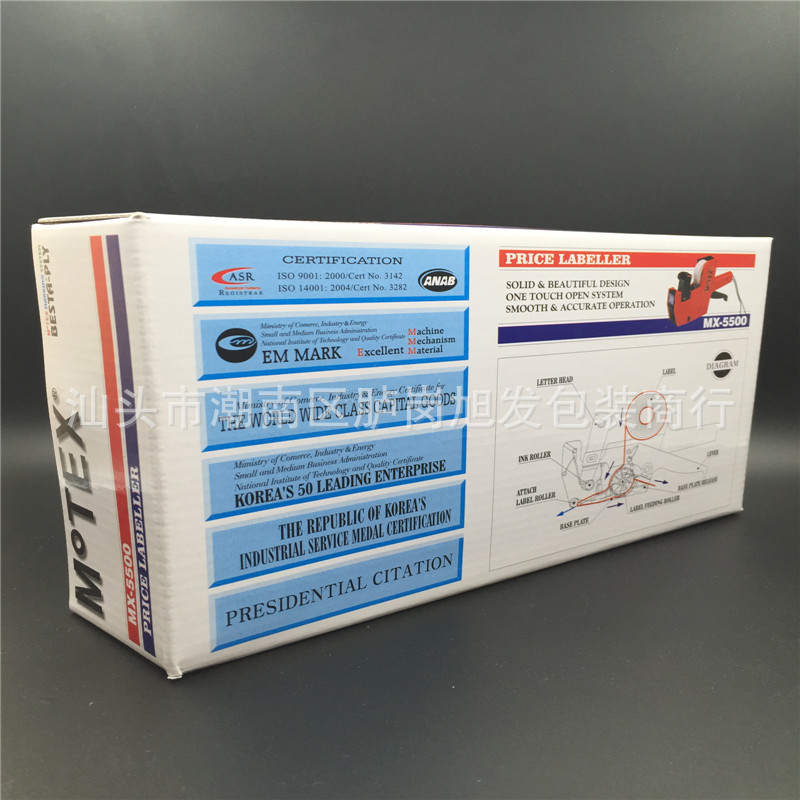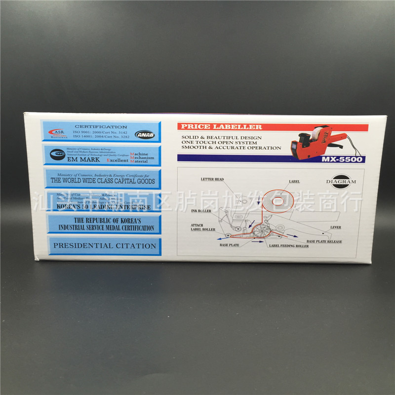 南韩MX-5500单排标价机外型美观!耐用!印字清晰,不卡纸,功能齐全,价格实惠,是商场及超市理想的标贴工具。