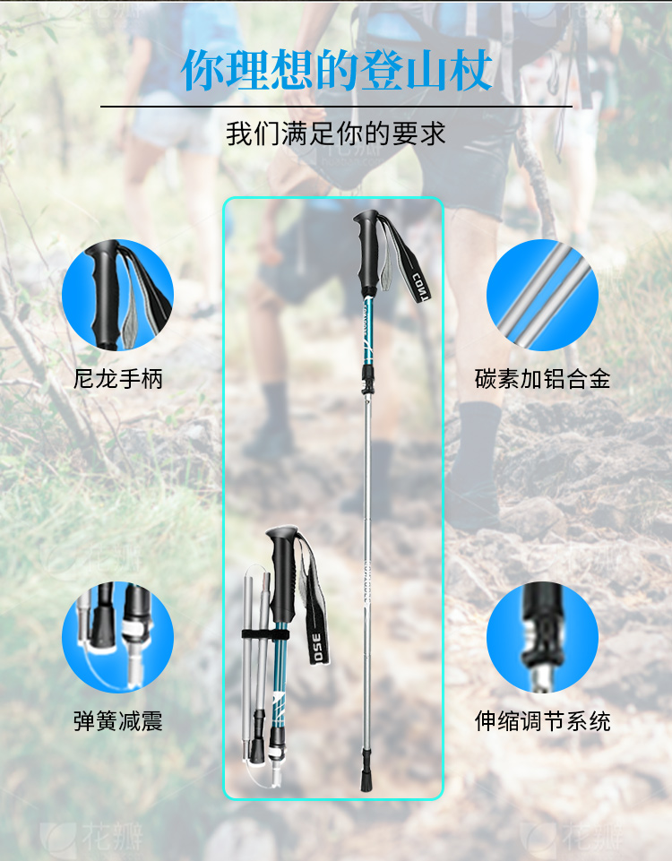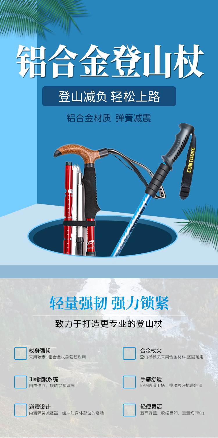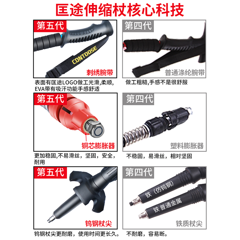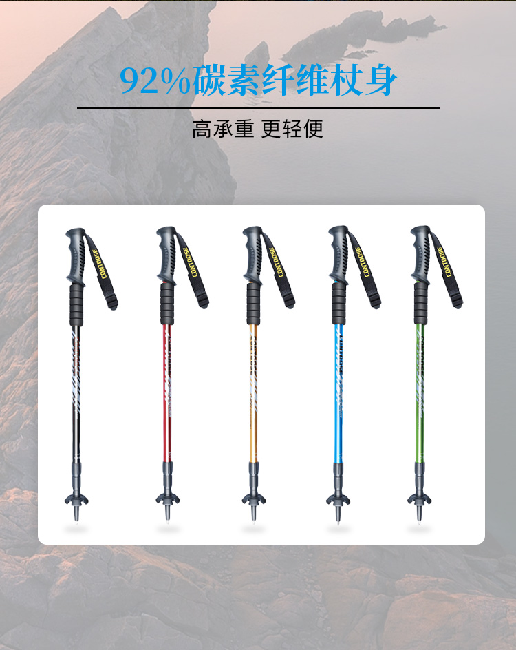 匡途超輕伸縮摺疊登山杖徒步爬山柺杖棍行山手杖女戶外裝備無碳素